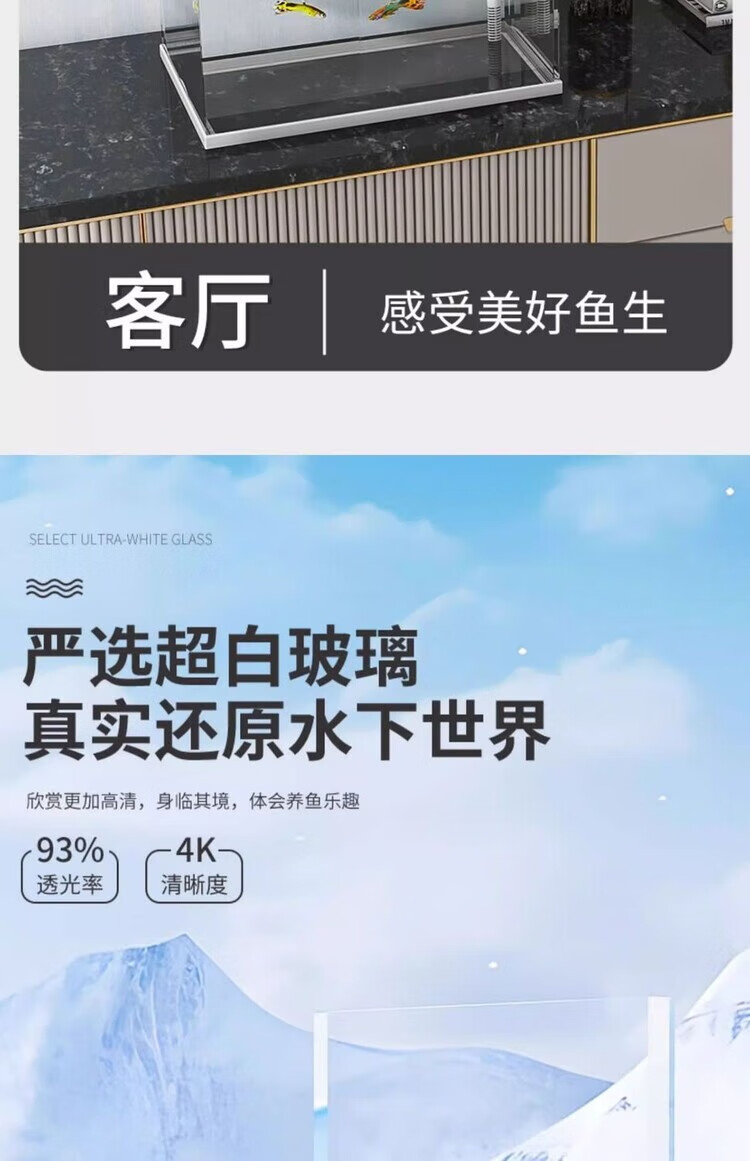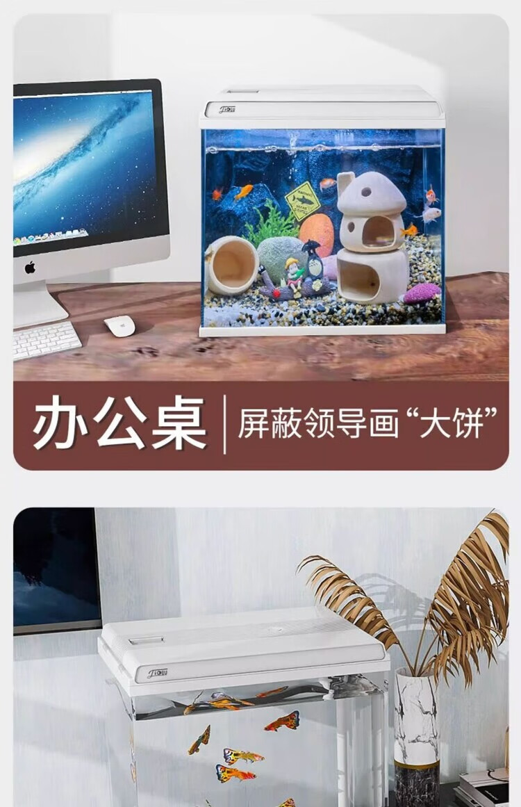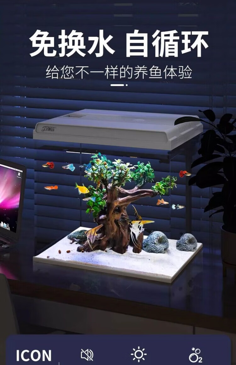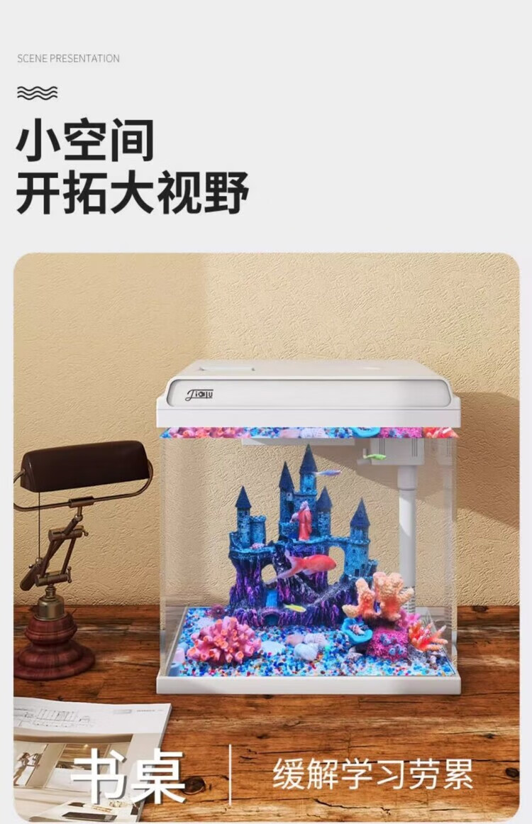 OYKTN超白鱼缸客厅小型家用桌面免换水金鱼缸玻璃懒人一体封闭式水族箱 标配250超白玻璃鱼缸 送滤材+滤棉