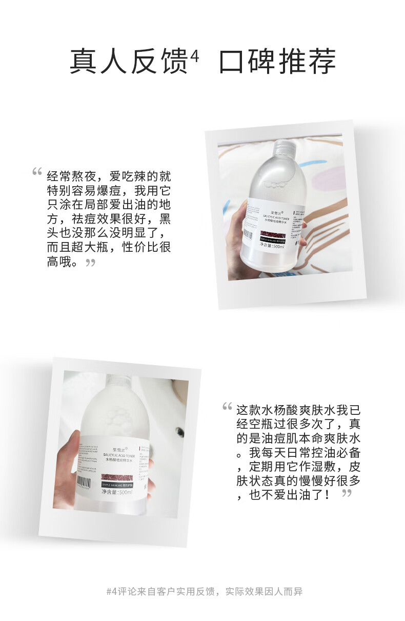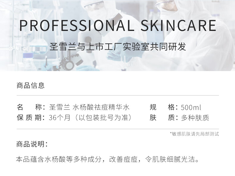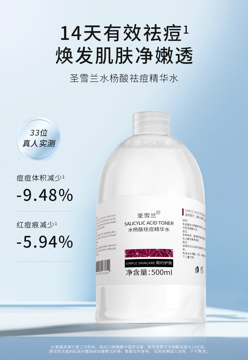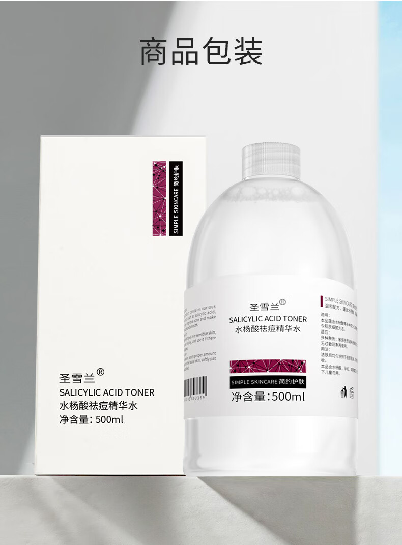 圣雪兰水杨酸祛痘水500ml大瓶装 控油祛痘闭口粉刺 湿敷精华爽肤水 500ml*2瓶