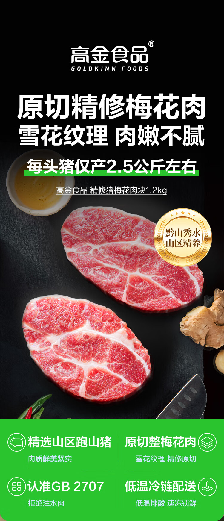 高金食品 猪梅花肉块2.4斤贵州山区跑山猪烧烤食材梅肉猪颈肉猪肉猪肉生鲜