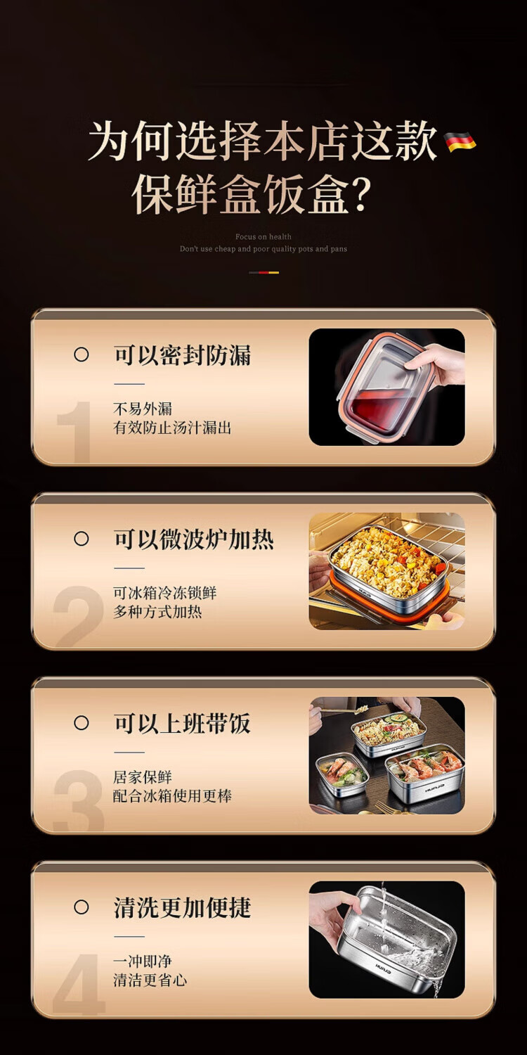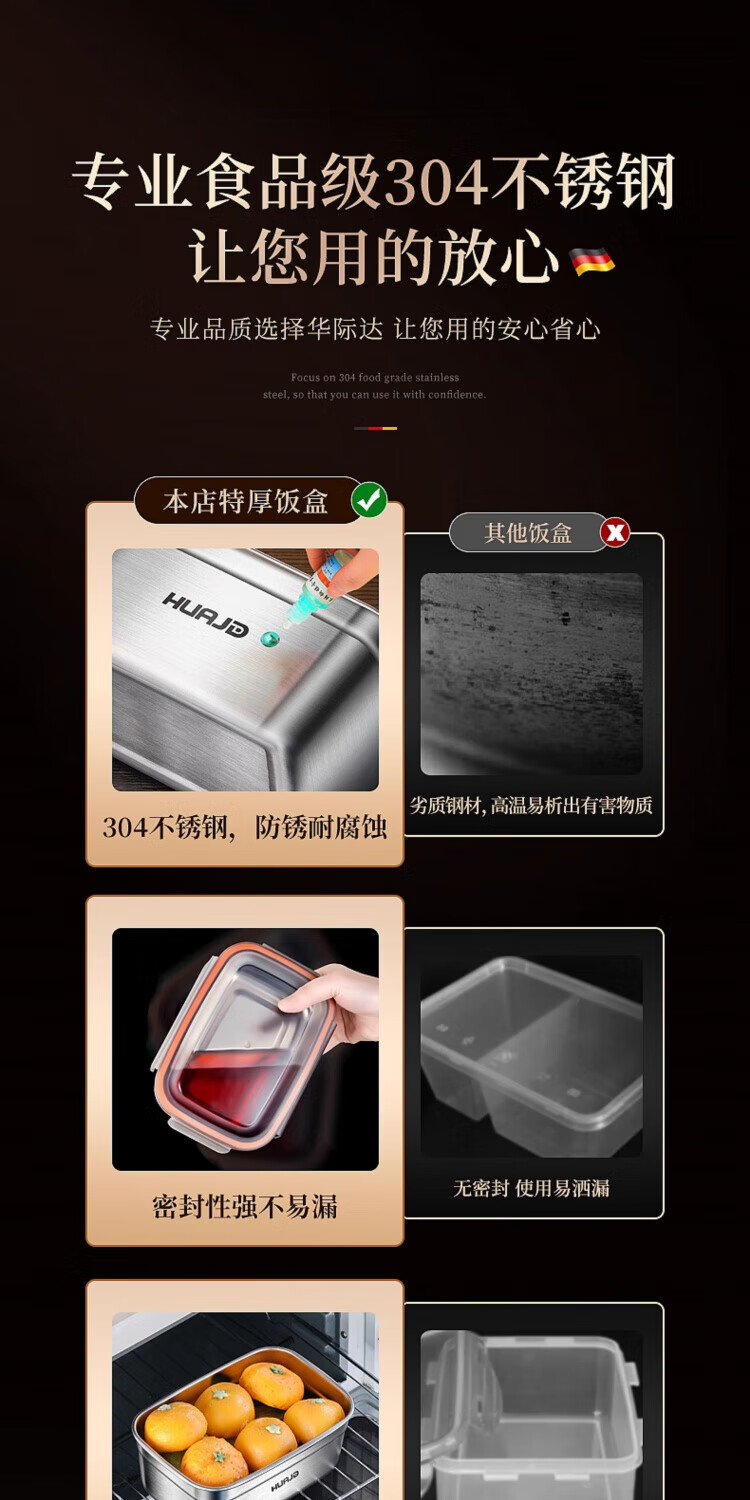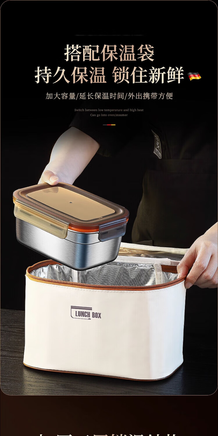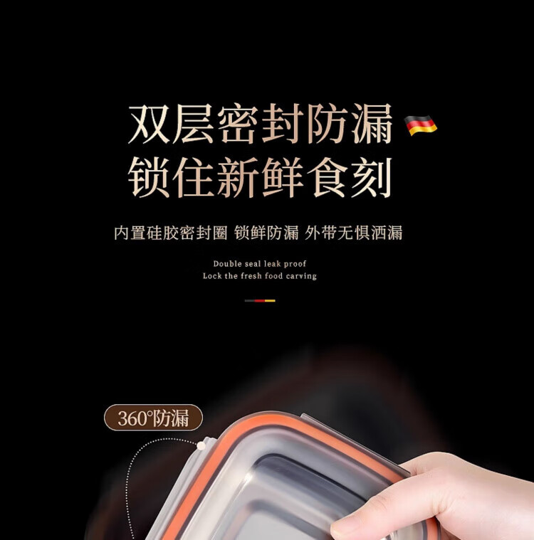 WCZ德国304不锈钢保温饭盒微波炉加热专用上班族2025新款大容量便当 两层*2个 (升级卡扣防漏) 550ml