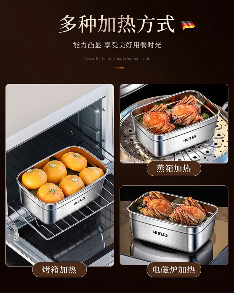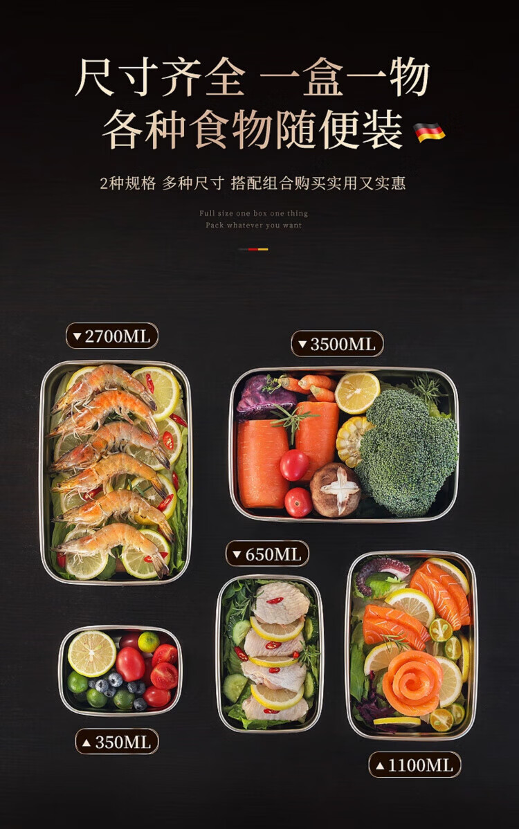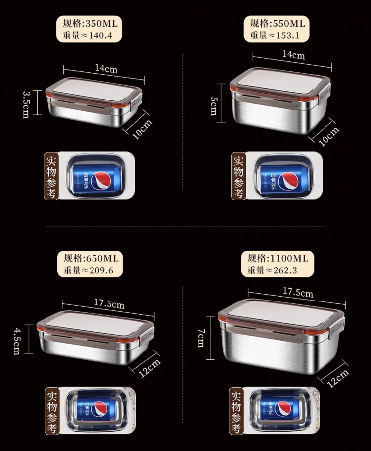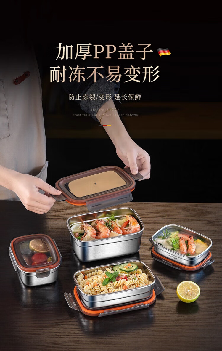 WCZ德国304不锈钢保温饭盒微波炉加热专用上班族2025新款大容量便当 两层*2个 (升级卡扣防漏) 550ml