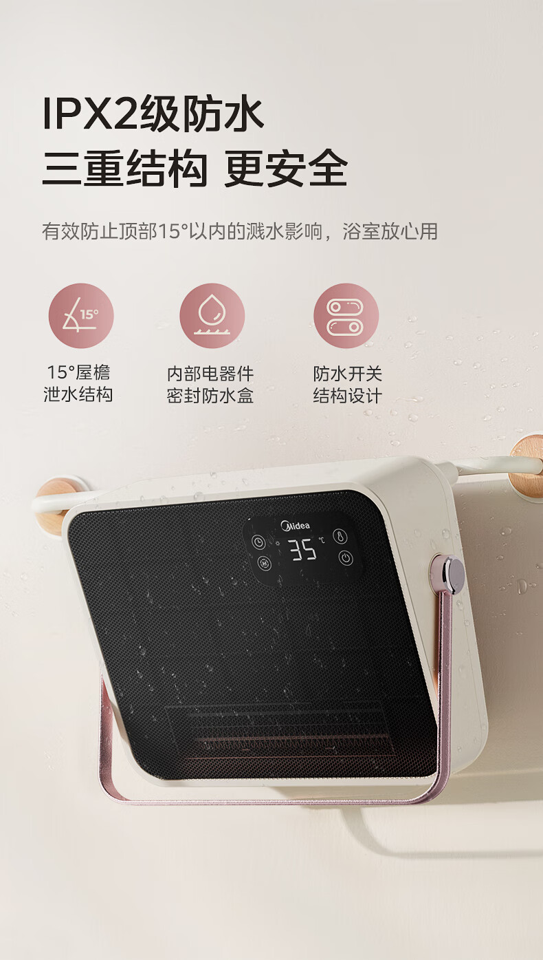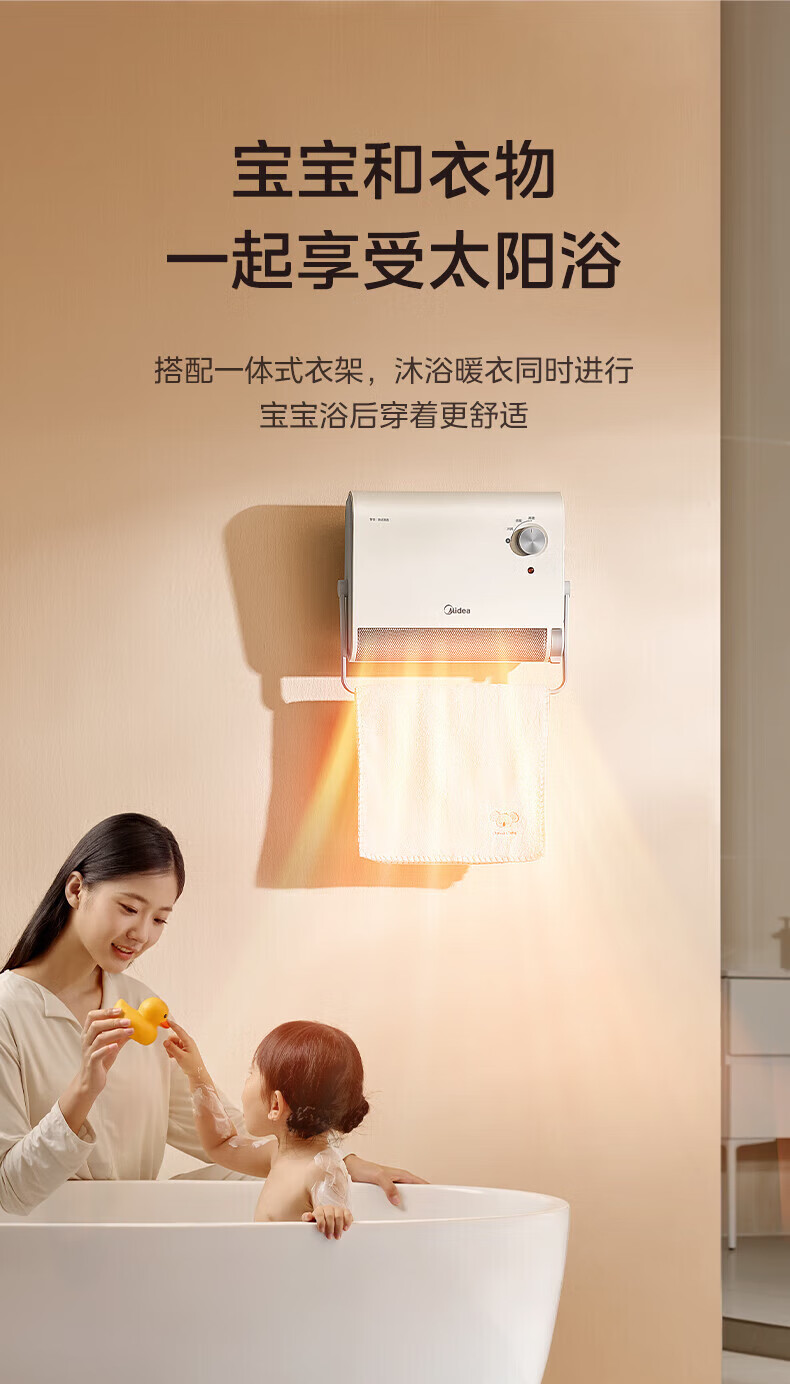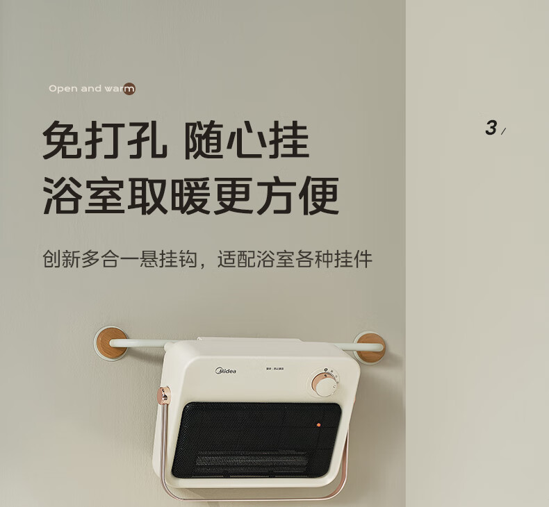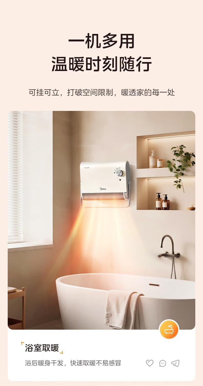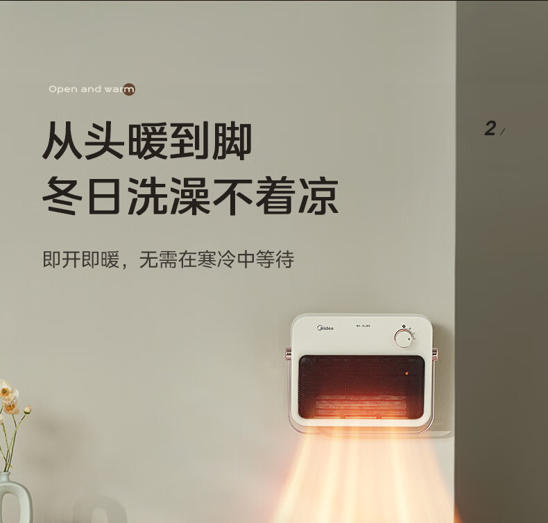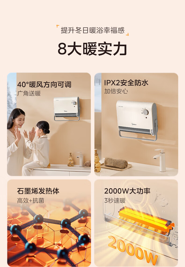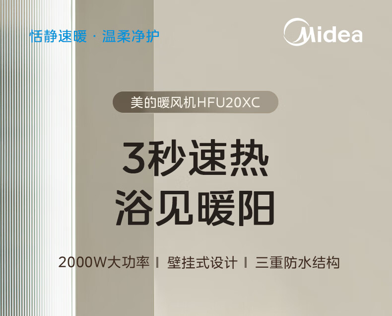 美的(Midea)取暖器浴室暖风机家用电热取暖器 浴室电暖气片浴霸烤火炉 节能小太阳防水 石墨烯速热壁挂免安装 【旗舰新品】3档钮旋HFS20XQ