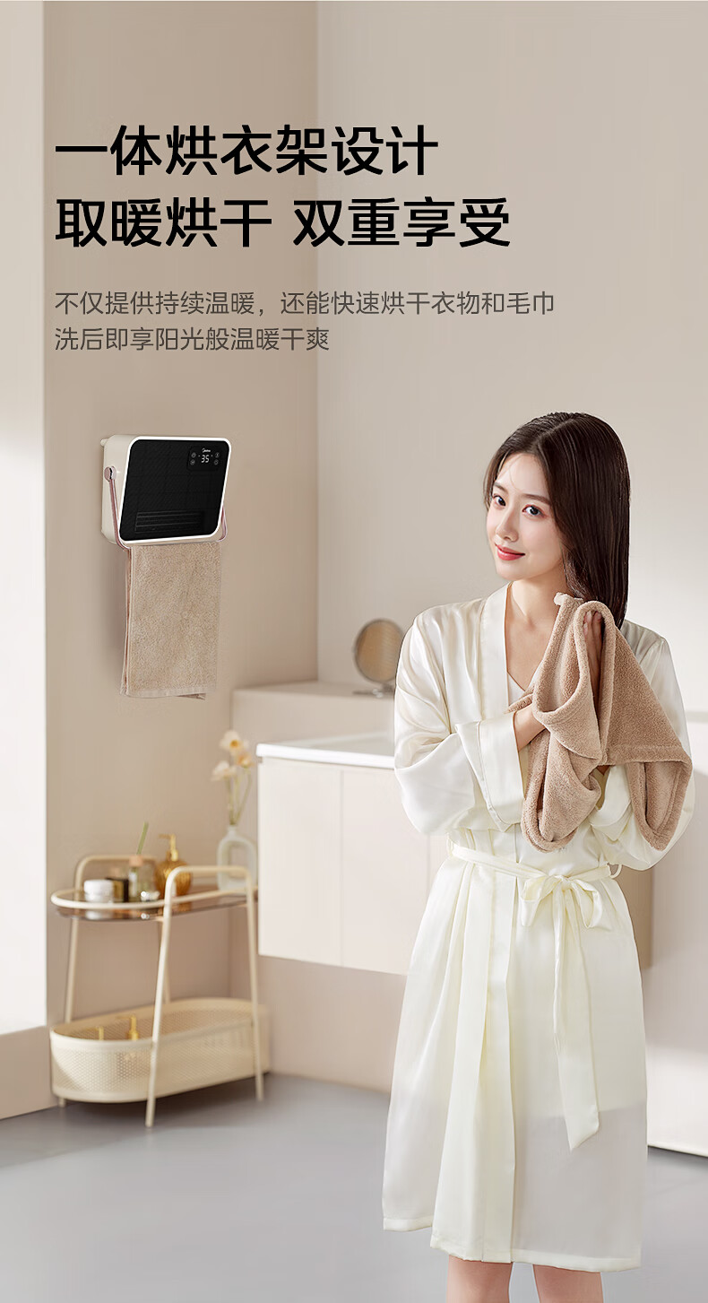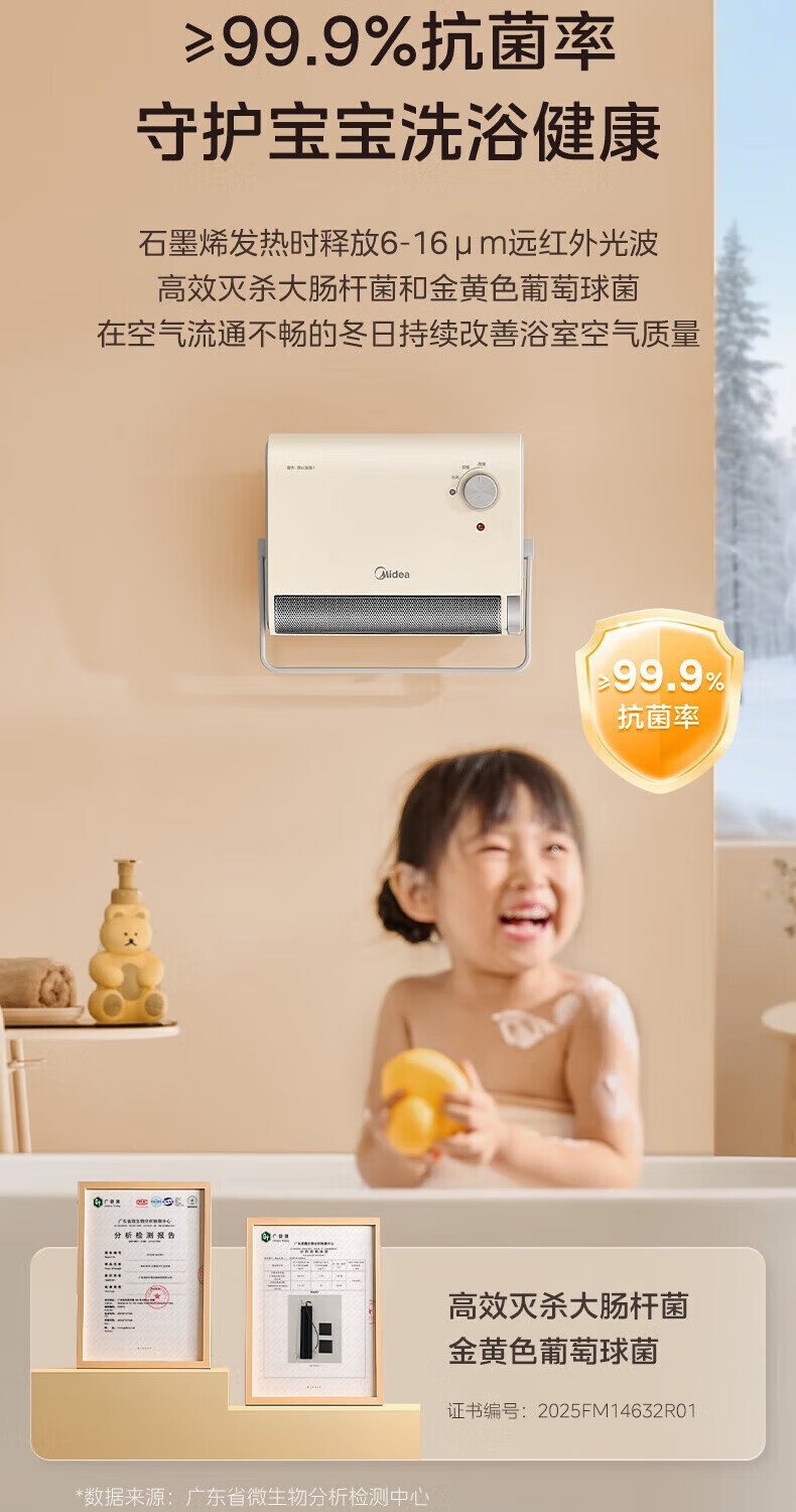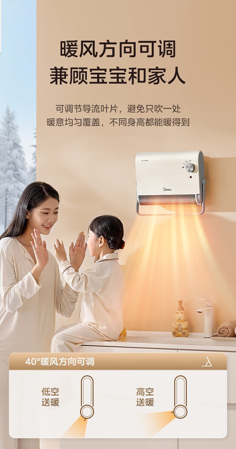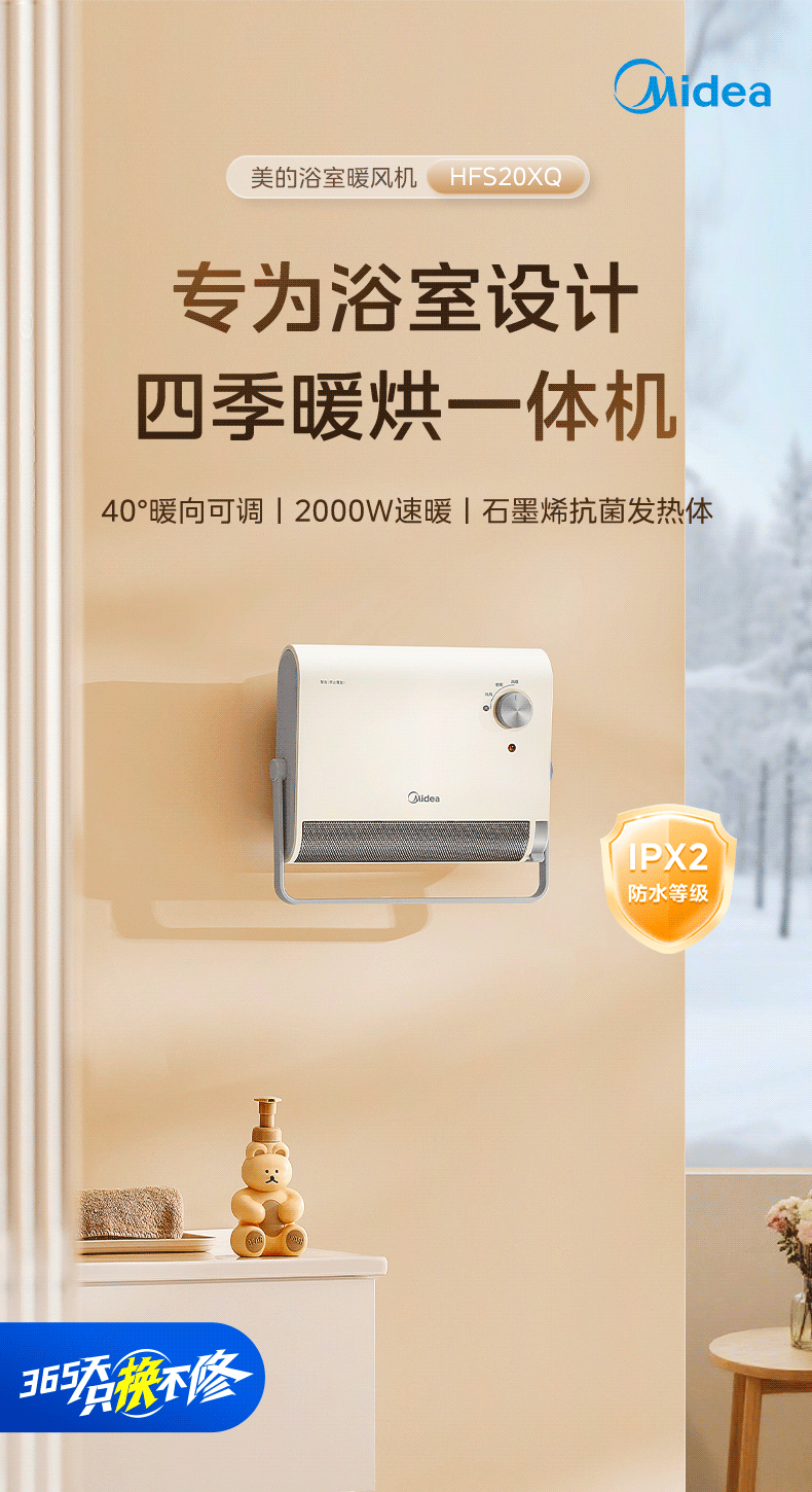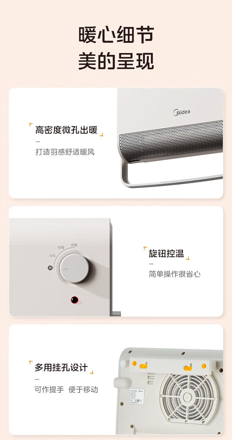 美的(Midea)取暖器浴室暖风机家用电热取暖器 浴室电暖气片浴霸烤火炉 节能小太阳防水 石墨烯速热壁挂免安装 【旗舰新品】3档钮旋HFS20XQ