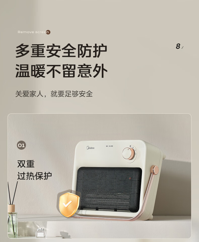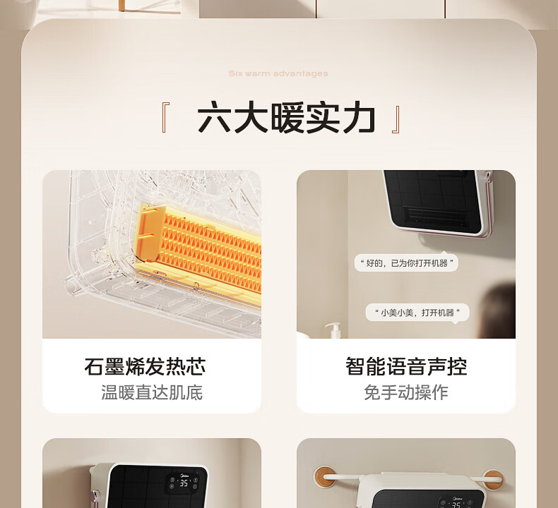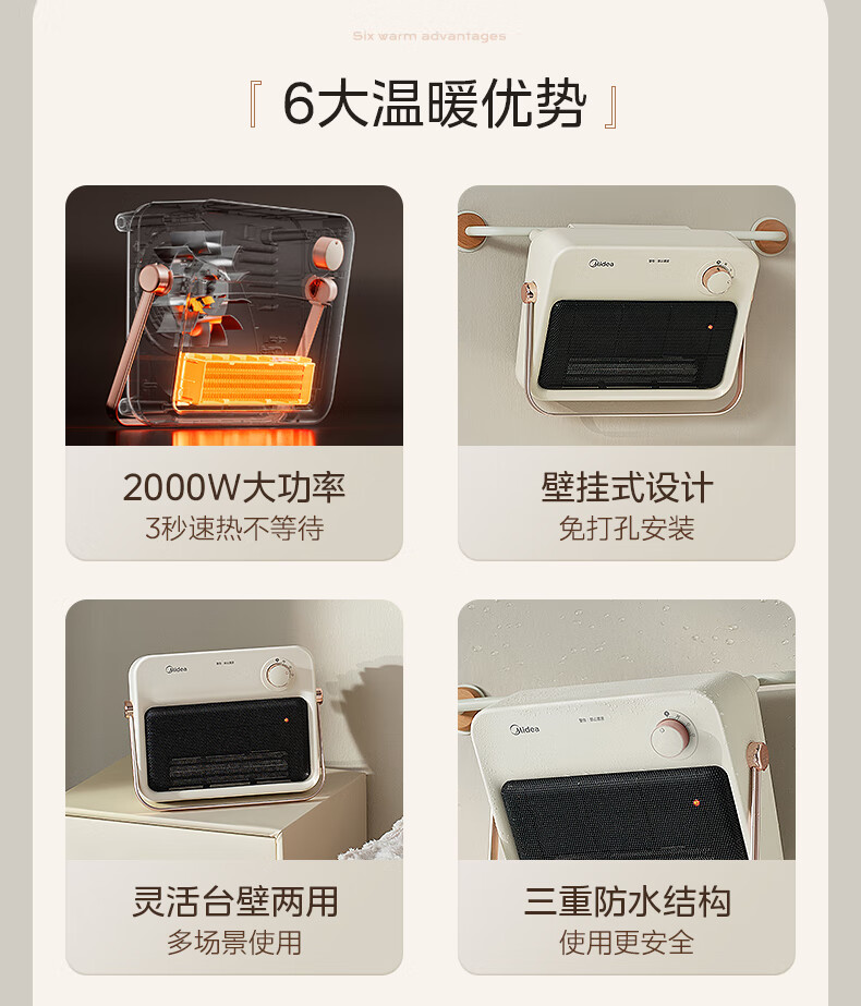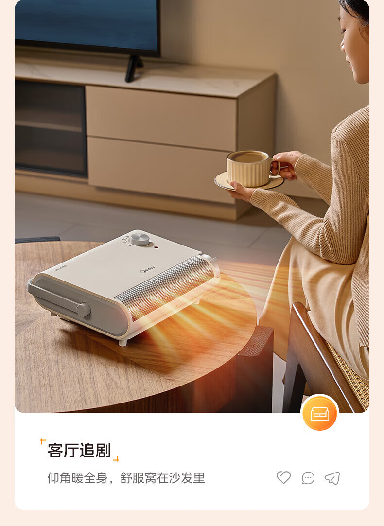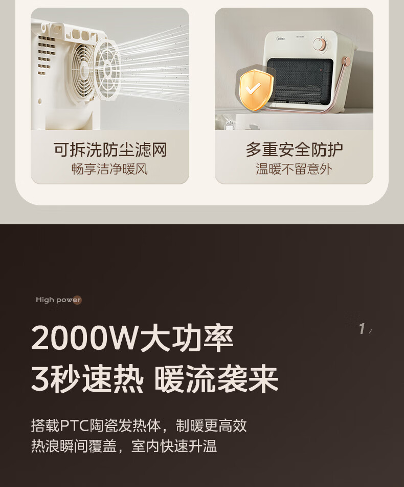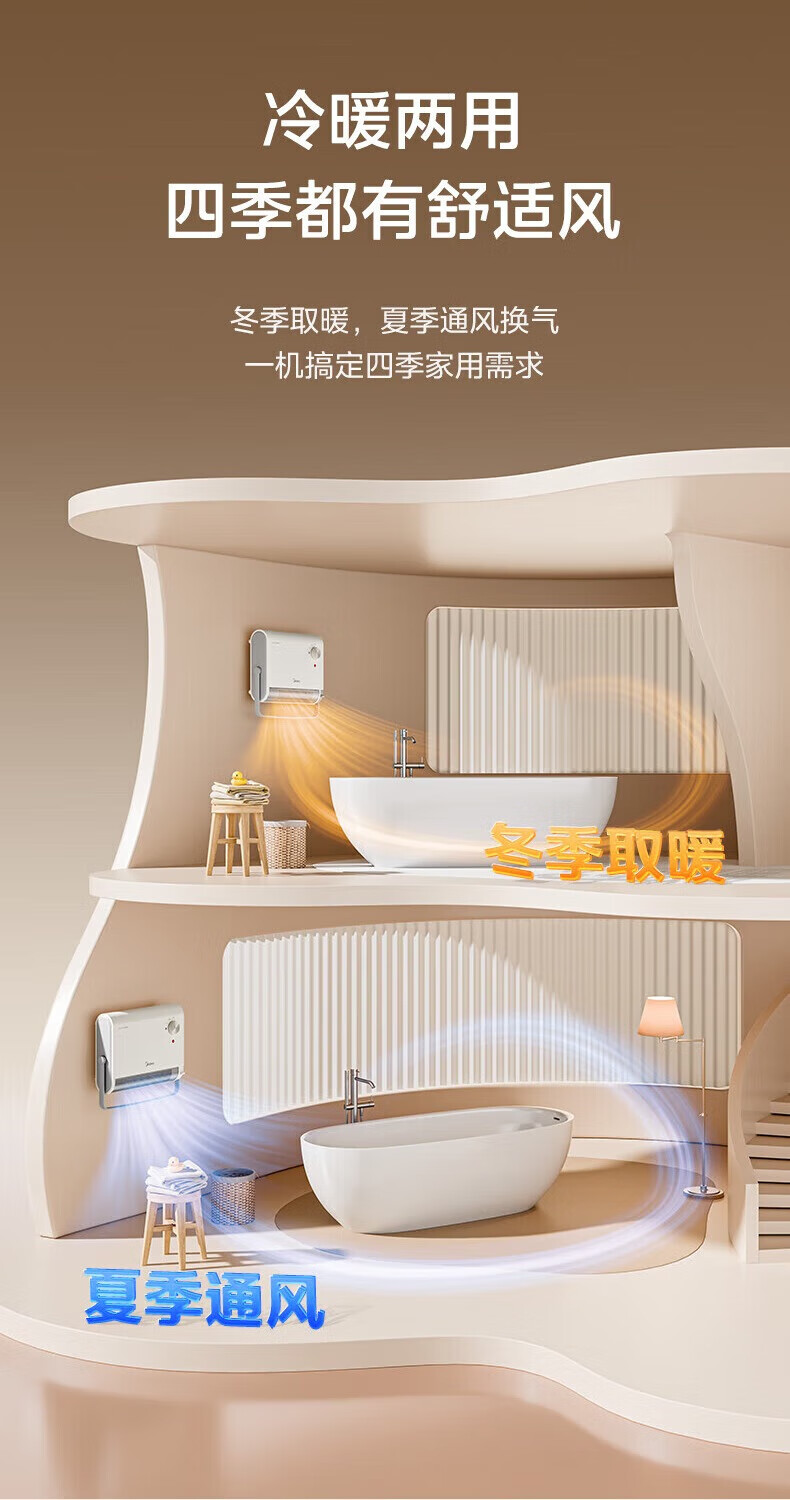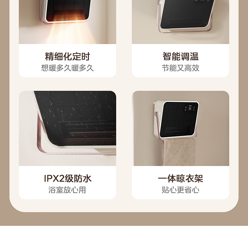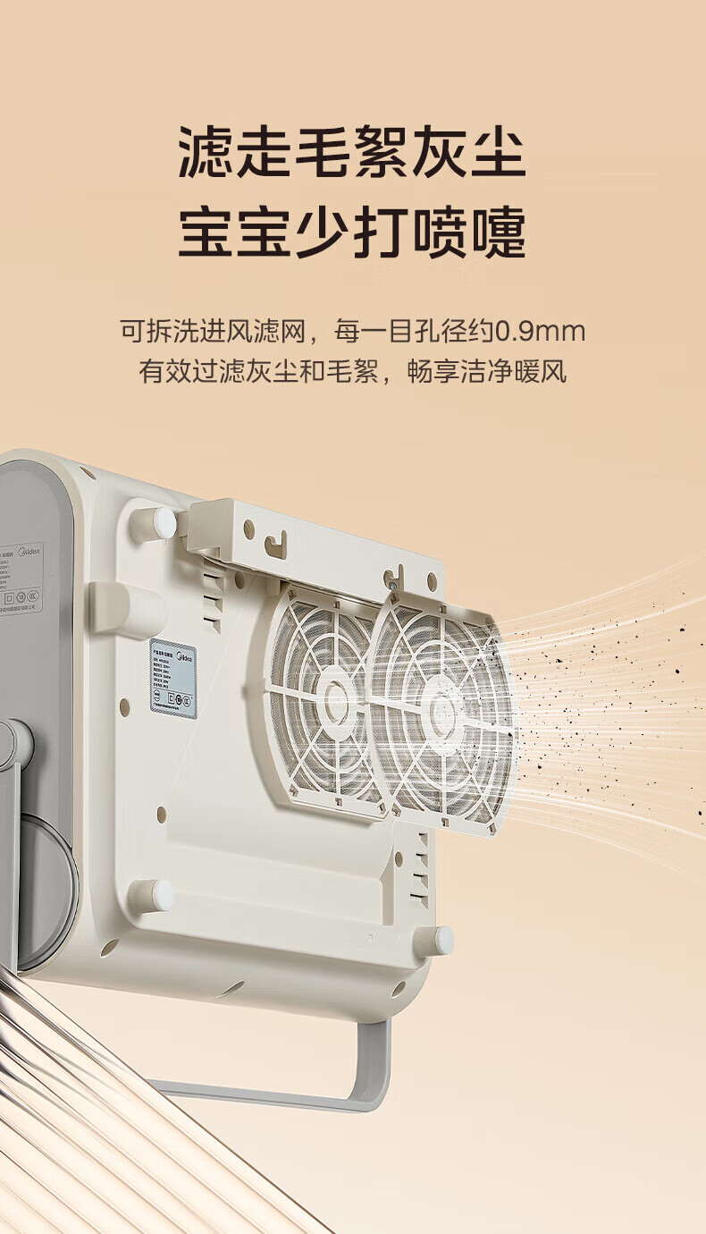 美的(Midea)取暖器浴室暖风机家用电热取暖器 浴室电暖气片浴霸烤火炉 节能小太阳防水 石墨烯速热壁挂免安装 【旗舰新品】3档钮旋HFS20XQ