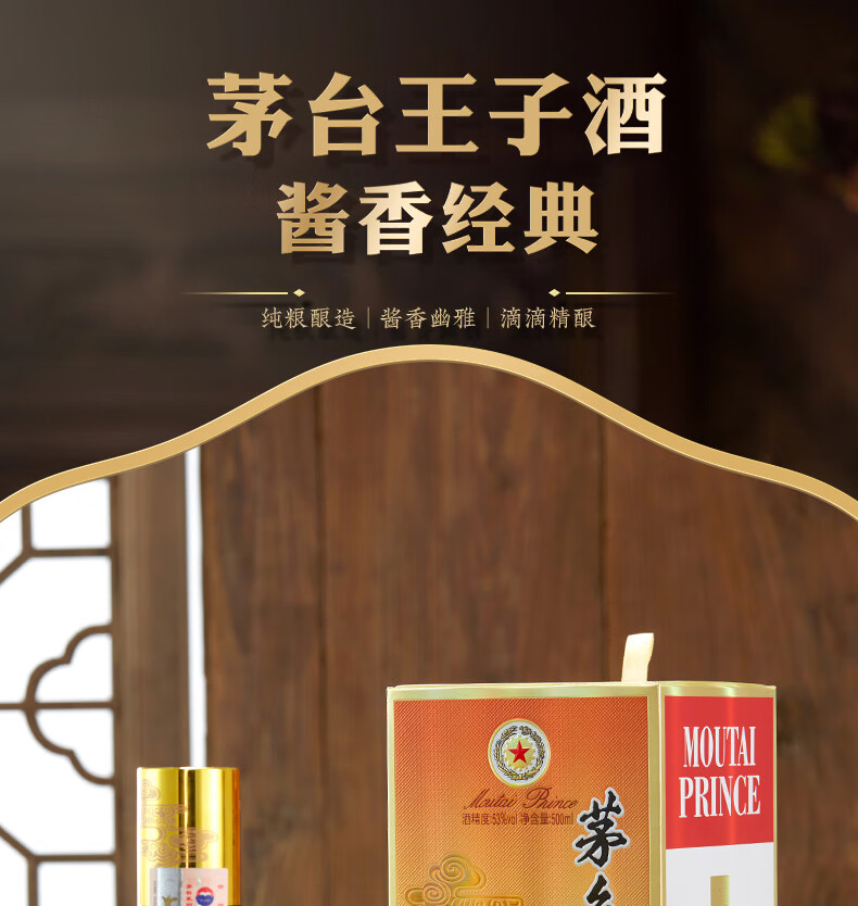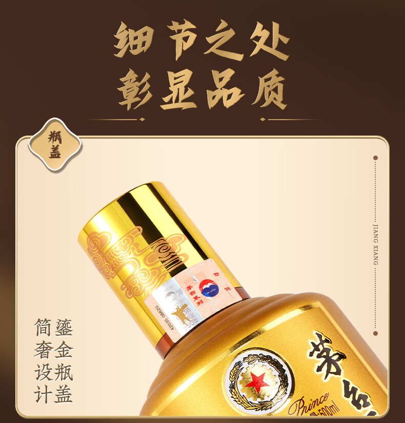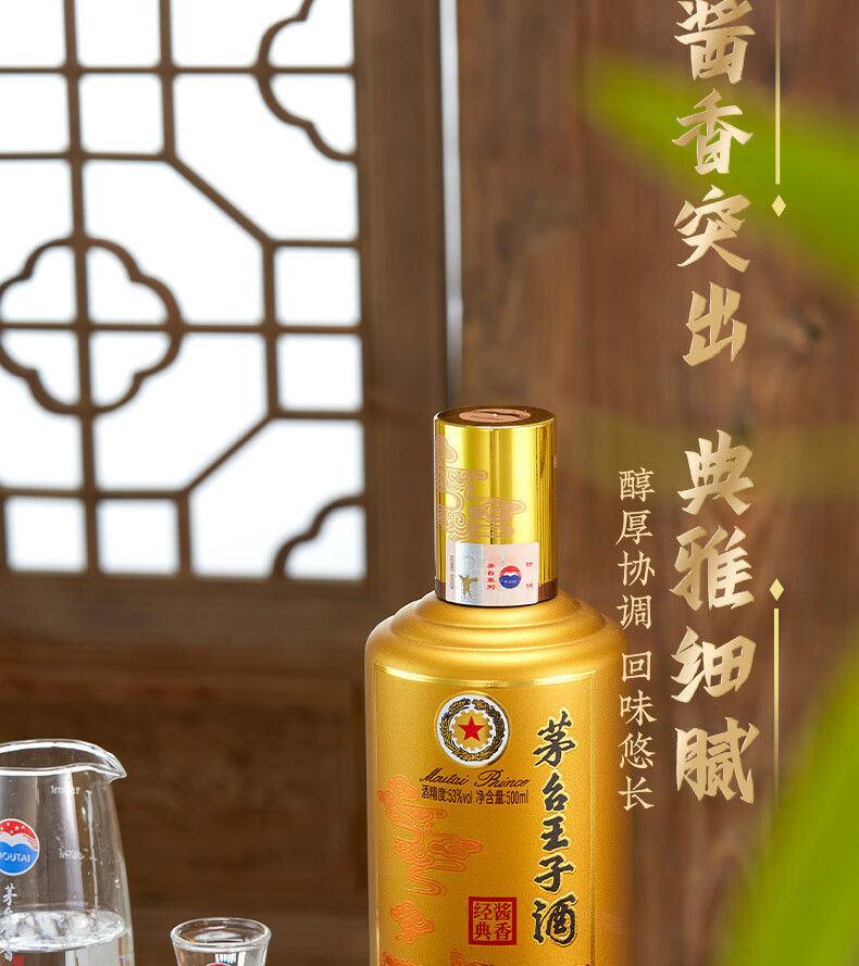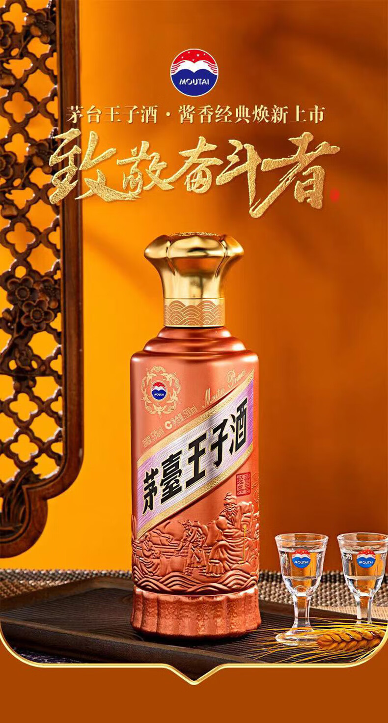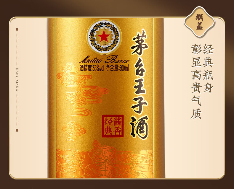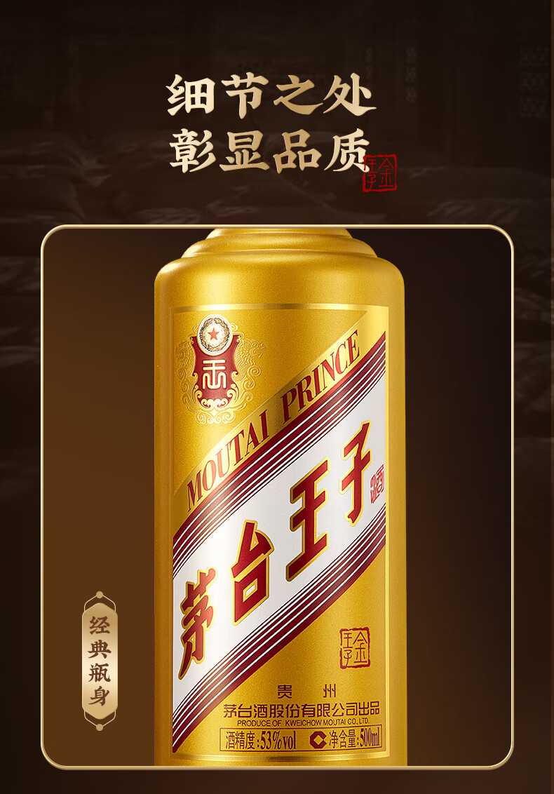 茅台(MOUTAI) 茅台王子酒 酱香型白酒 送礼婚宴 53度 500mL 1瓶 金王子