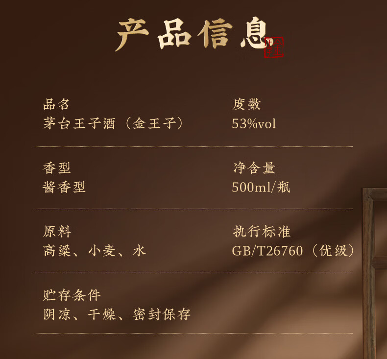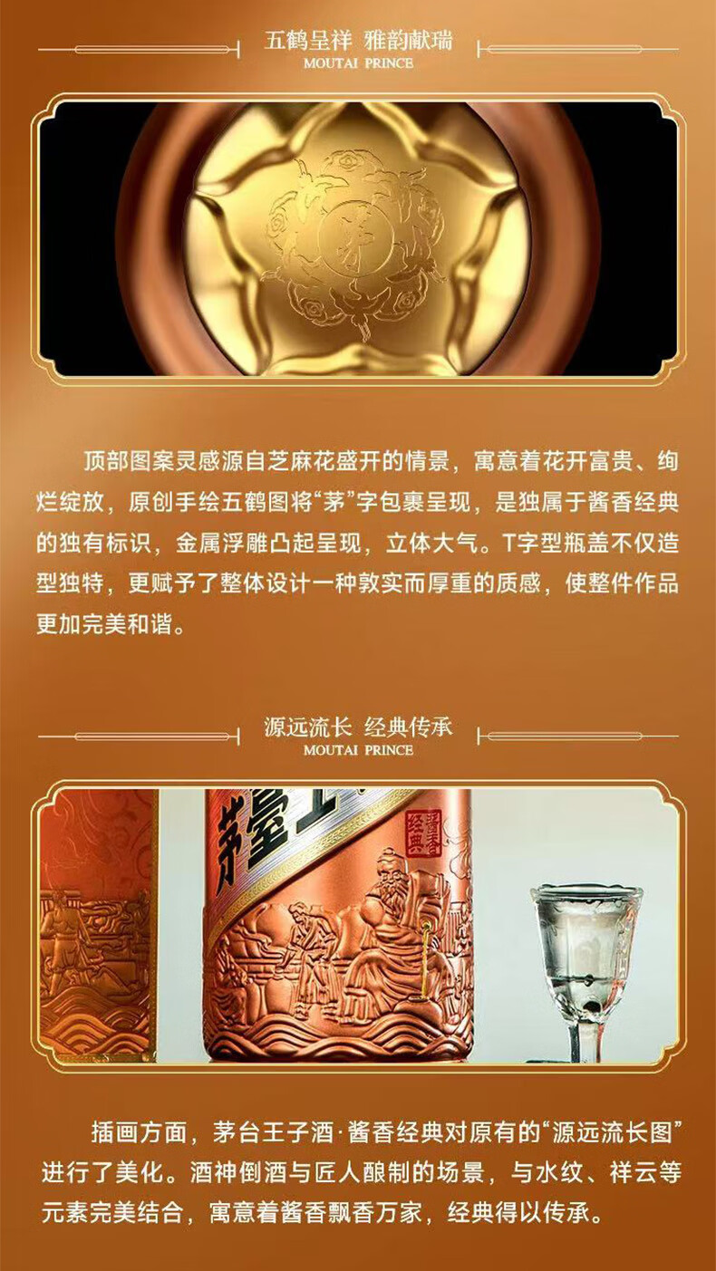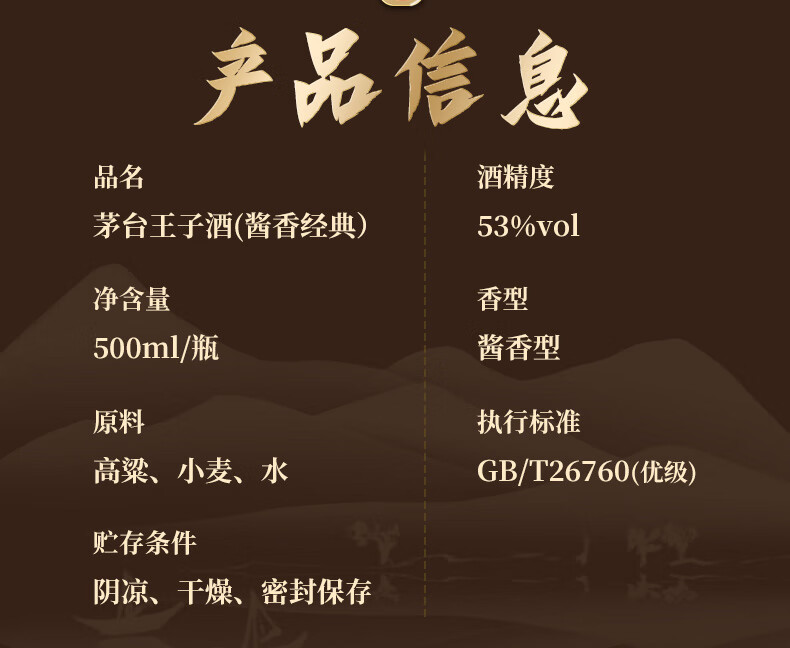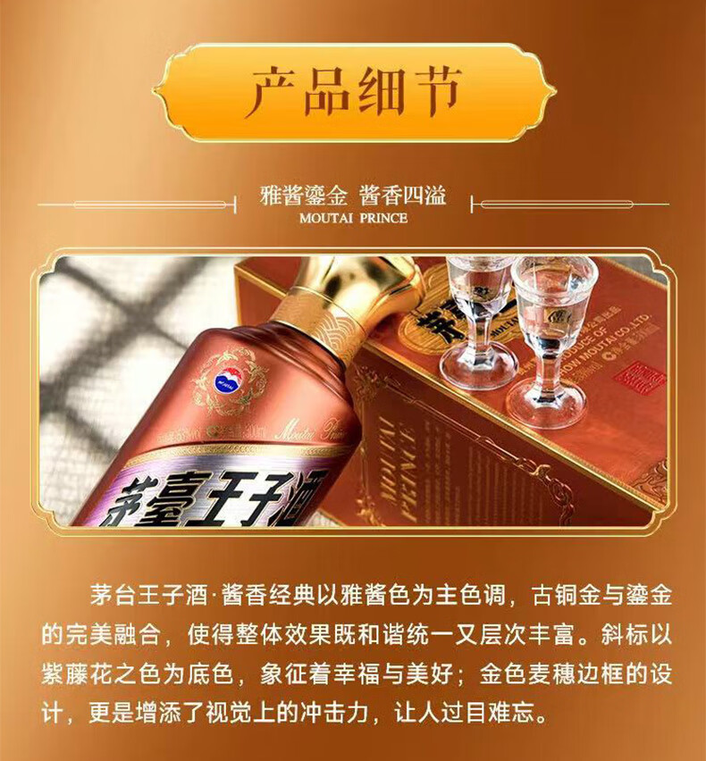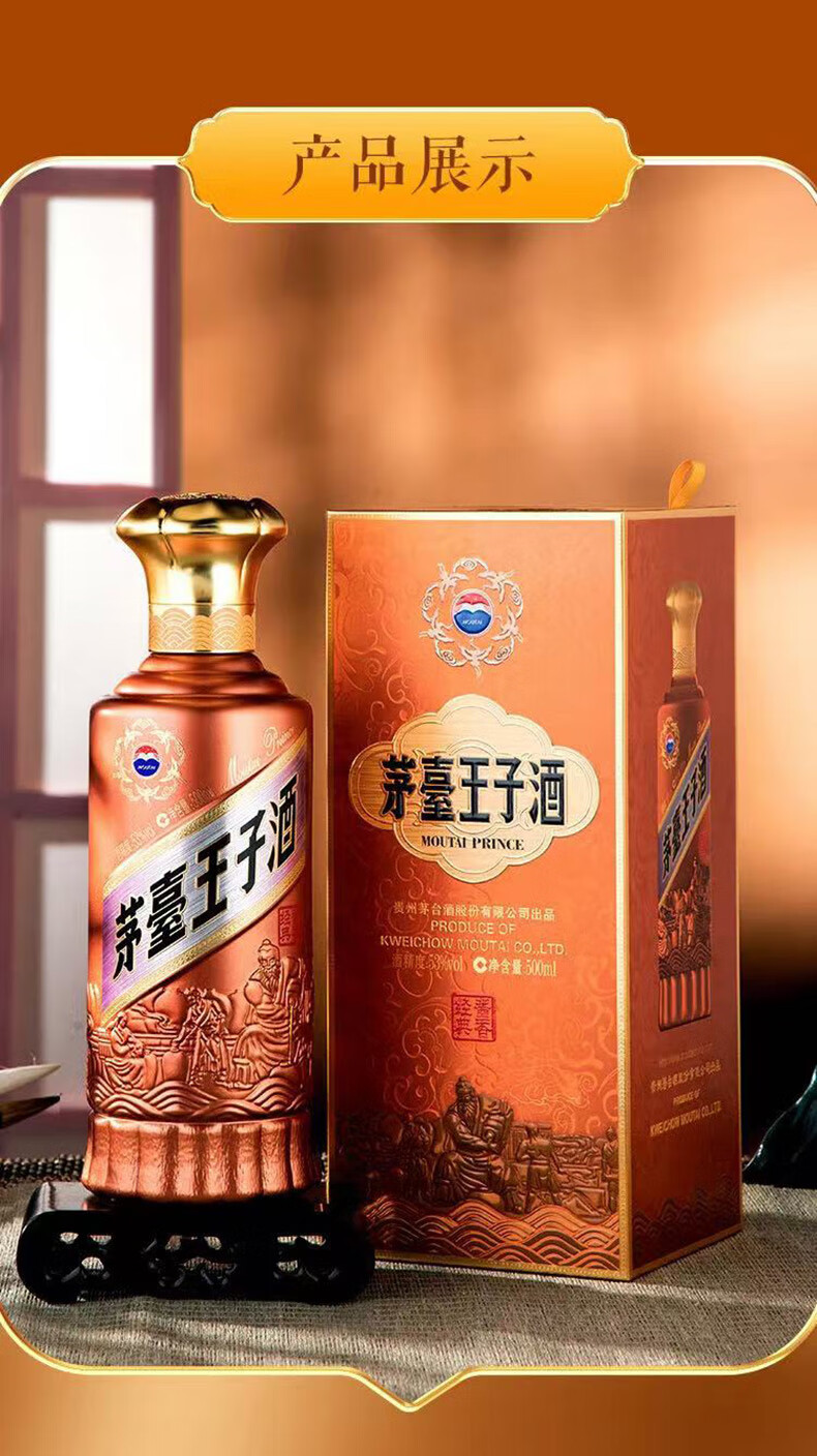 茅台(MOUTAI) 茅台王子酒 酱香型白酒 送礼婚宴 53度 500mL 1瓶 金王子