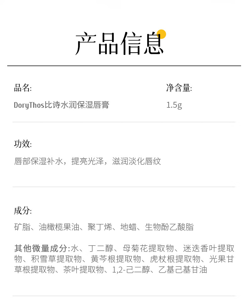 比诗未来水润保湿唇膏小白管深层补水保湿滋养润唇精华淡化唇纹1.5g*2