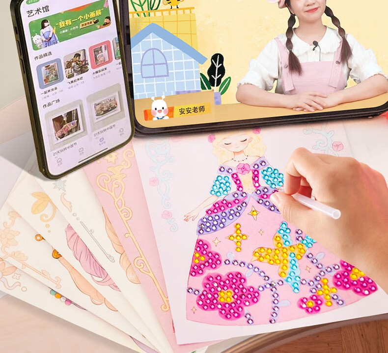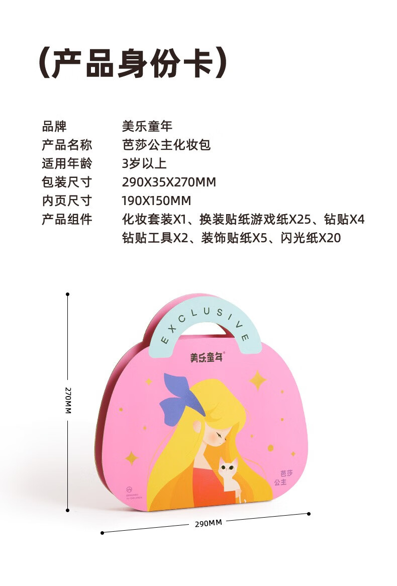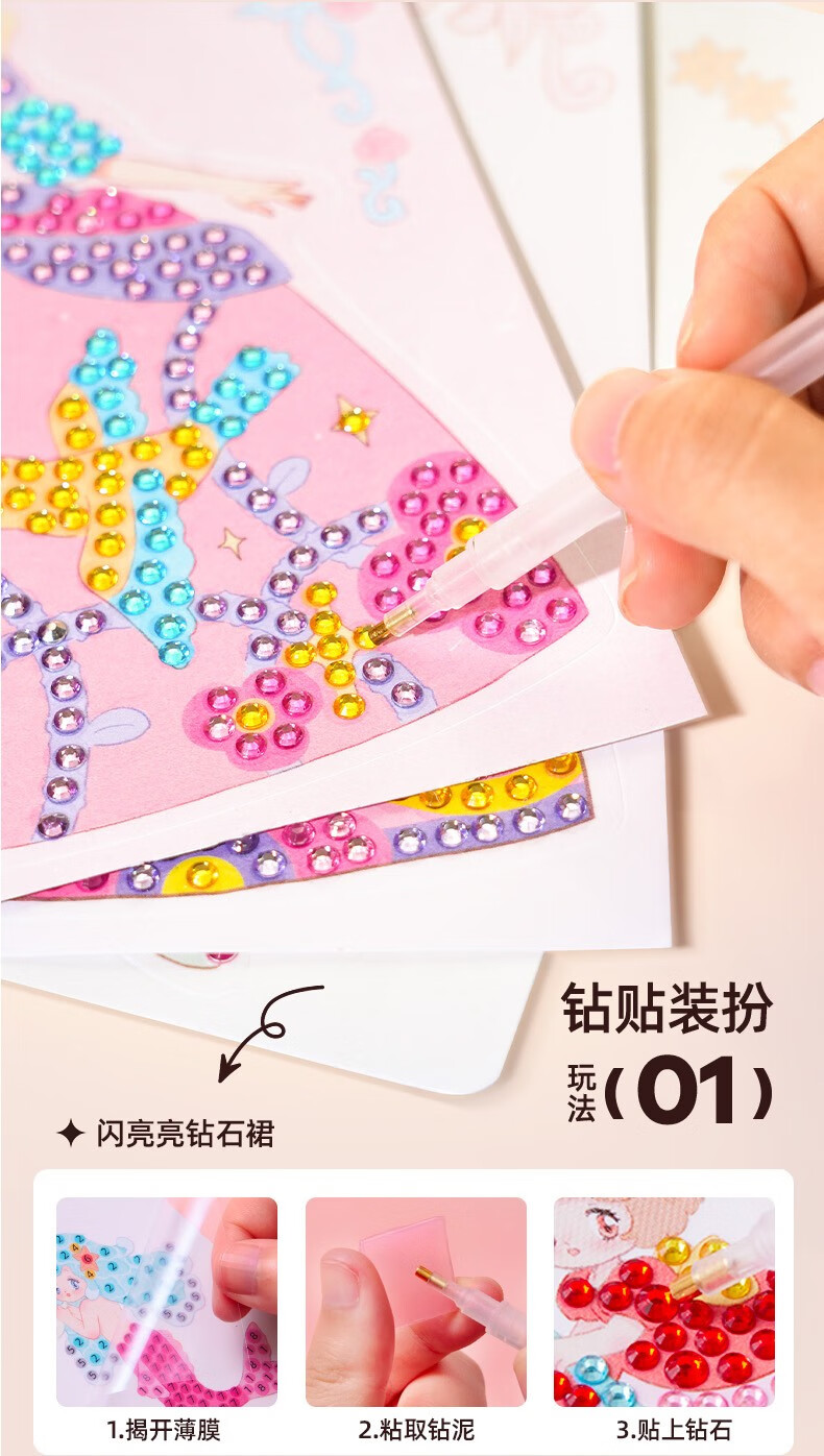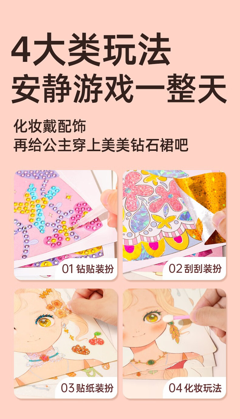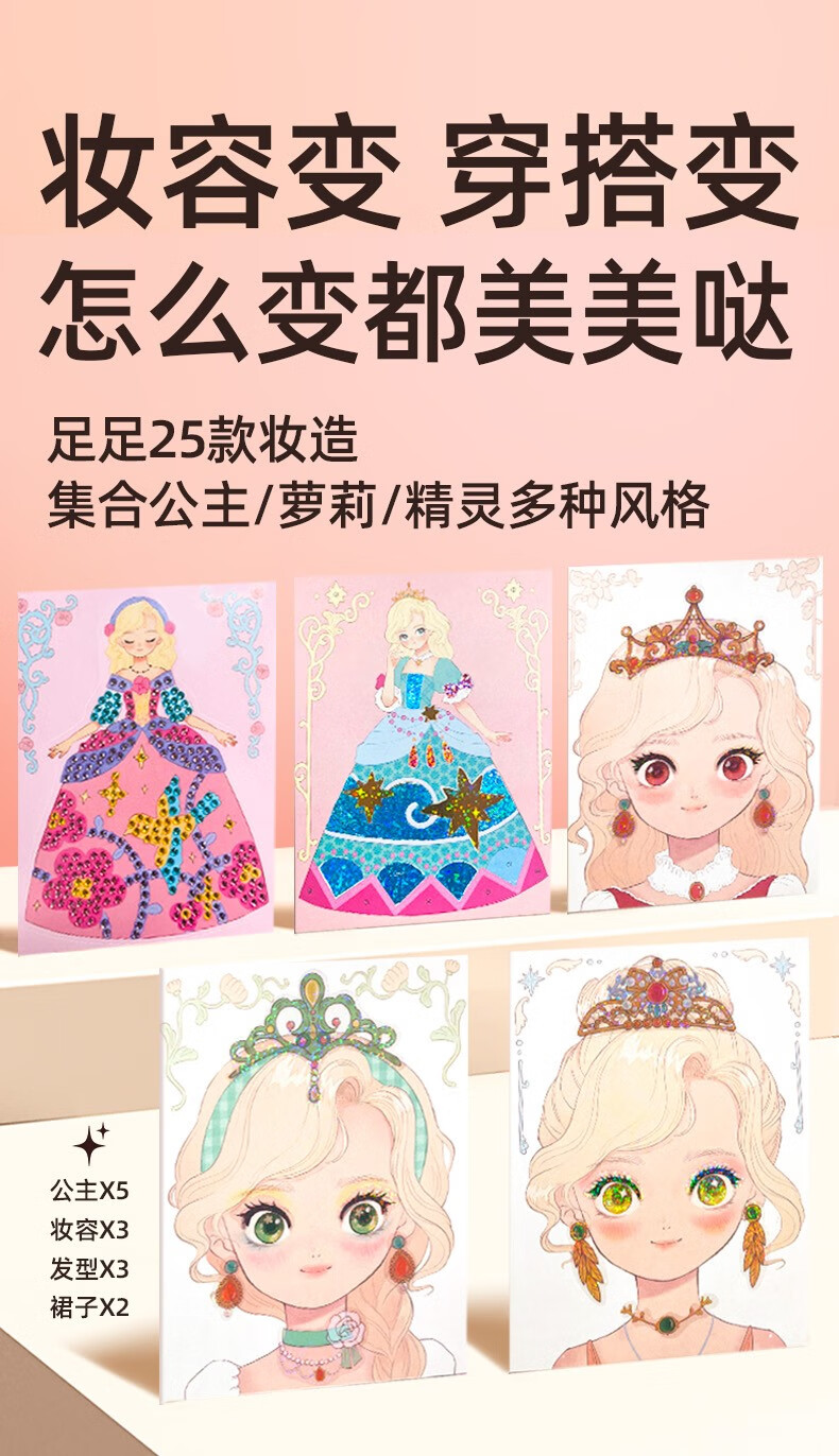 美乐童年化妆书芭莎公主钻石贴画安静书女孩手工儿童diy玩具生日礼物 芭莎公主
