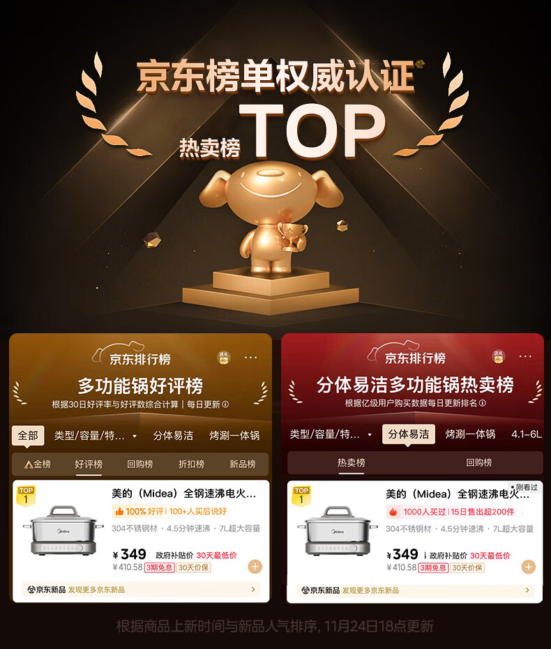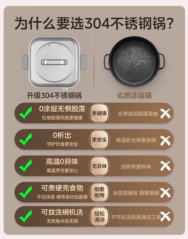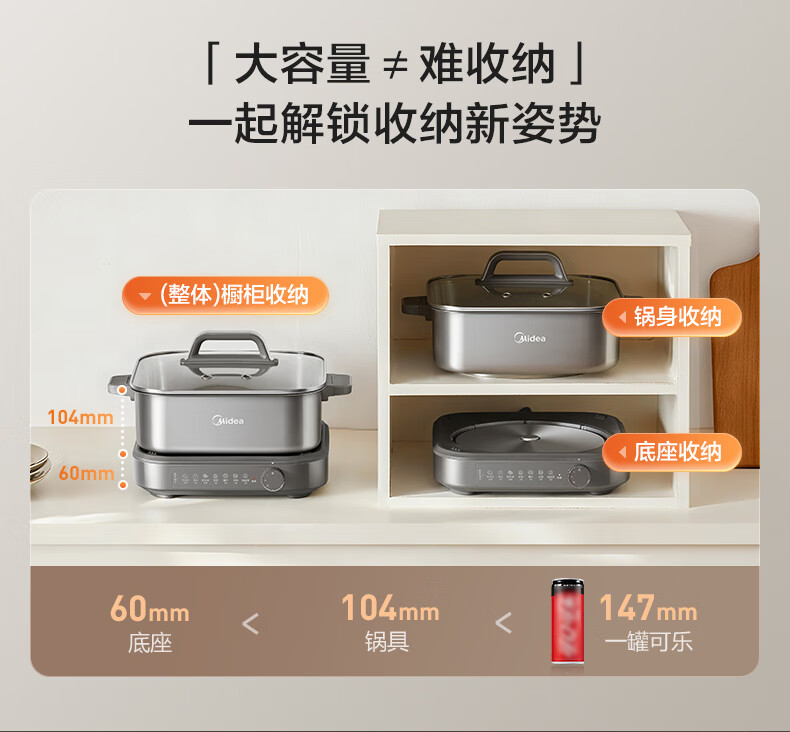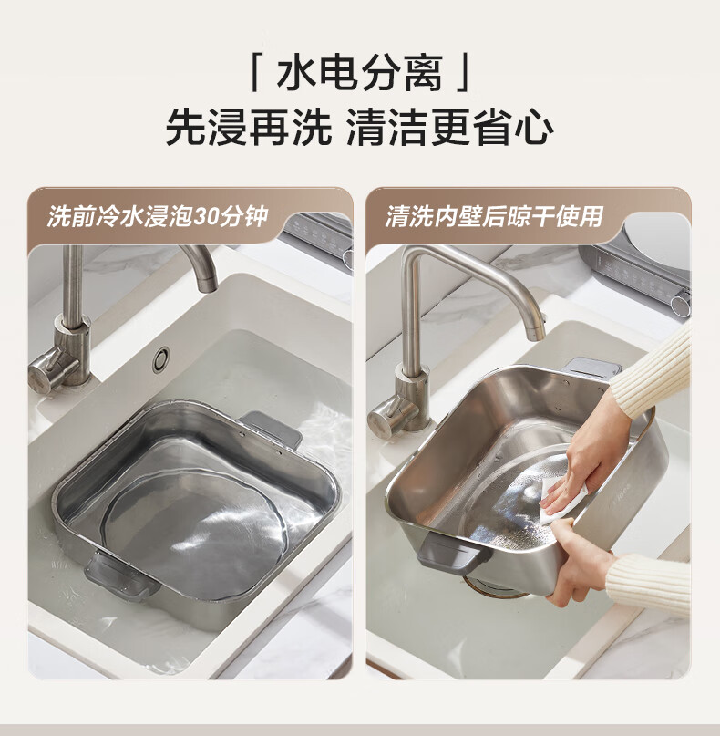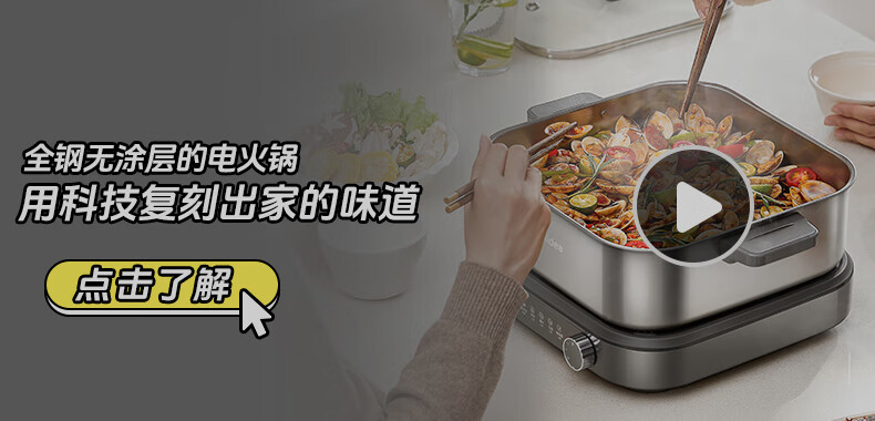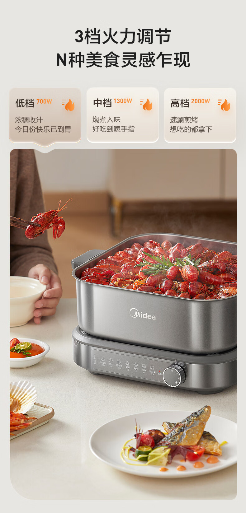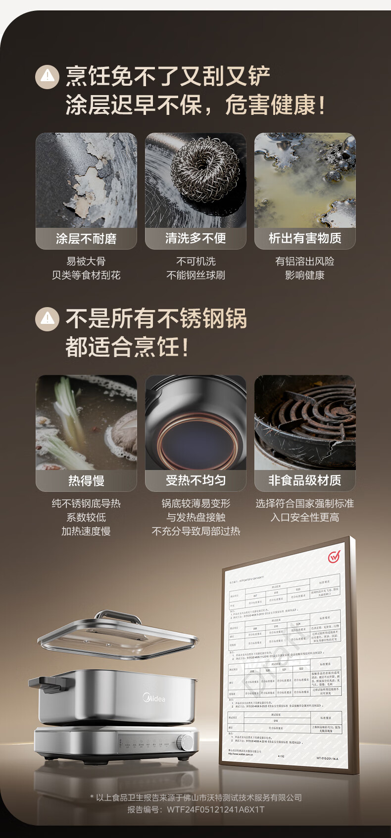 美的(Midea)全钢速沸电火锅0涂层家用5-8人7L超薄火锅专用锅304不锈钢无涂层电煮锅涮炖煮多功能料理锅 7L MC-HGS3030G3 全钢0涂层丨4分钟速沸 304不锈钢内胆