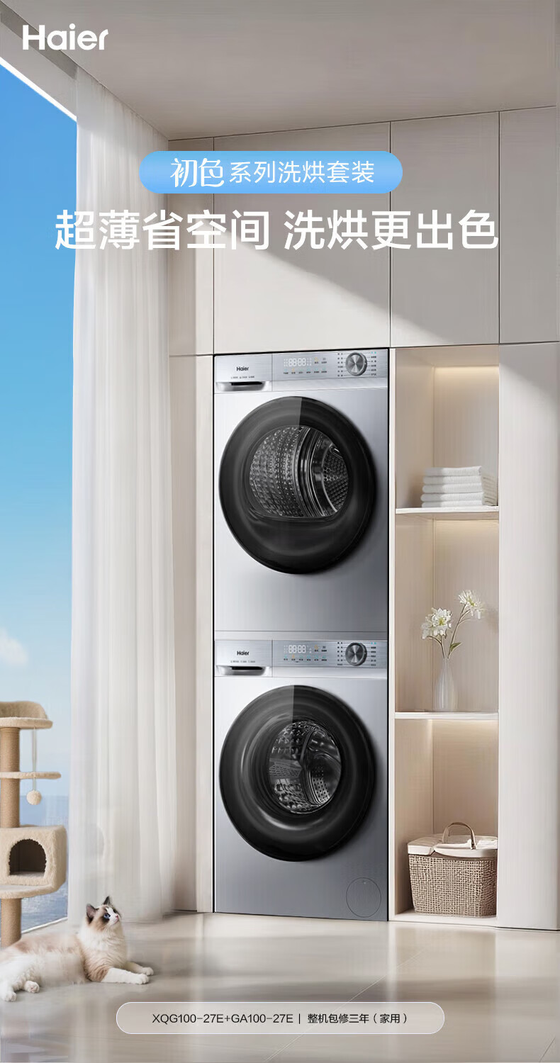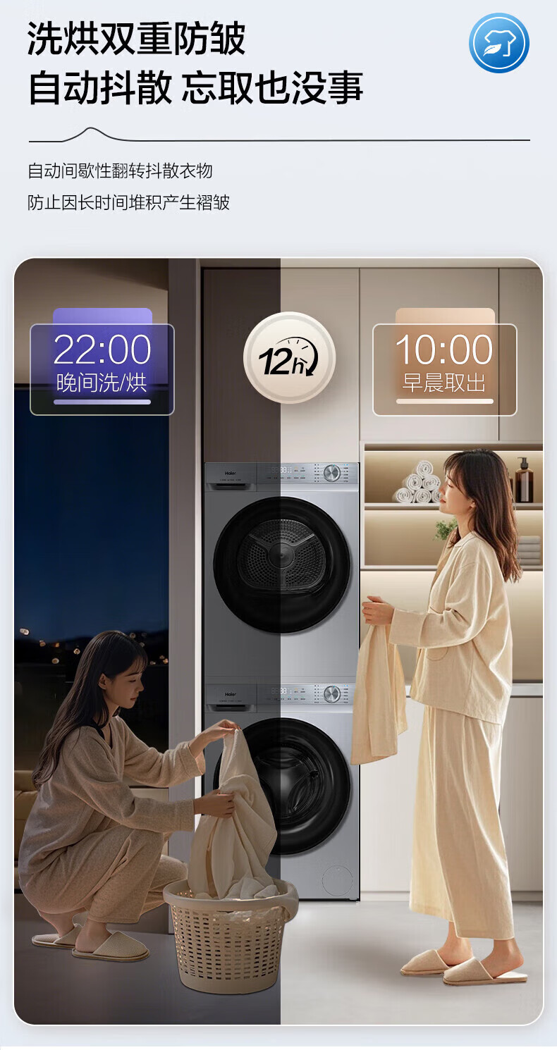 海尔云溪4.0洗烘套装【376/77E/超越53E/67E】13/12/10公斤洗衣机热泵烘干机组合 洗衣机带烘干一体套装 云溪77E丨10KG洗+10KG烘丨羊毛绿标