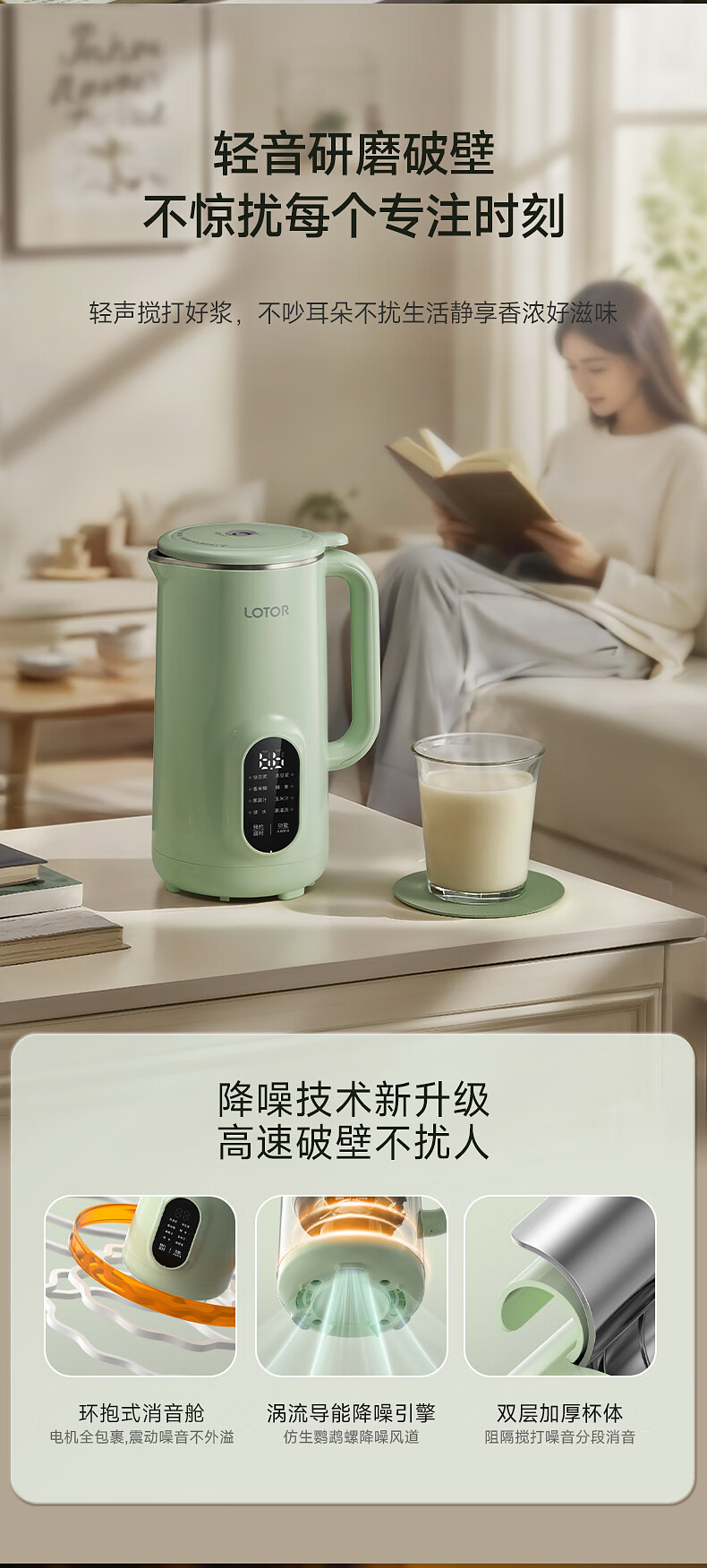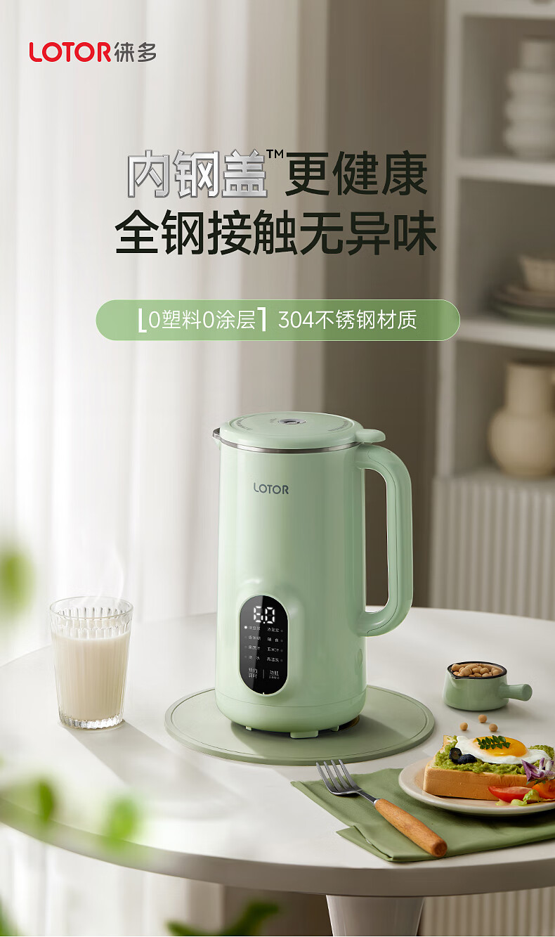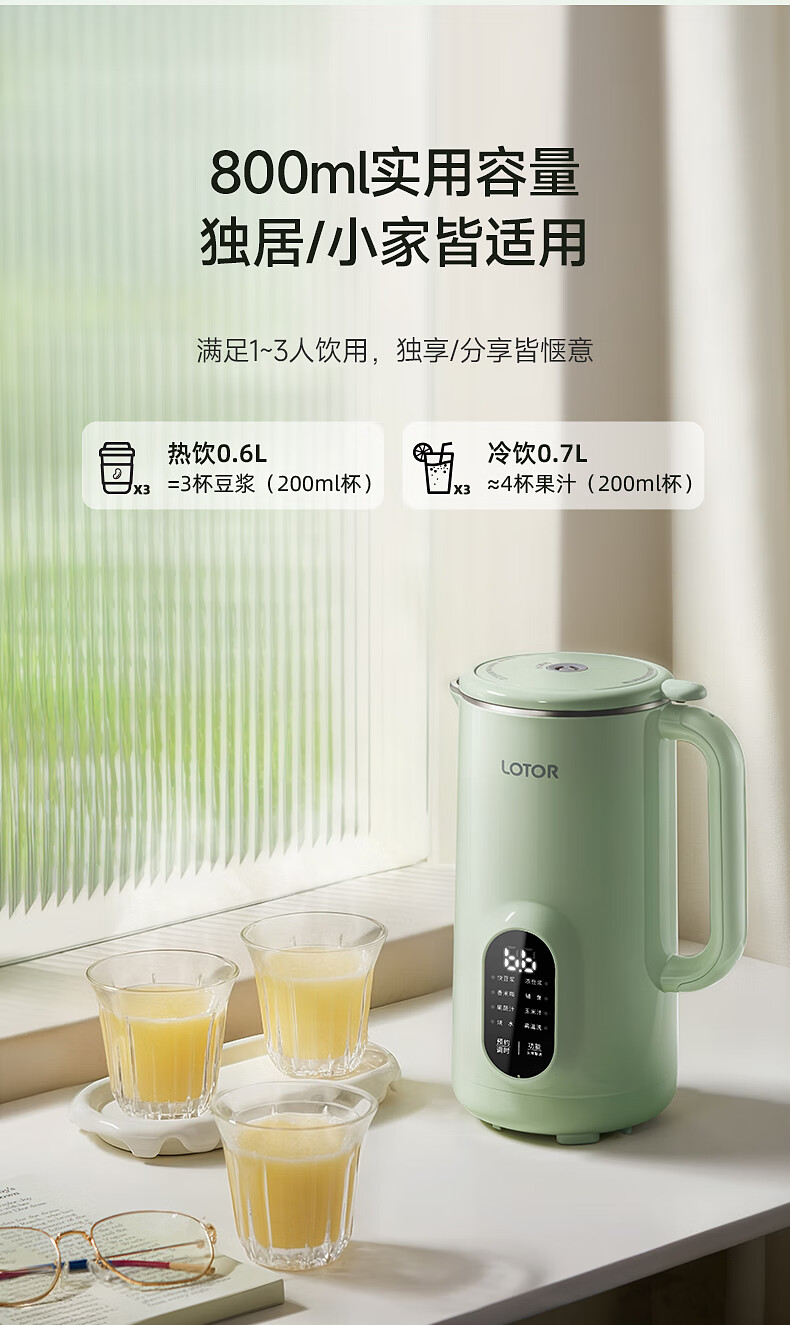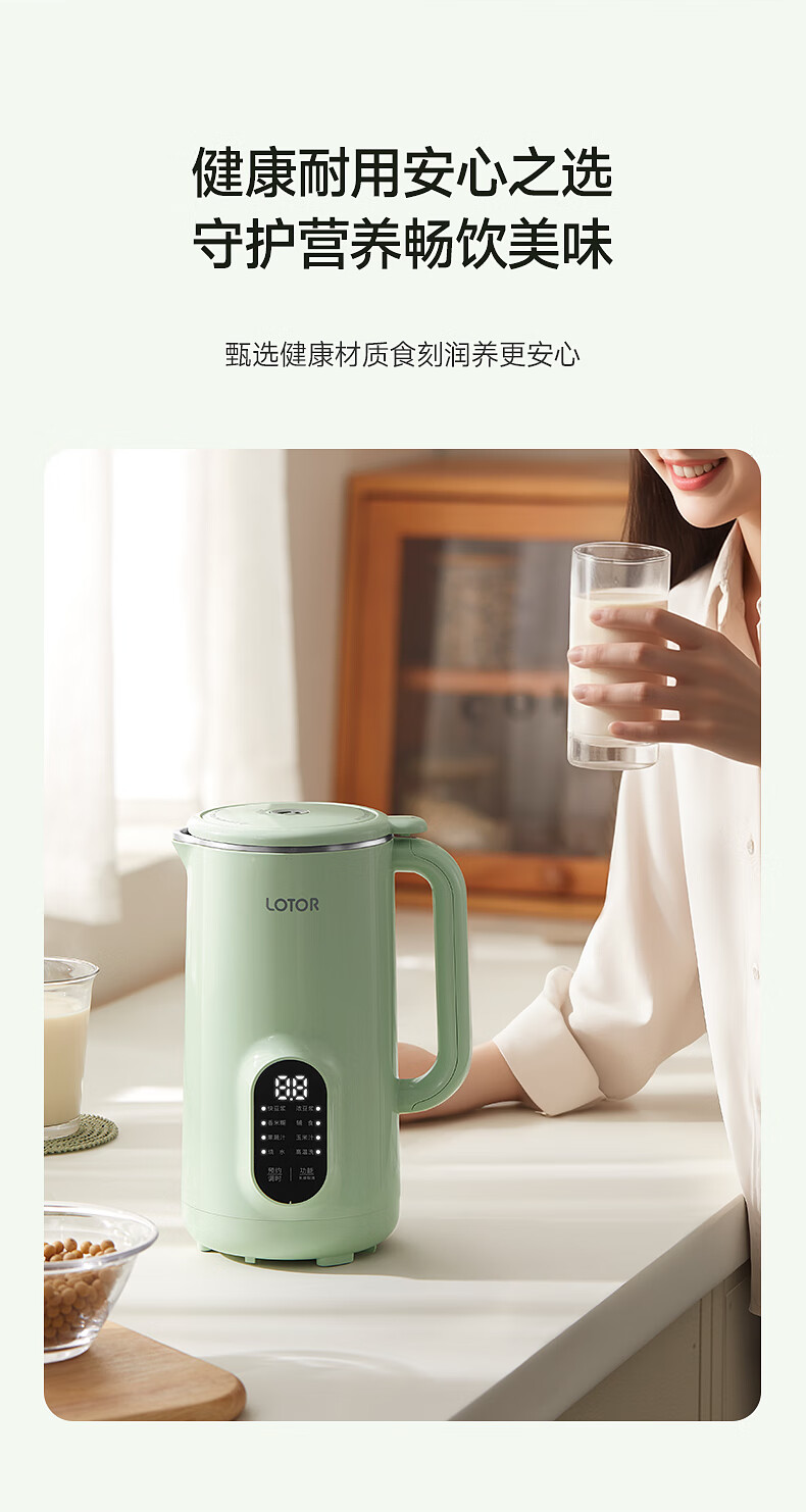 LOTOR破壁机五谷杂粮家用豆浆机迷你小型果汁榨汁料理机1-2人3-4人食 800ML绿色升级款