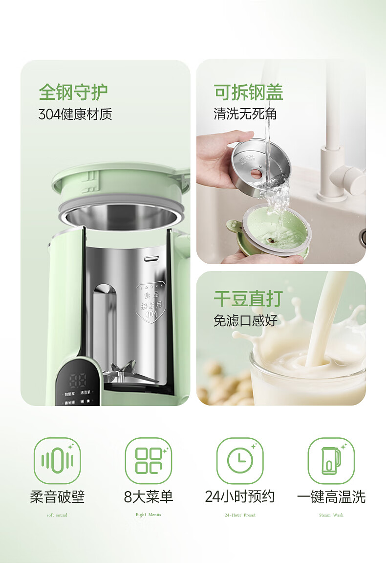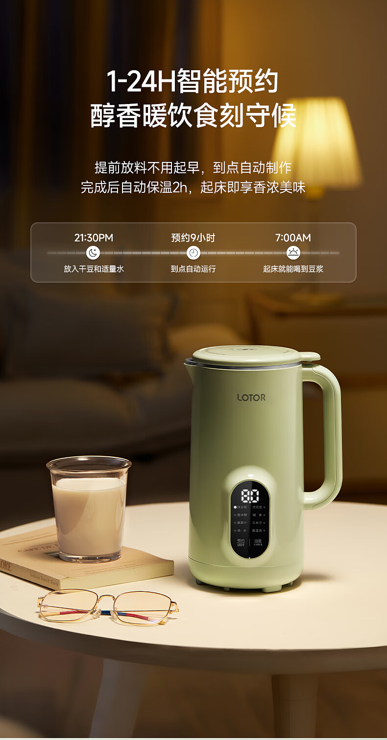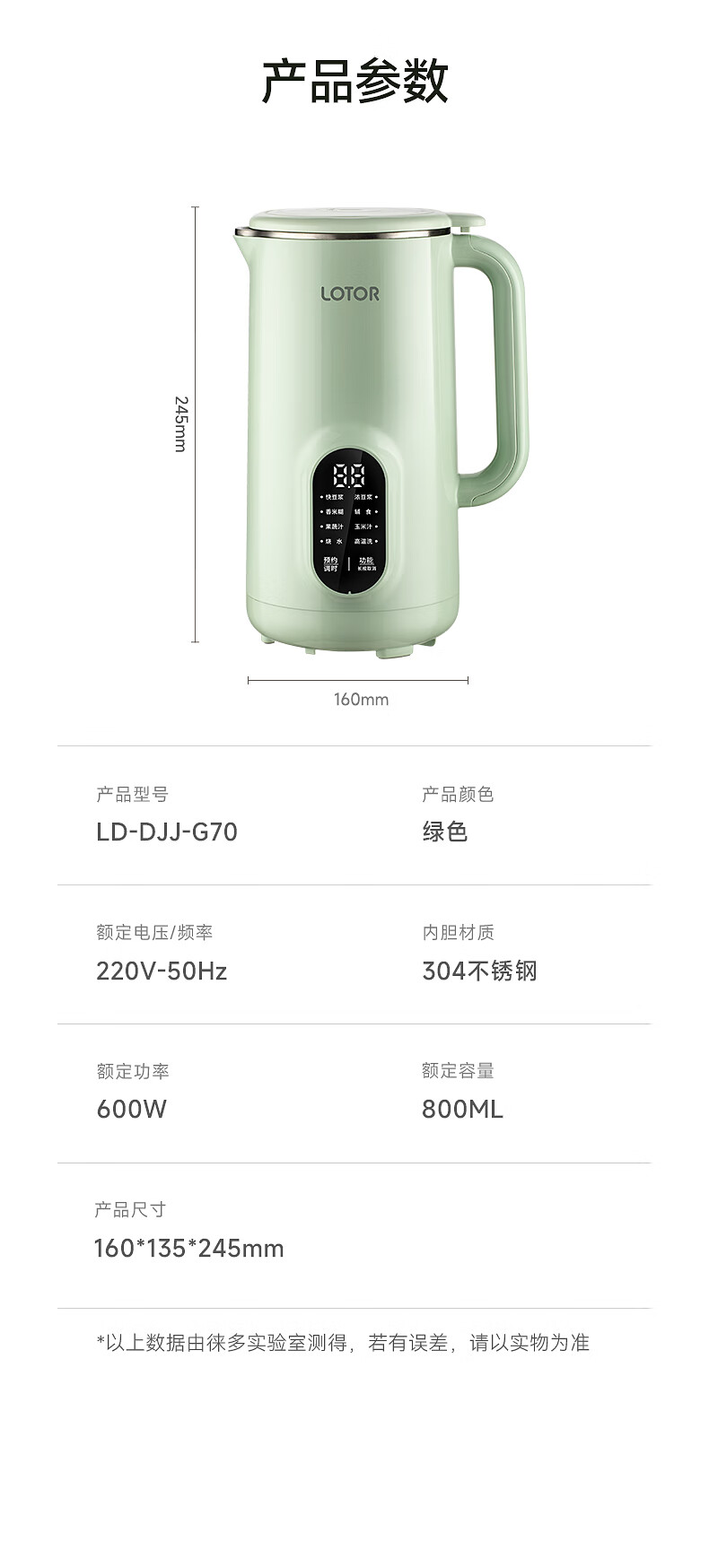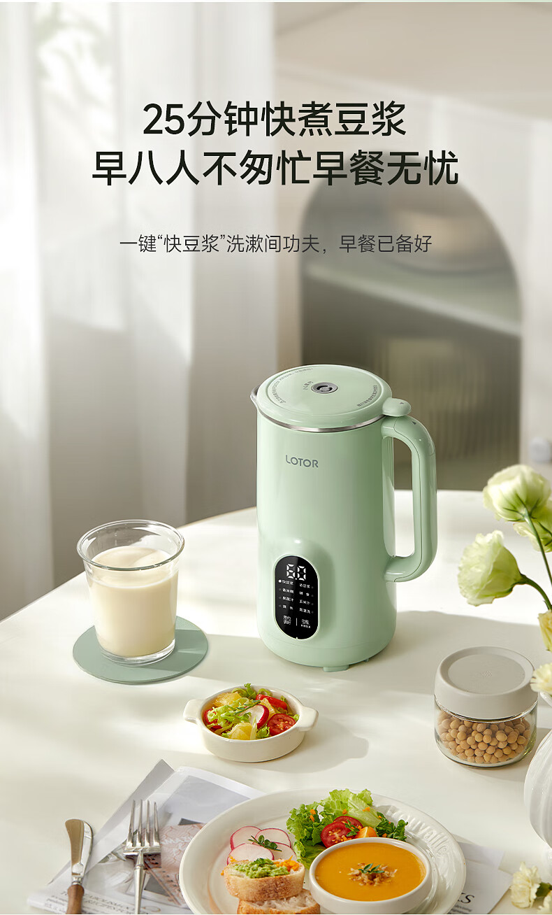 LOTOR破壁机五谷杂粮家用豆浆机迷你小型果汁榨汁料理机1-2人3-4人食 800ML绿色升级款