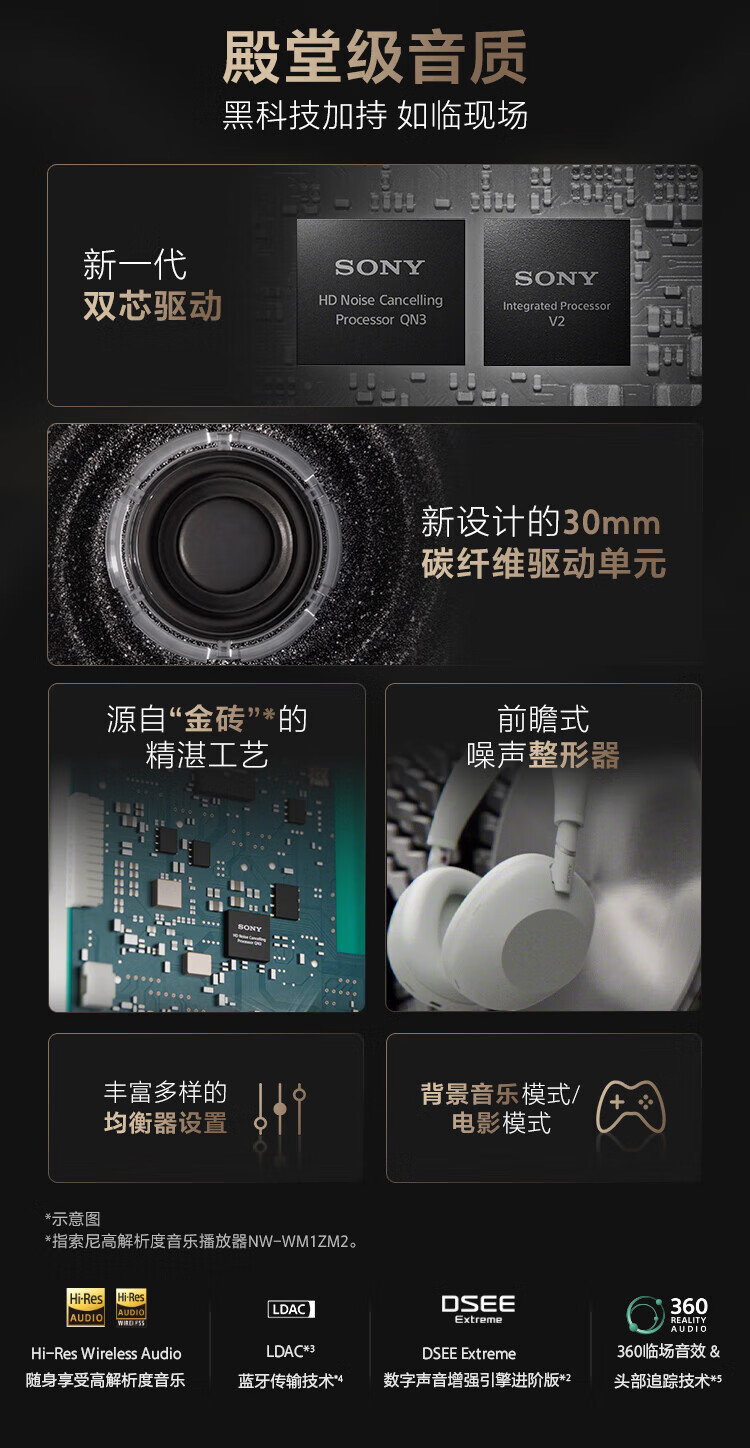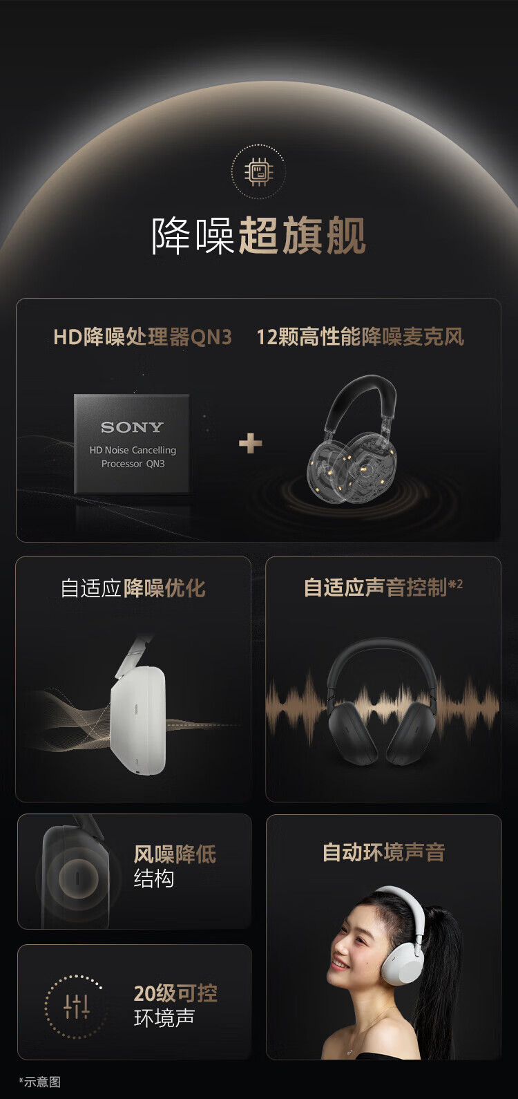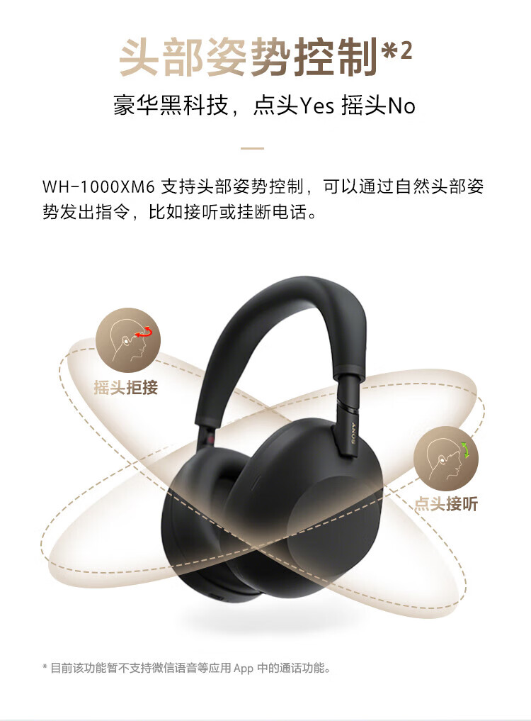 索尼(SONY)【重磅新品】WH-1000XM6 头戴式耳机 无线蓝牙降噪耳机1000XM5升级款手机电脑笔记本网课游戏礼物 黑色
