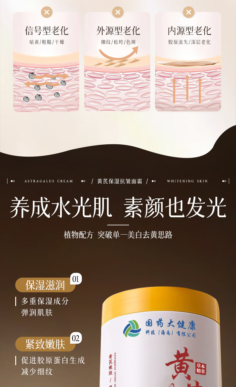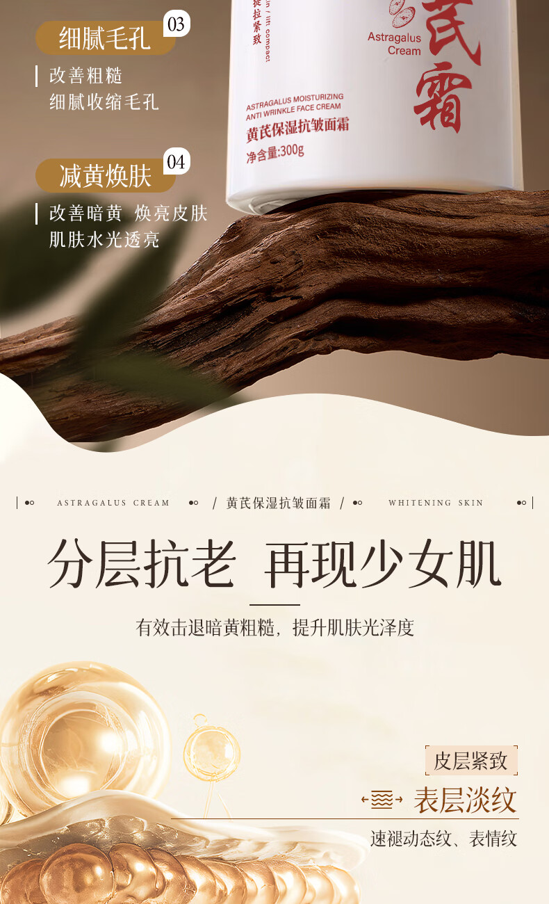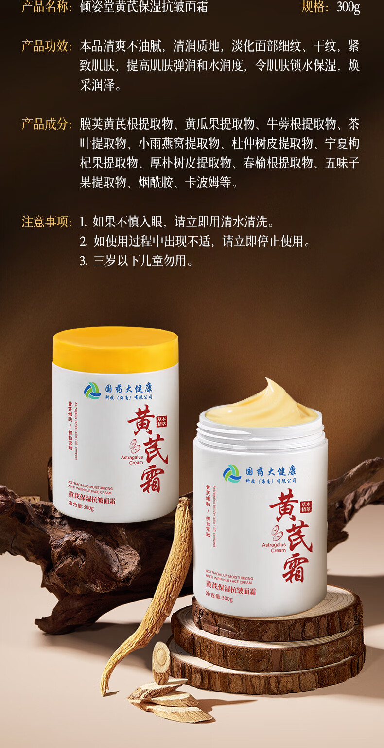 黄芪霜面霜老国货保湿提亮紧致抗皱淡纹男女士霜300g旗舰店正品保障 单盒装