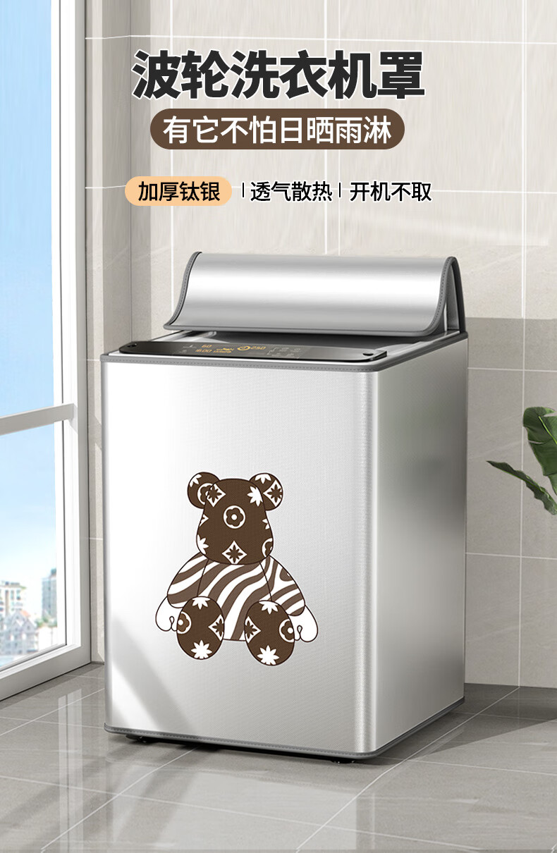 昂图洗衣机罩防水防尘防暴晒海尔小天鹅通用罩布波轮浴室专用盖布保护罩 银抱竹熊猫【加厚加密款】卡扣款 【升级款】洗涤容量10-12公斤