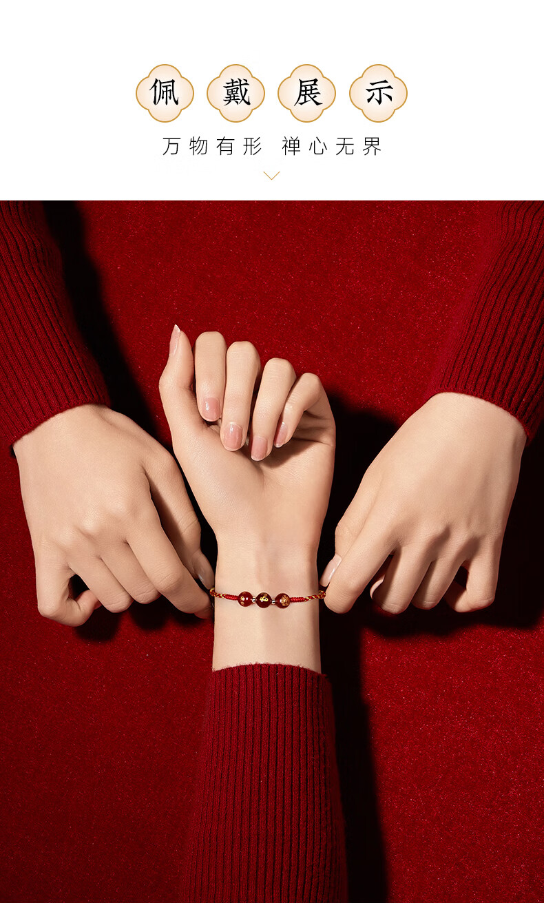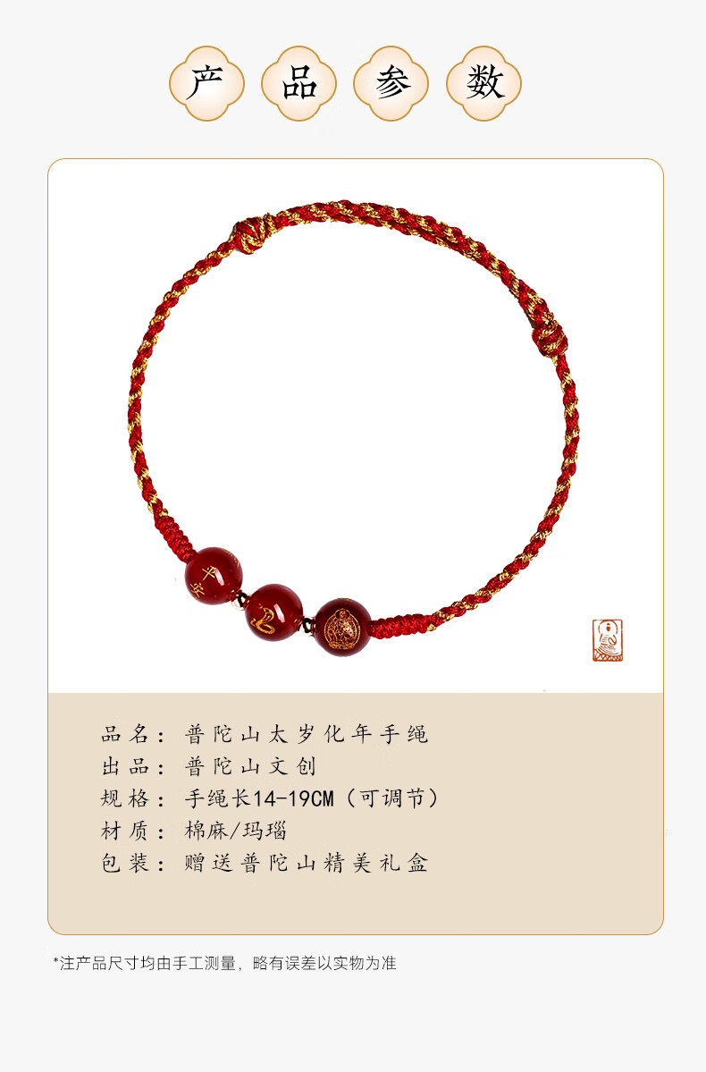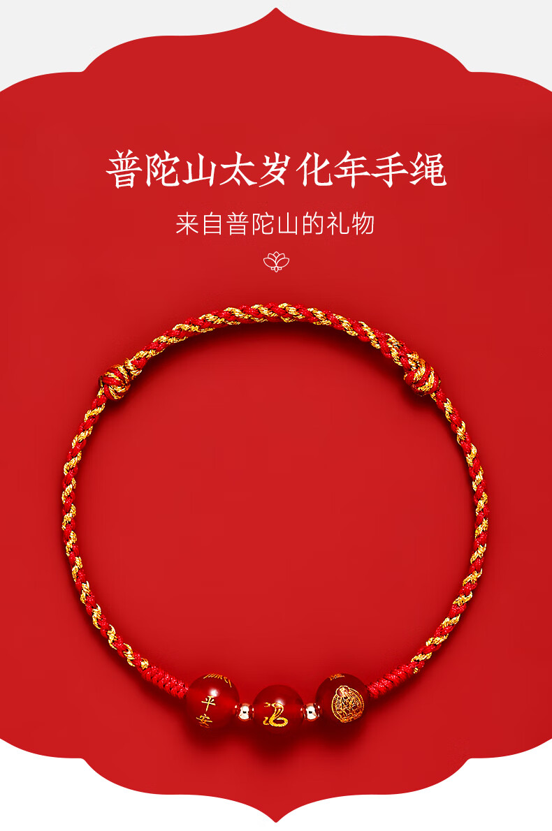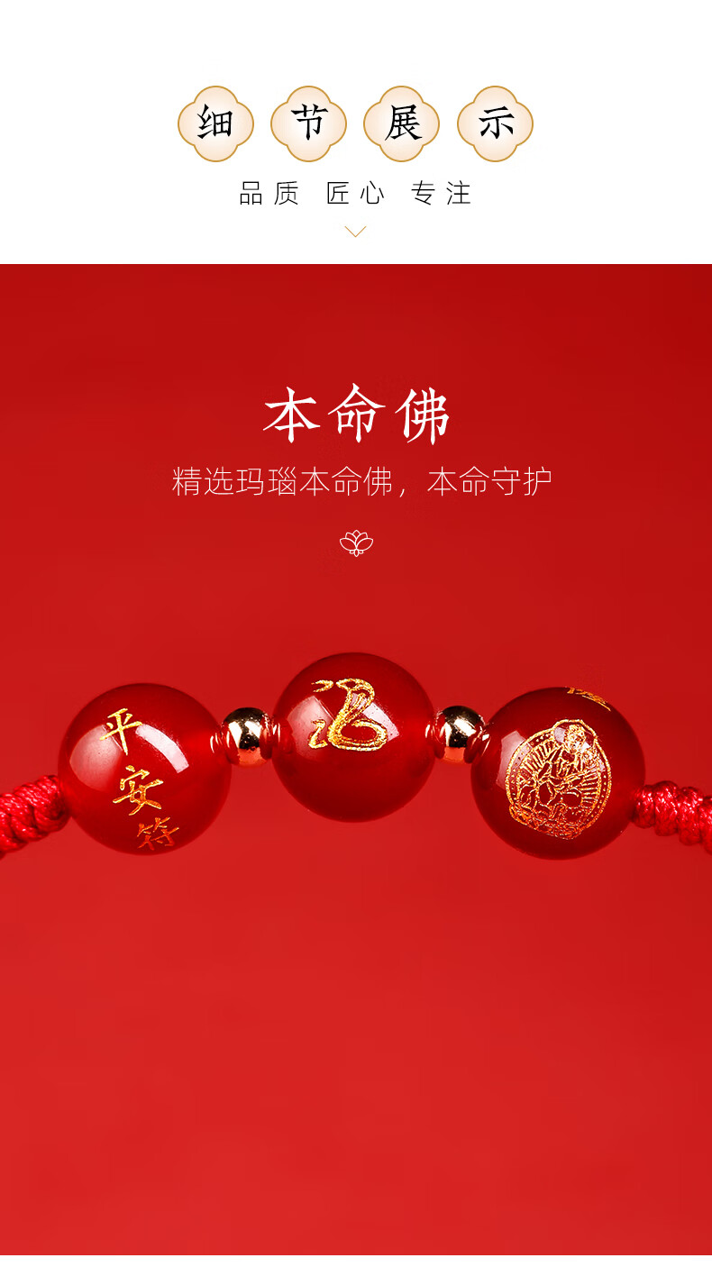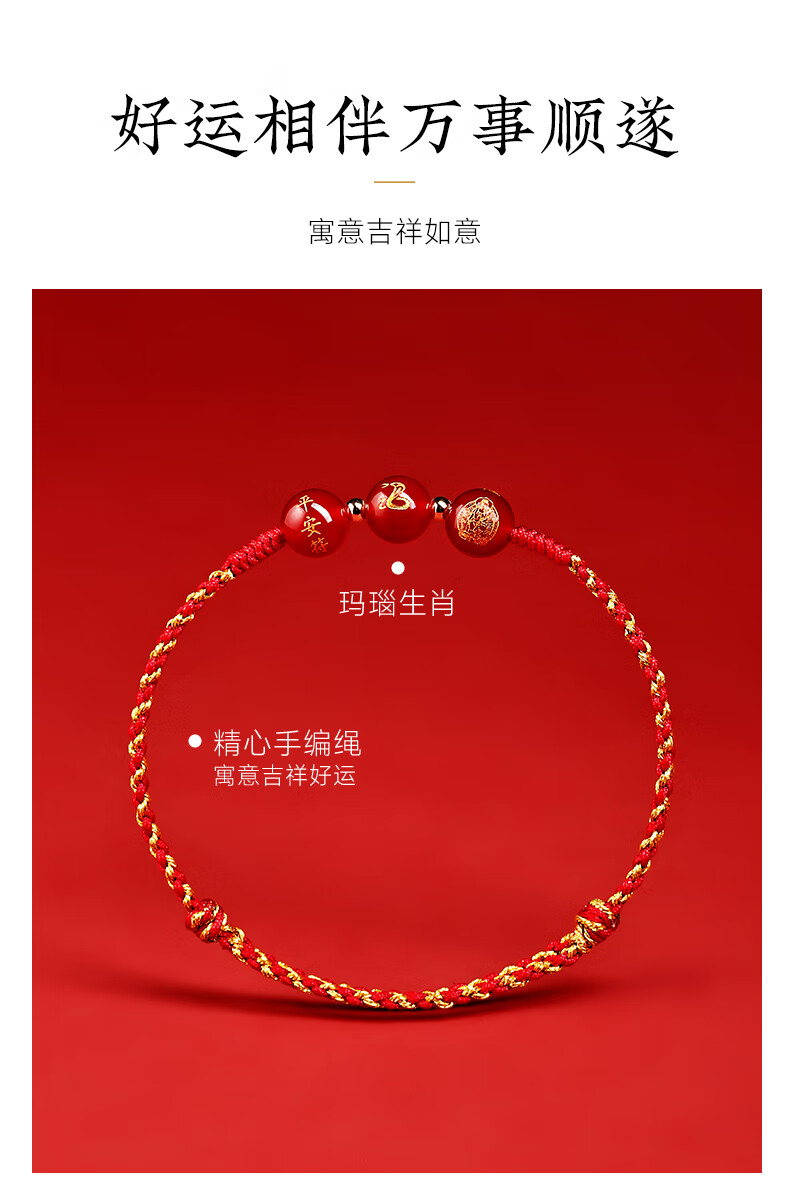 普陀山【正品保真】玛瑙红绳2025本命年红手绳手工编织绳属蛇年礼物 彩金玛瑙手绳-马