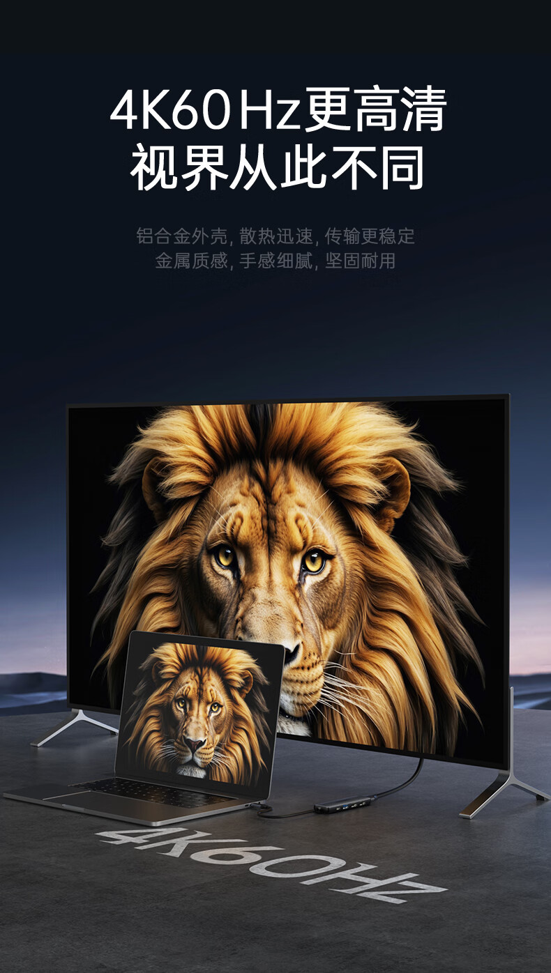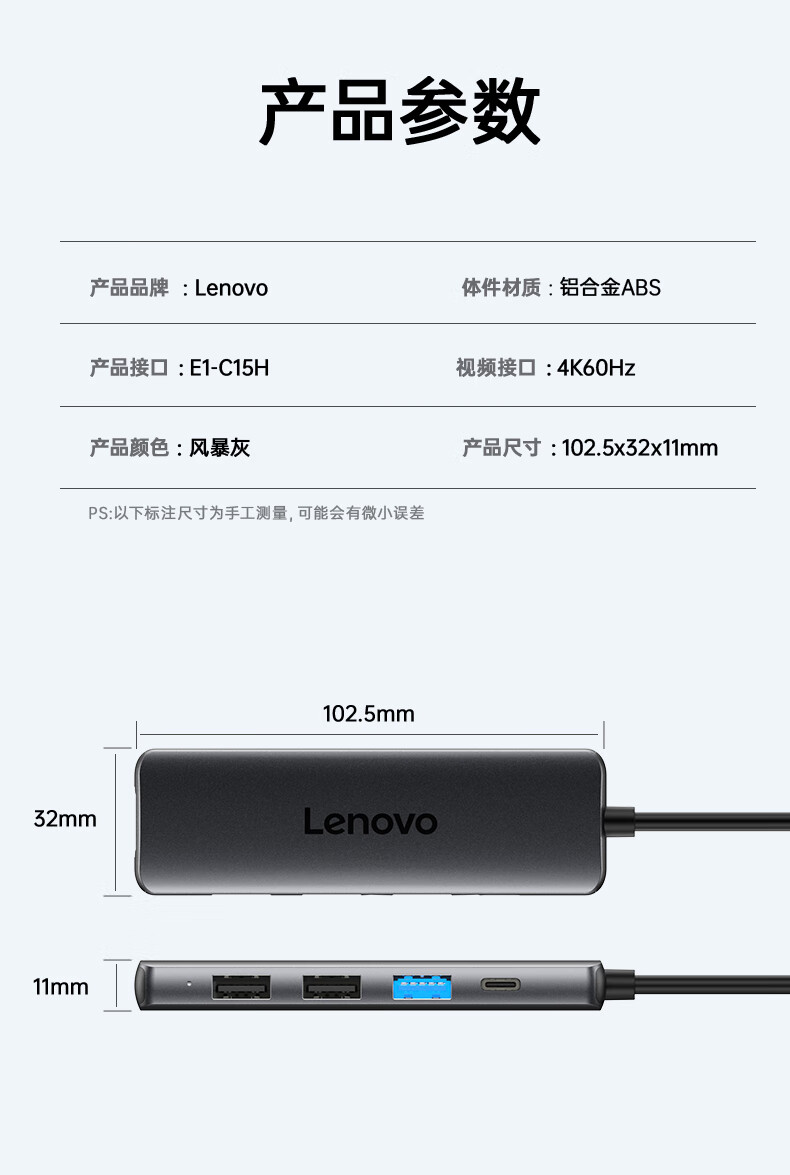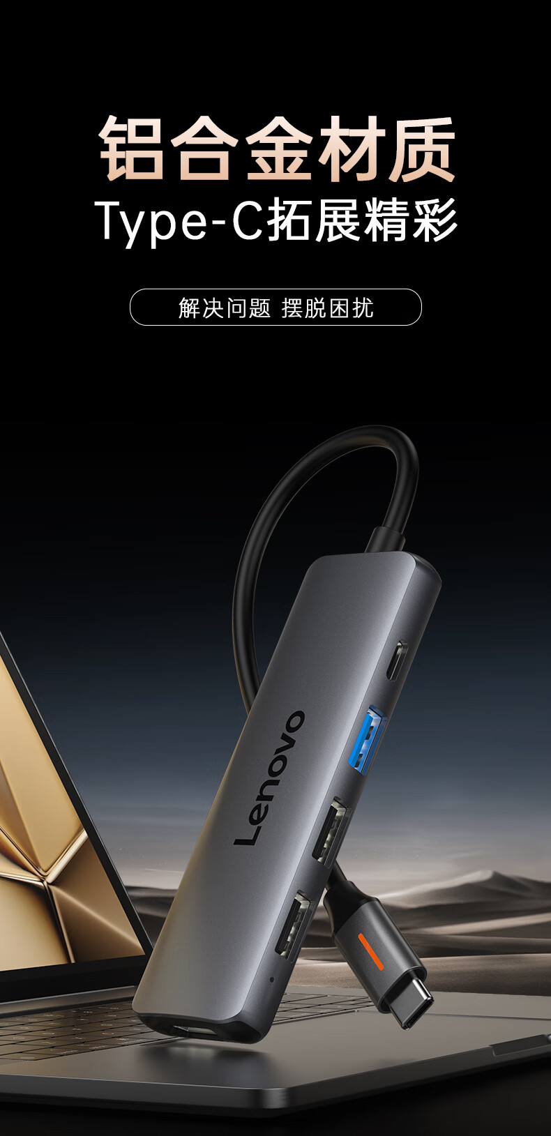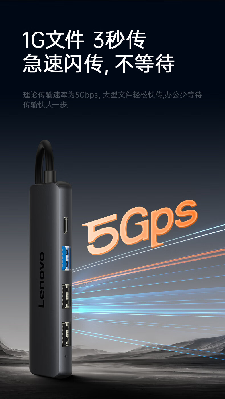 联想(Lenovo)Type-C扩展坞USB分线器转换HDMI转接拓展坞4K60Hz投屏扩展PD快充适用苹果手机平板小新笔记本电脑