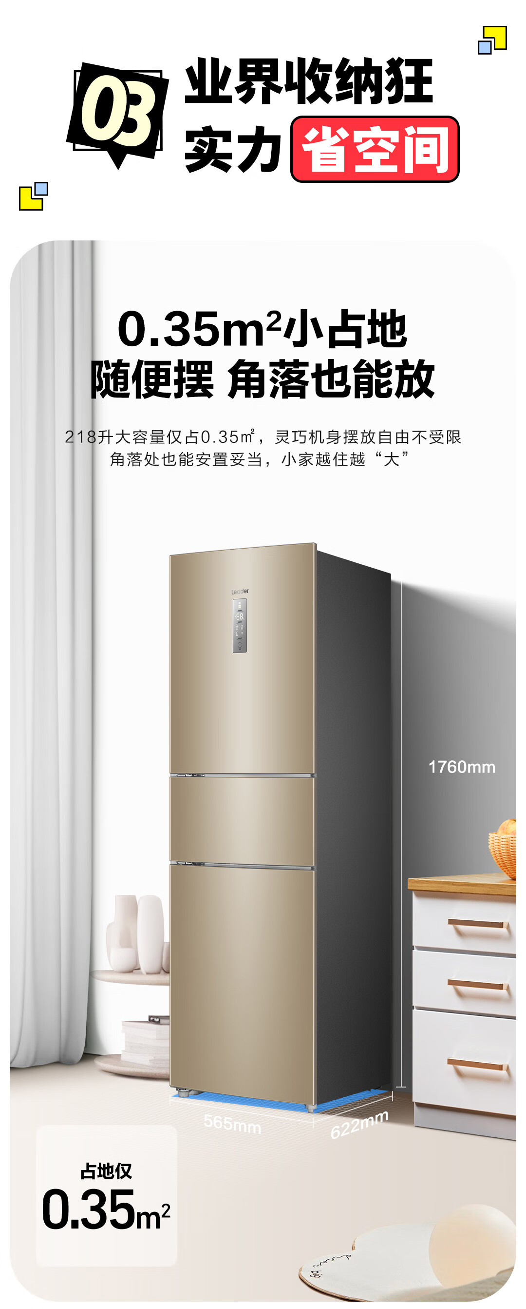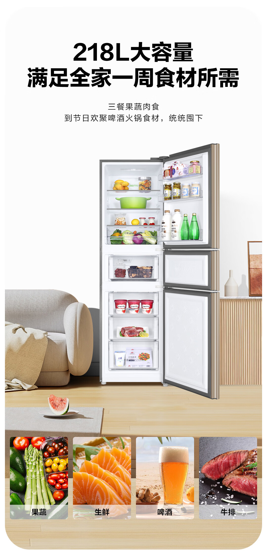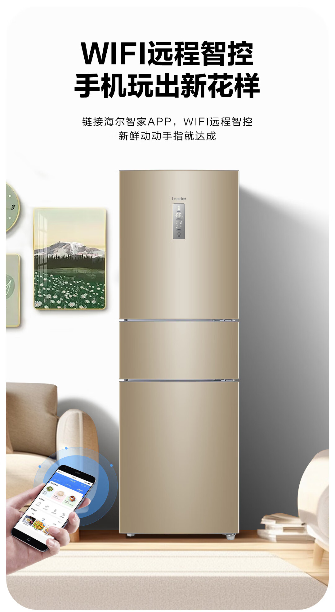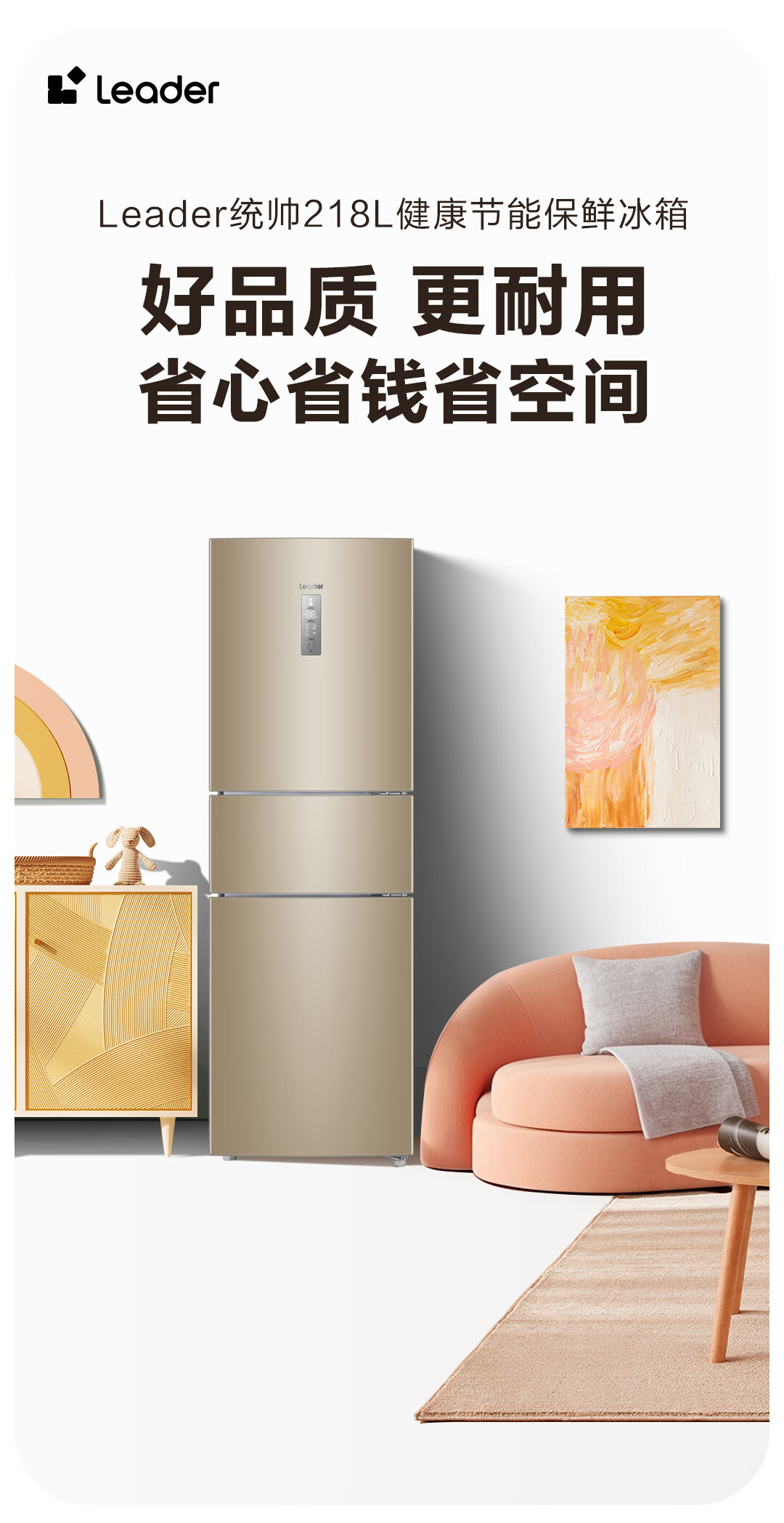 统帅(Leader)海尔冰箱出品 218升三门一级变频节能家用电冰箱 小型宿舍租房风冷无霜除菌 【国家补贴20%】
