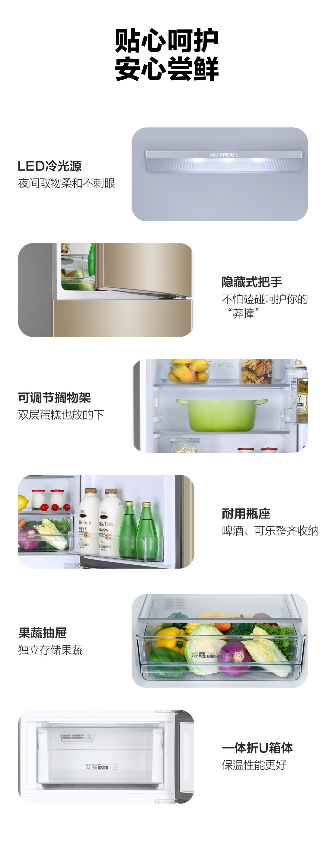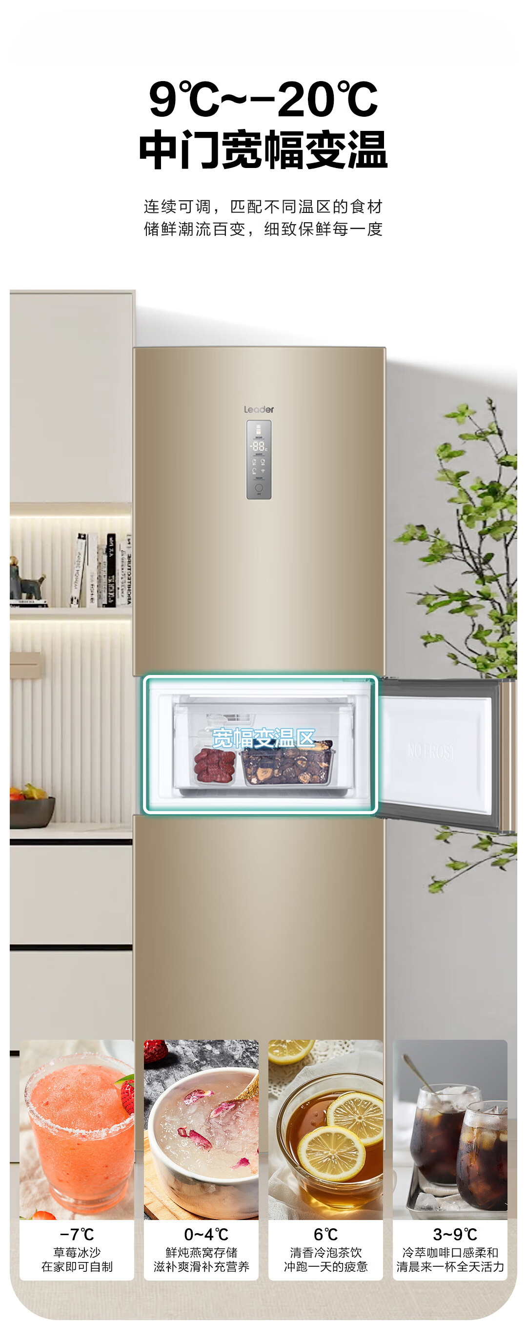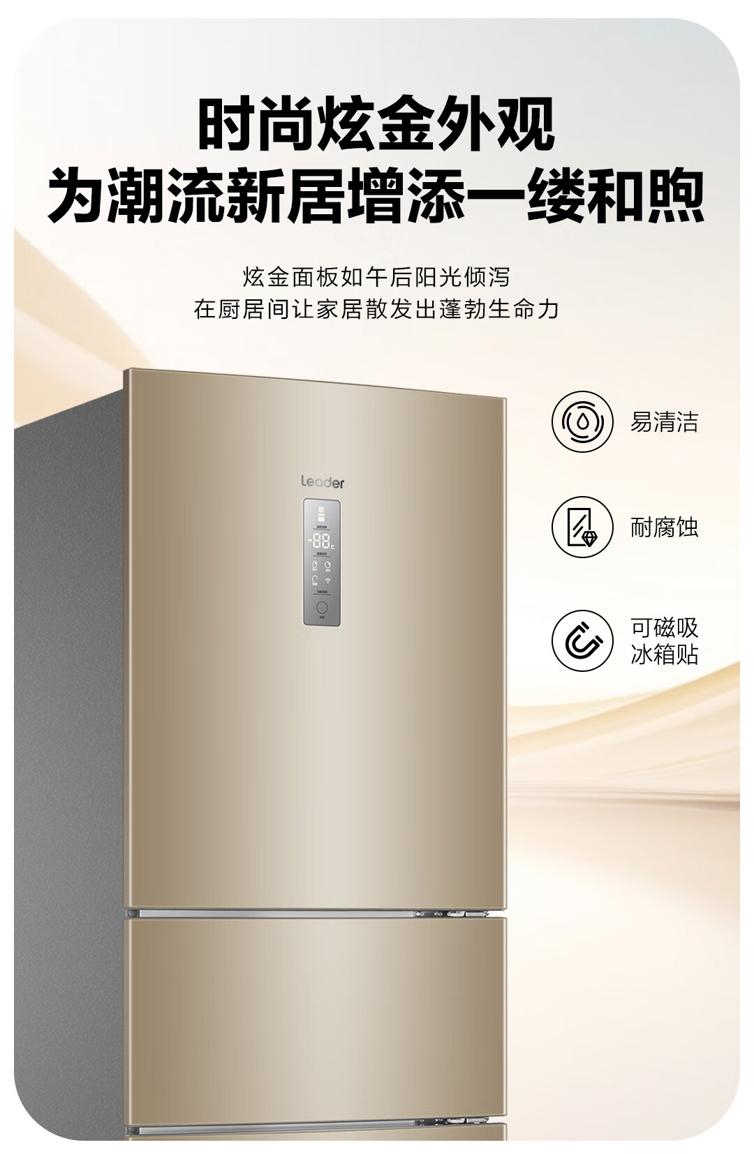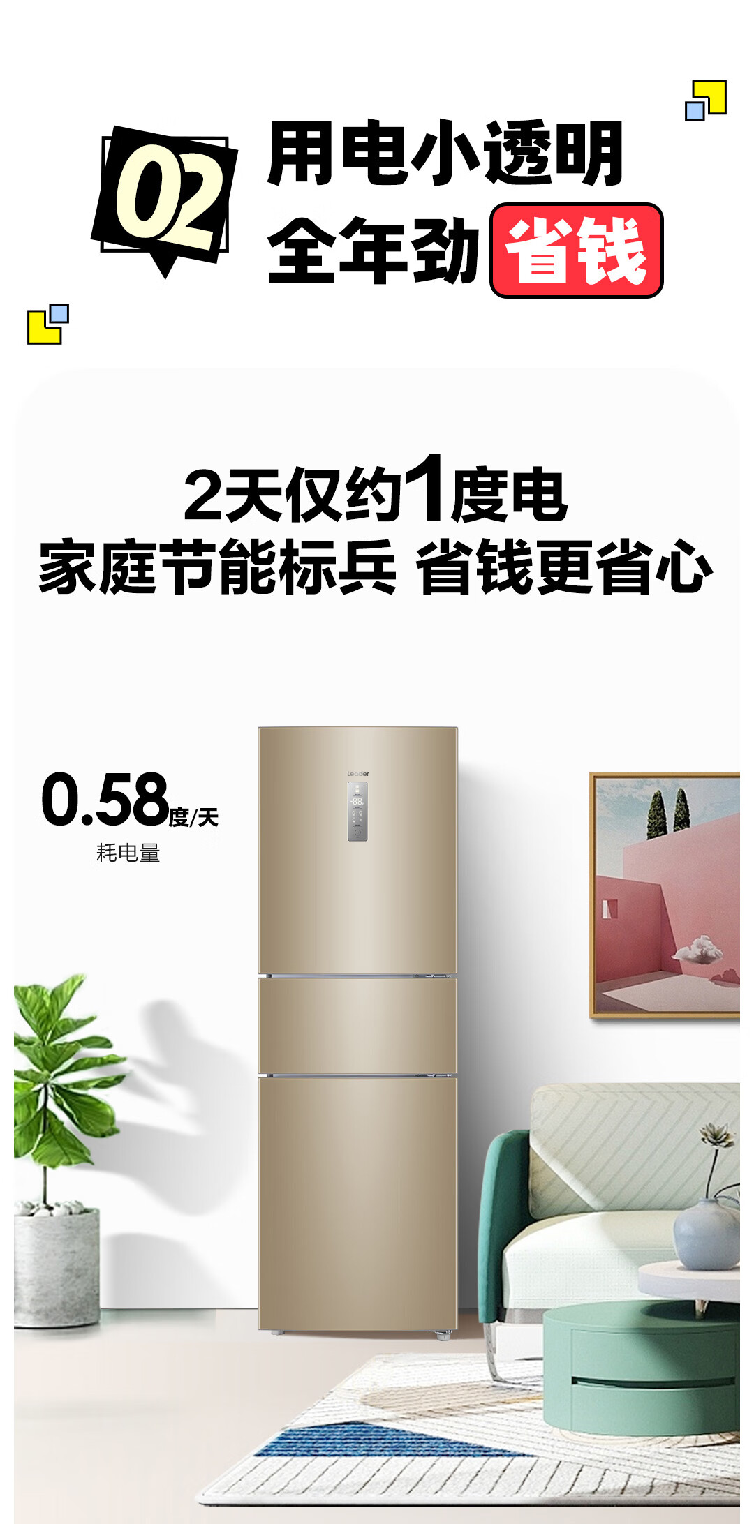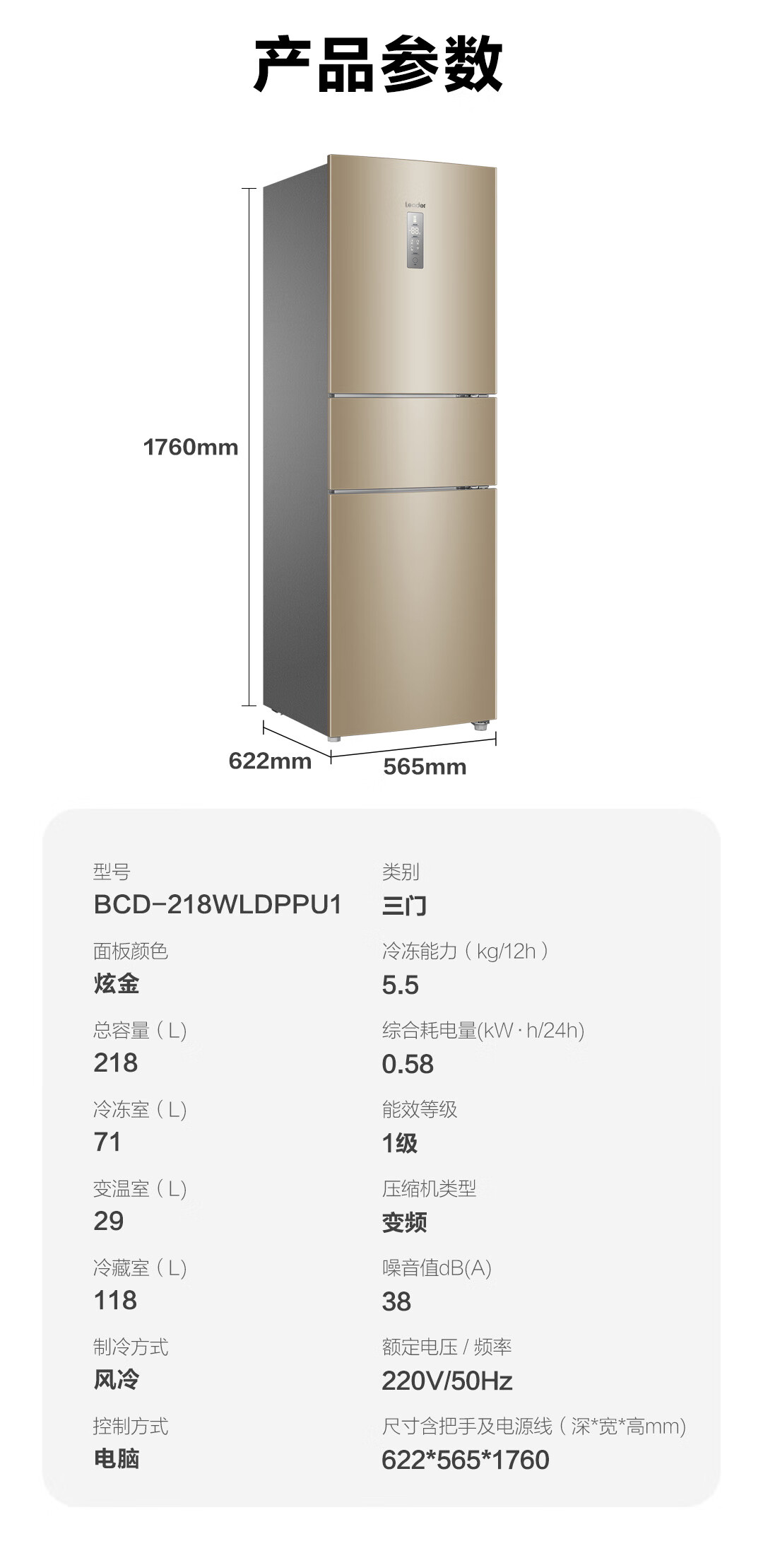 统帅(Leader)海尔冰箱出品 218升三门一级变频节能家用电冰箱 小型宿舍租房风冷无霜除菌 【国家补贴20%】