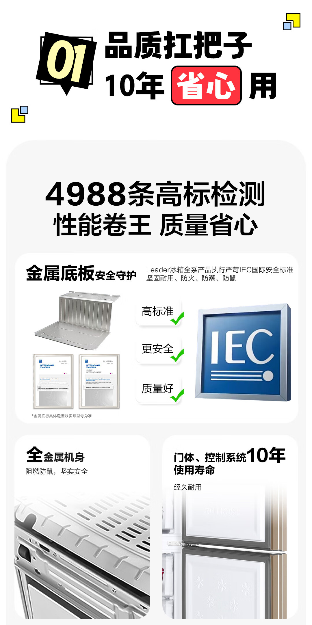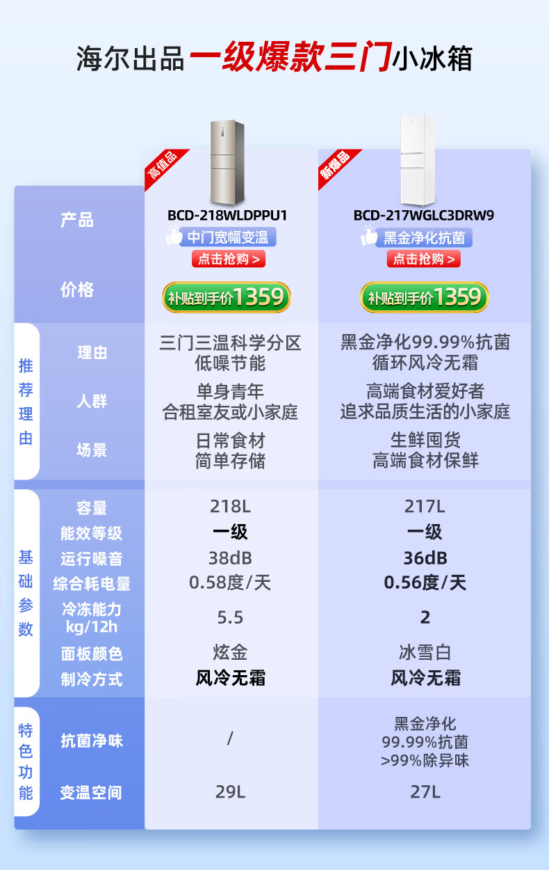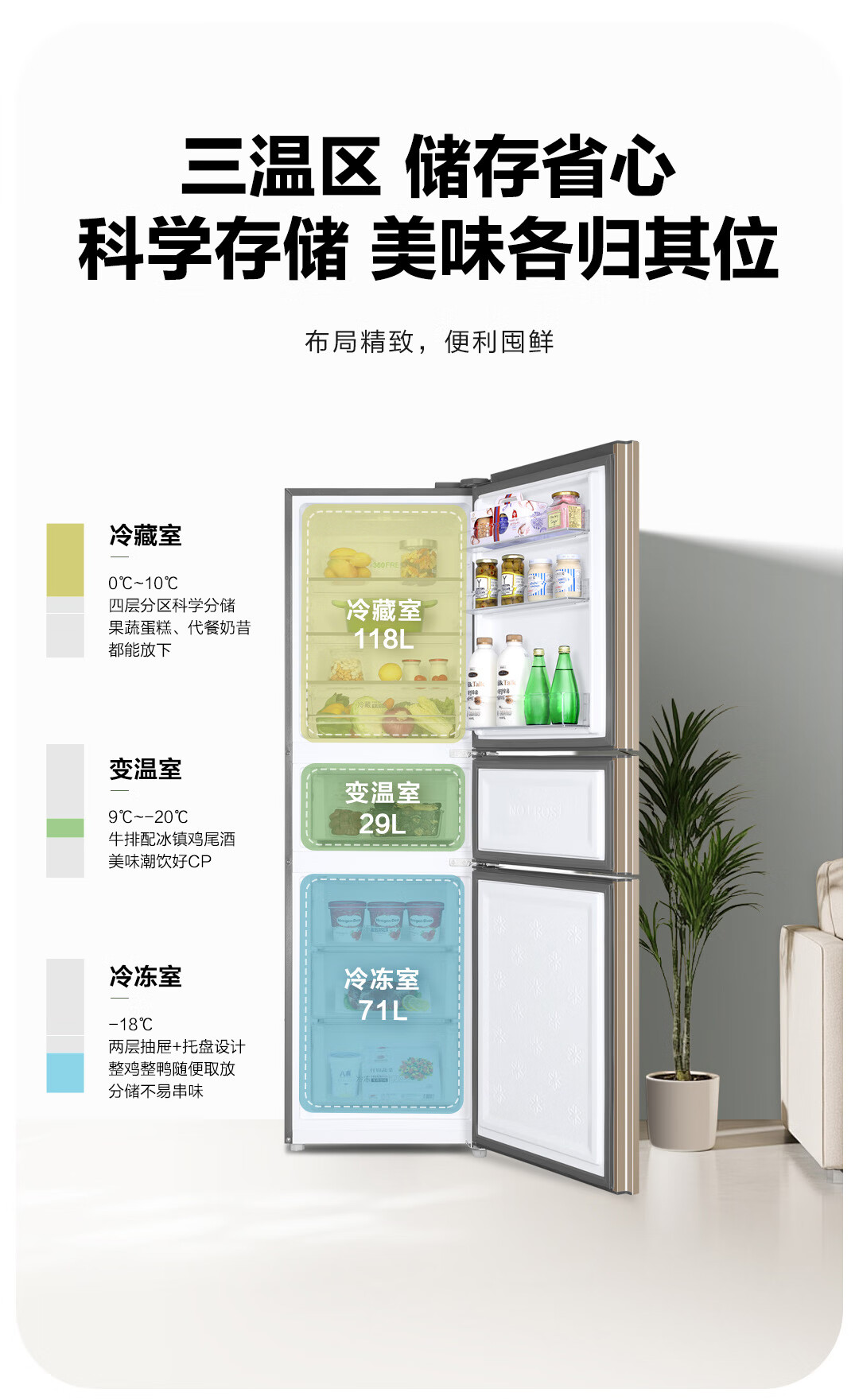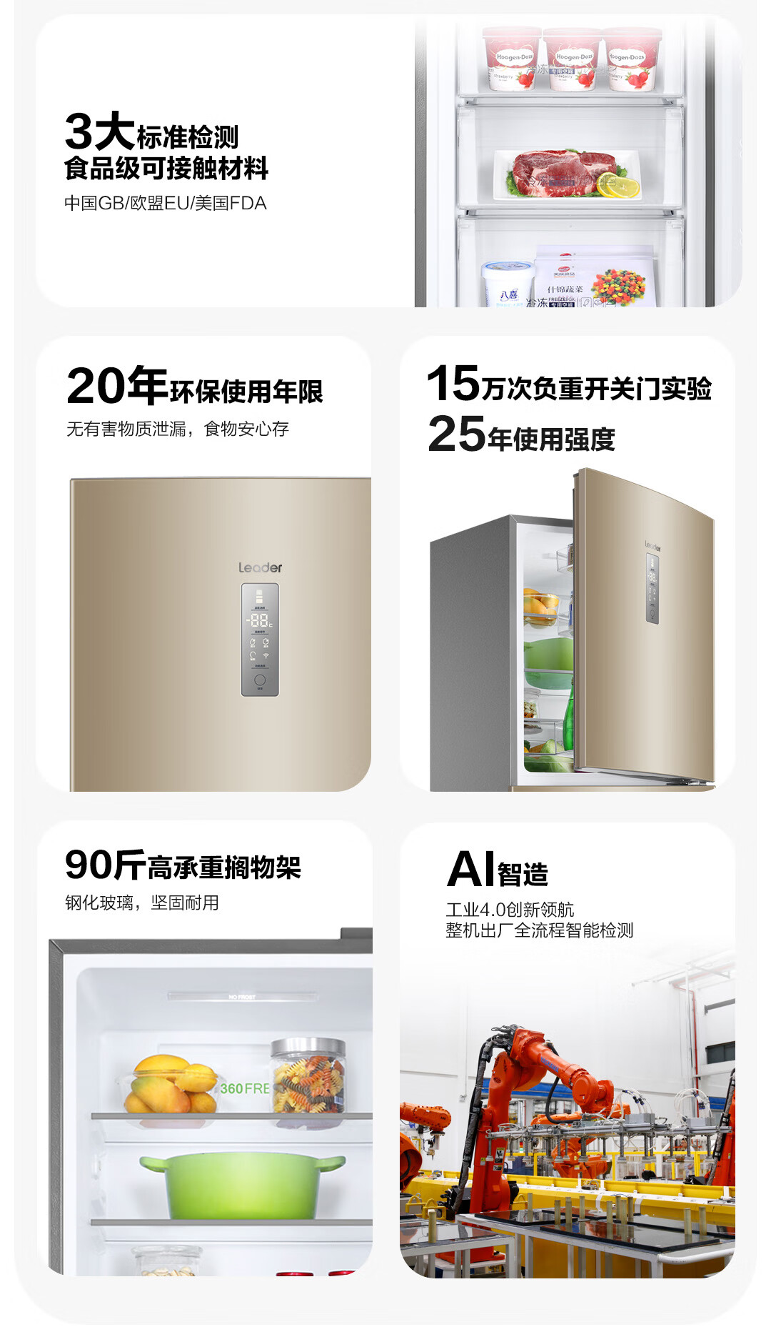 统帅(Leader)海尔冰箱出品 218升三门一级变频节能家用电冰箱 小型宿舍租房风冷无霜除菌 【国家补贴20%】