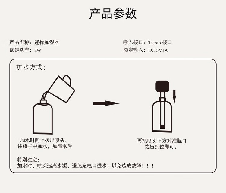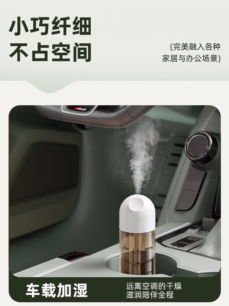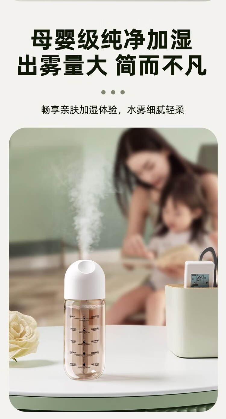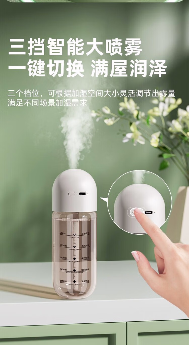 WCZ德国加湿器迷你卧室桌面家用小型办公室车载静音空气加湿净化孕妇婴儿可用空调房喷雾增湿 【充电款】食用级刻度水瓶加湿器 【旗舰版】银离子/断电保护/4根滤芯棉