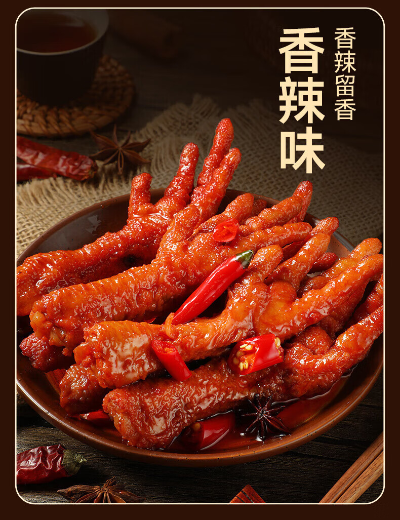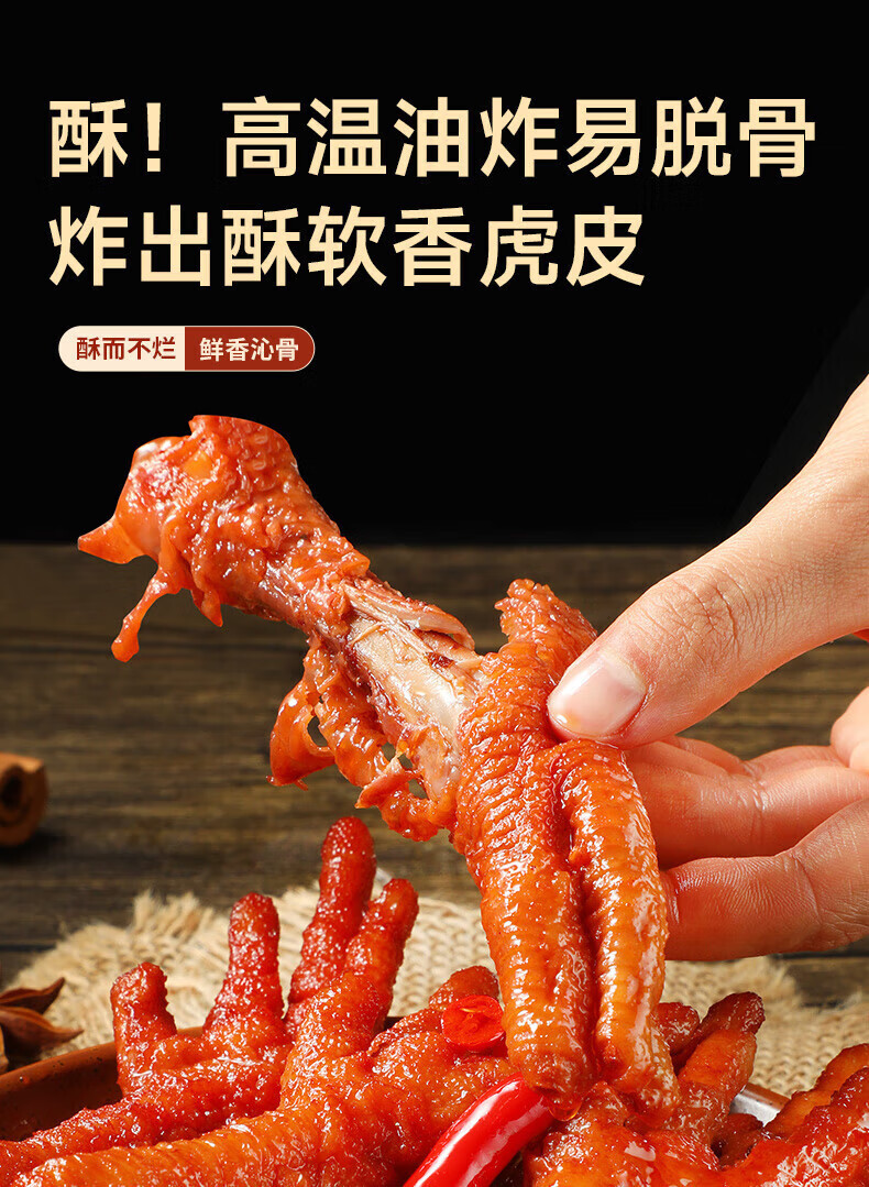 锋爷独立包装鸡脚筋无骨鸡爪筋即食解馋休闲零食追剧小吃 泡椒味去骨鸡脚脚 20个