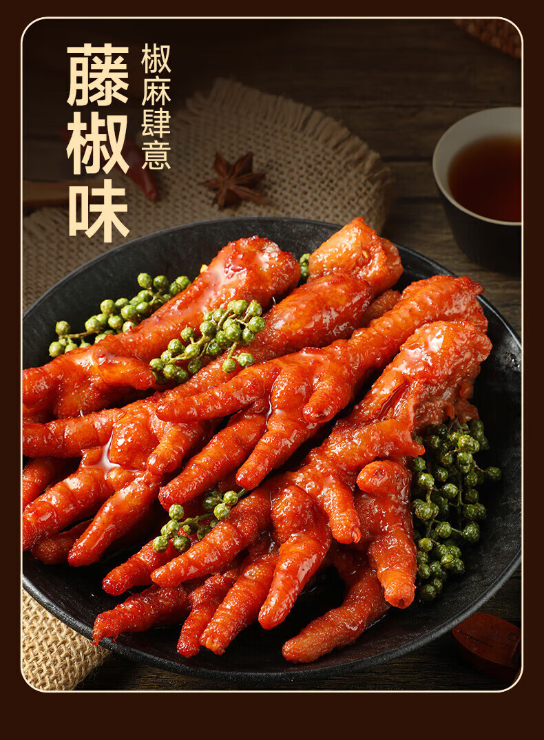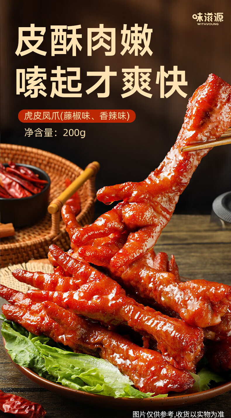 味滋源虎皮凤爪200g袋装 鸡爪鸡肉卤味零食特产小吃独立小包装下酒菜 藤椒味-200g*1袋
