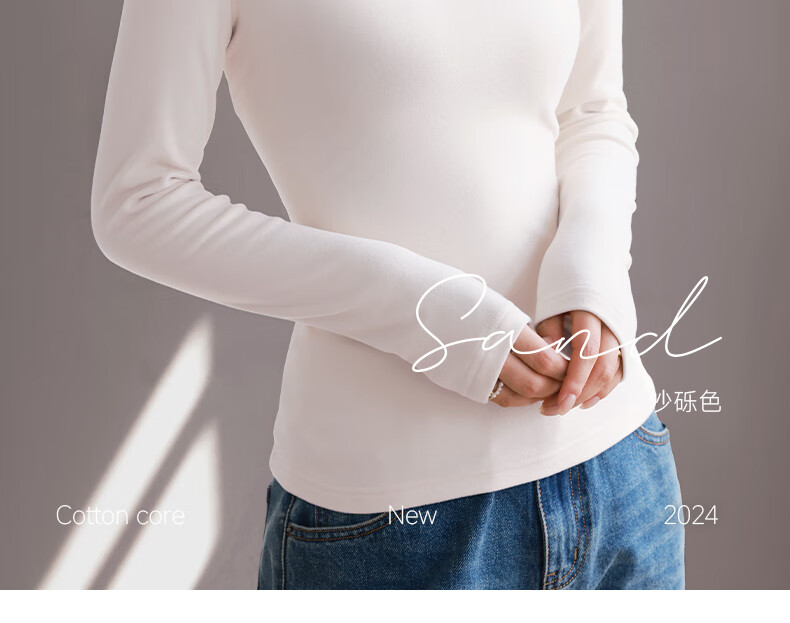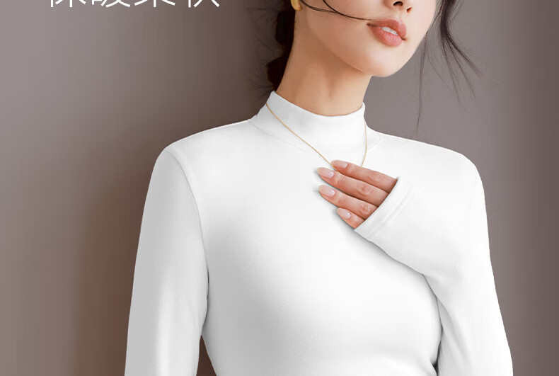 真维斯(Jeanswest)打底衫女装薄绒保暖长袖秋衣7a抗菌秋冬季新款内搭半高领上衣3GX 白#纯色 L
