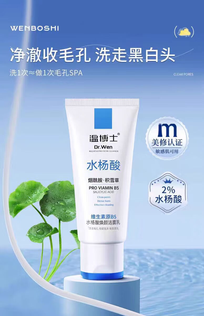 温博士B5水杨酸洗面奶男女深层清洁白净黑头收缩毛孔氨基酸温和控油面乳 两支【优惠装】