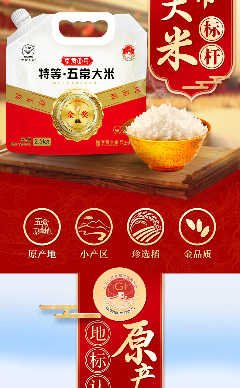 京贡1号2025年新米【新国标 特等五常大米】原粮稻花香2号大米5斤粳米