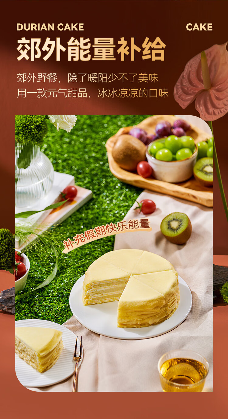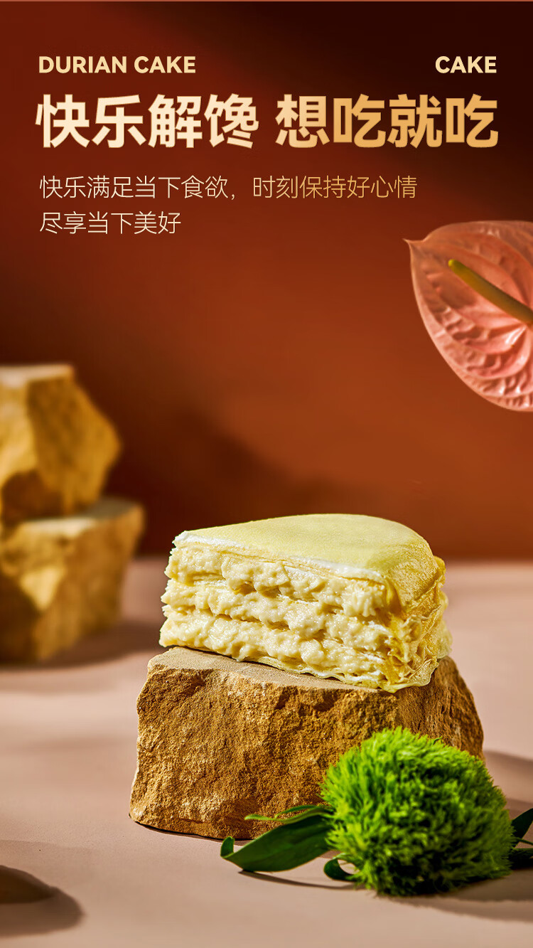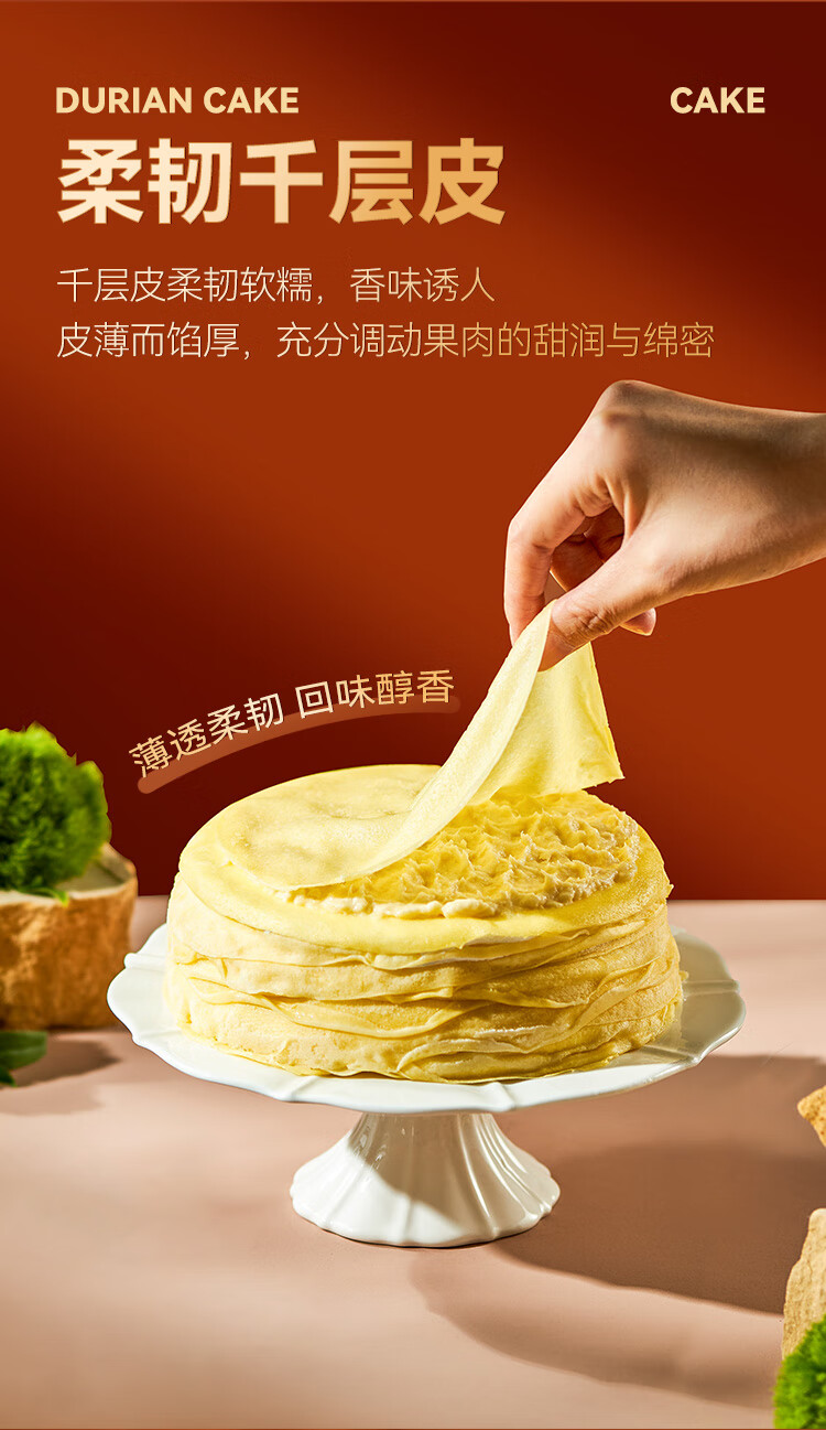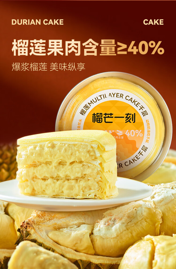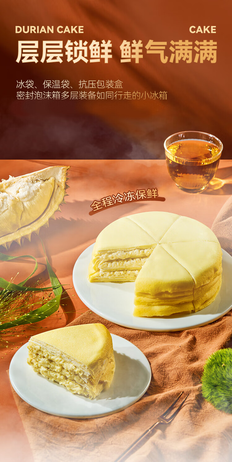 榴芒一刻 榴莲千层生日蛋糕金枕榴莲果肉动物奶油甜品点心 金枕榴莲千层蛋糕500g
