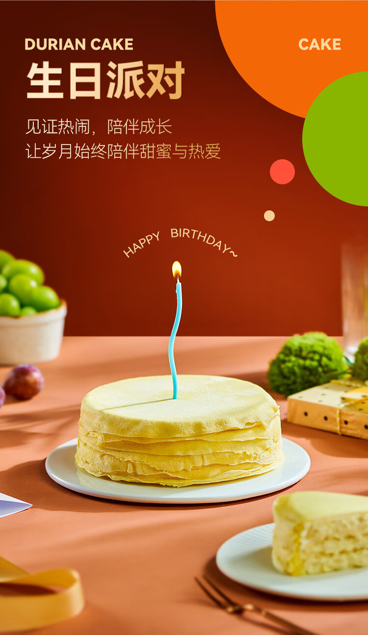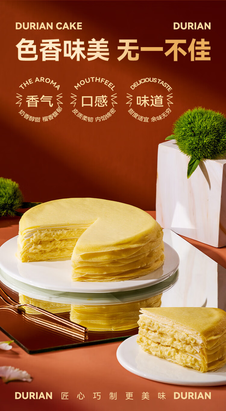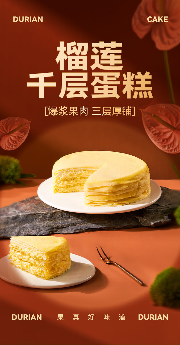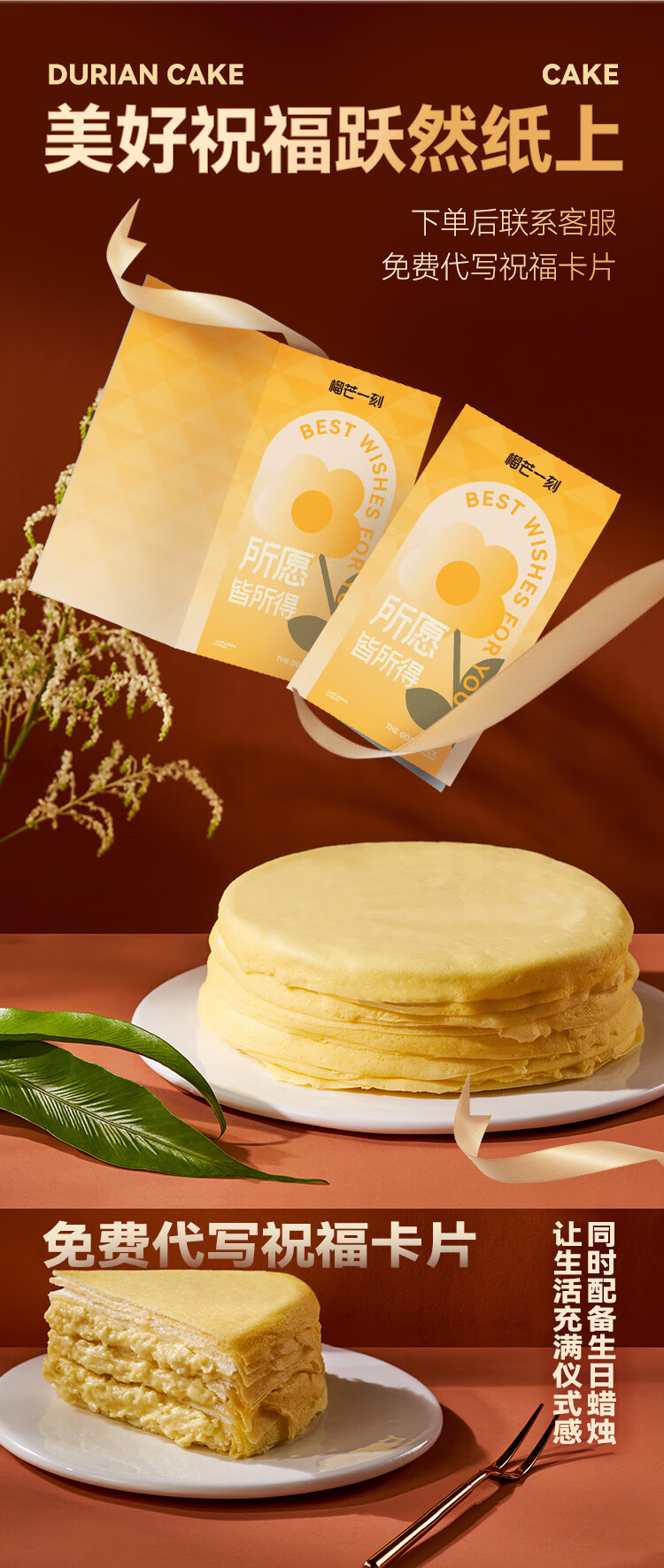 榴芒一刻 榴莲千层生日蛋糕金枕榴莲果肉动物奶油甜品点心 金枕榴莲千层蛋糕500g
