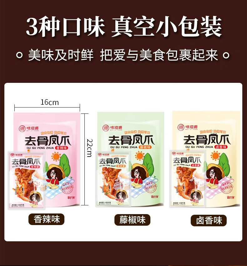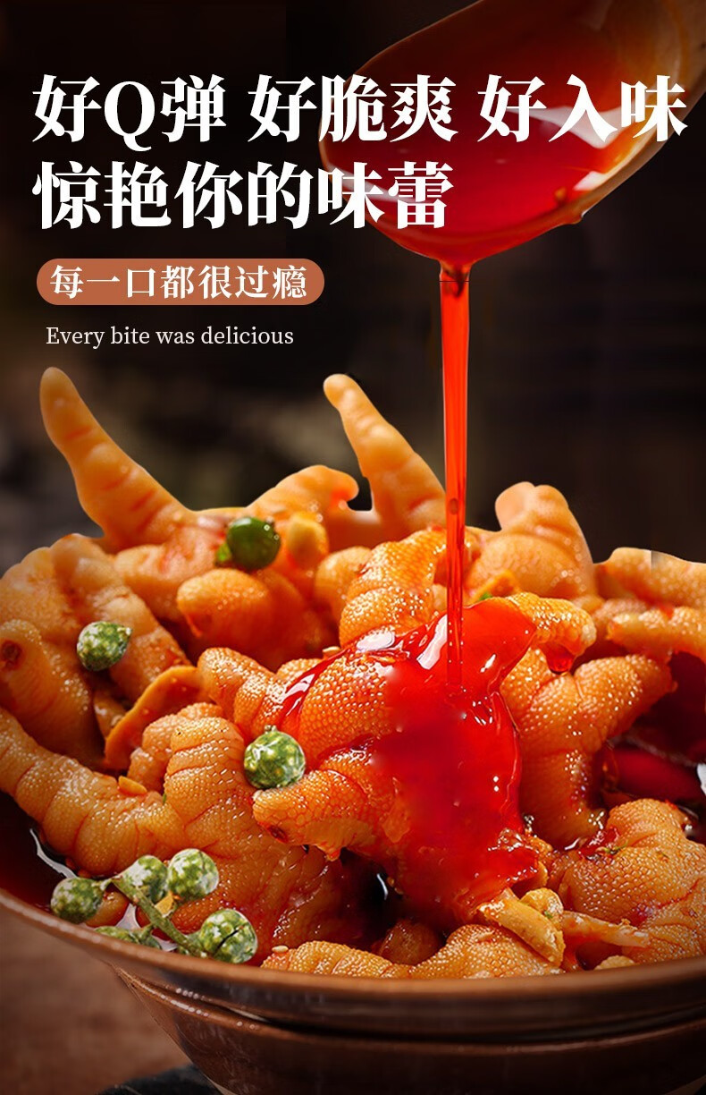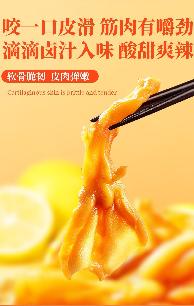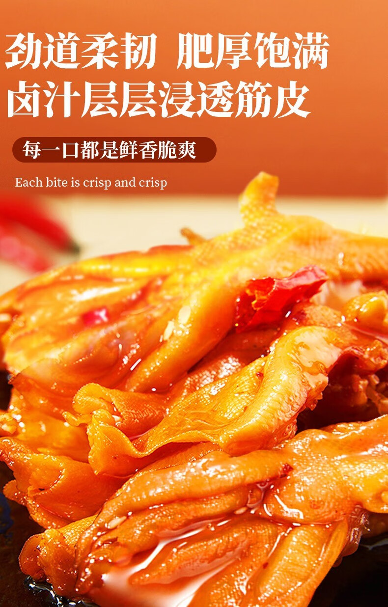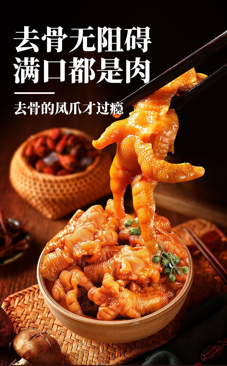 锋爷独立包装鸡脚筋无骨鸡爪筋即食解馋休闲零食追剧小吃 泡椒味去骨鸡脚脚 20个