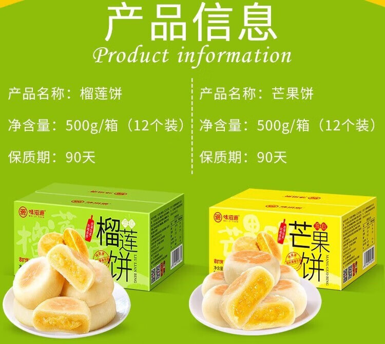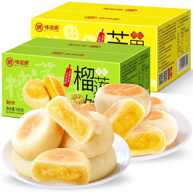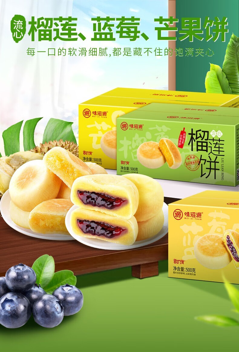 味滋源营养早餐代餐面包零食 休闲小吃 懒人速食糕点特产小吃 榴莲饼500g