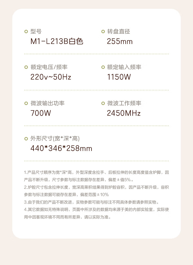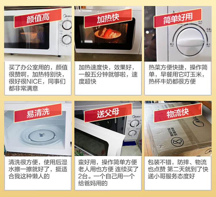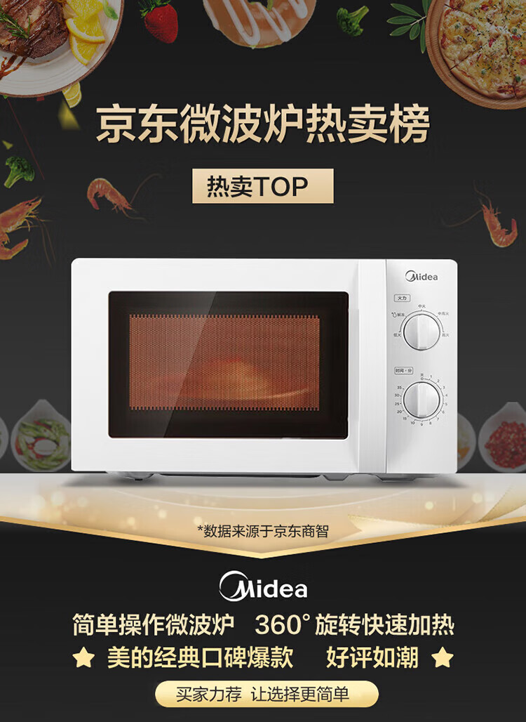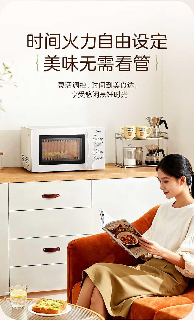 美的(Midea)微波炉 20升小型家用 360度转盘加热 易清洁内胆 旋钮操控高温杀菌 M1-L213B 经典款