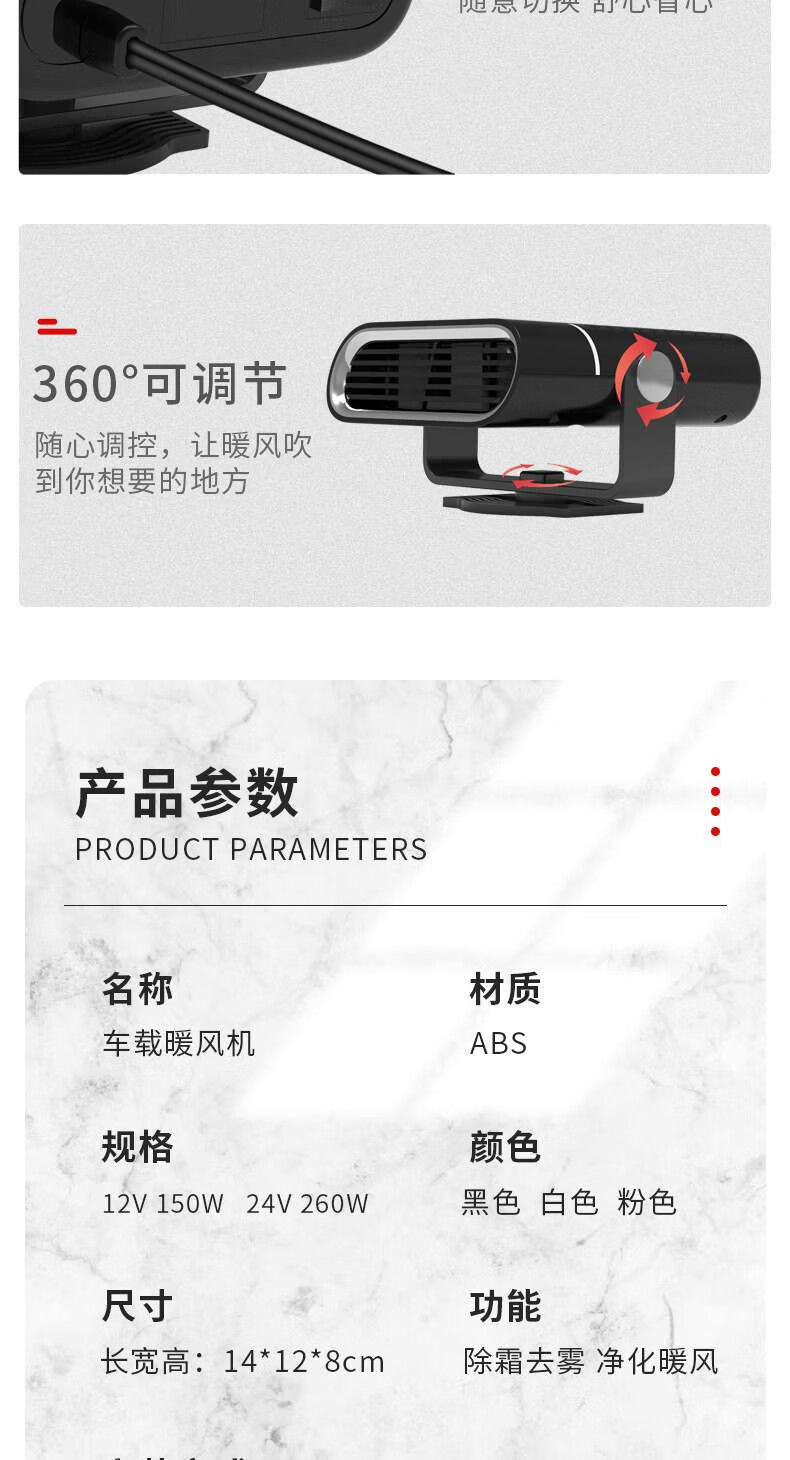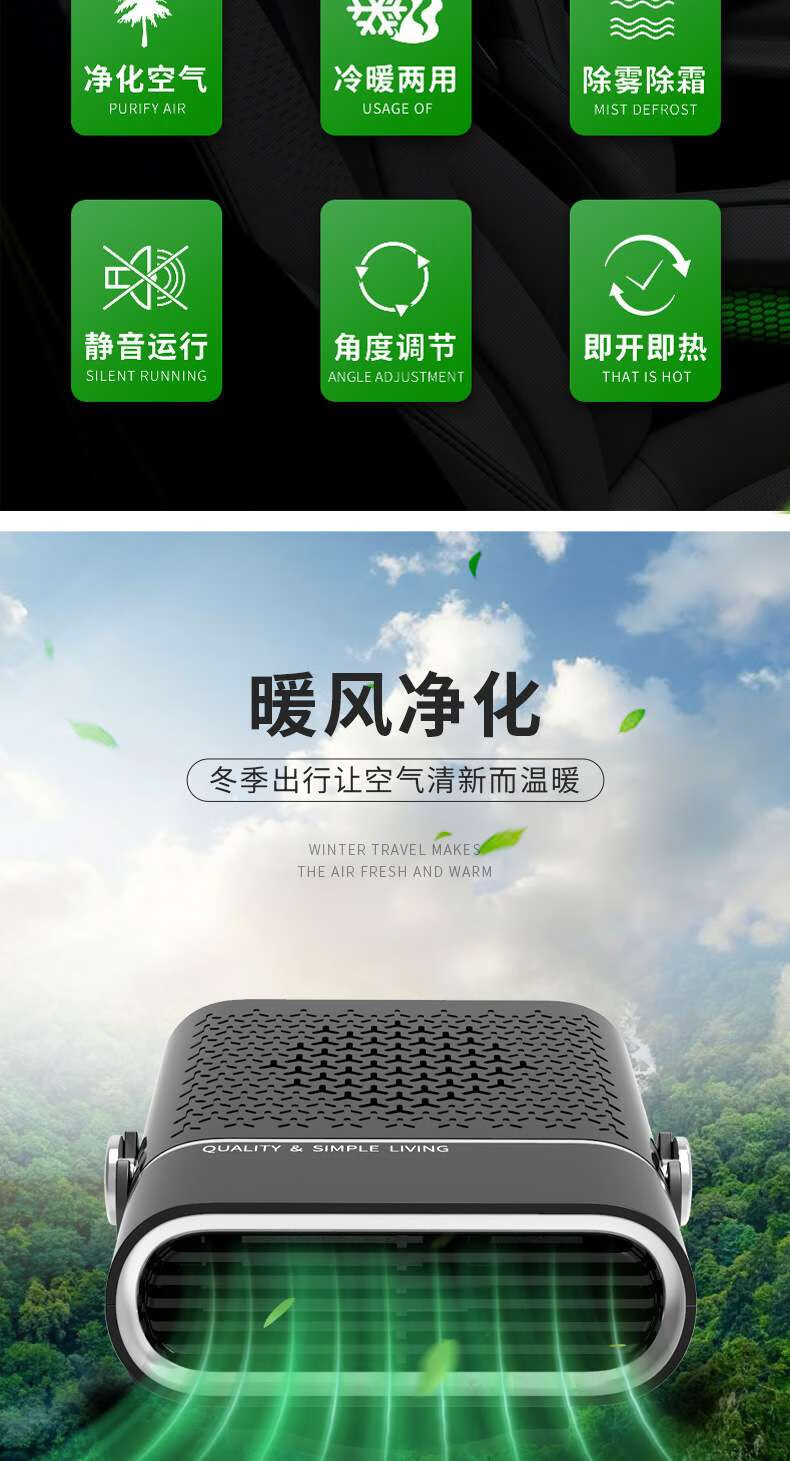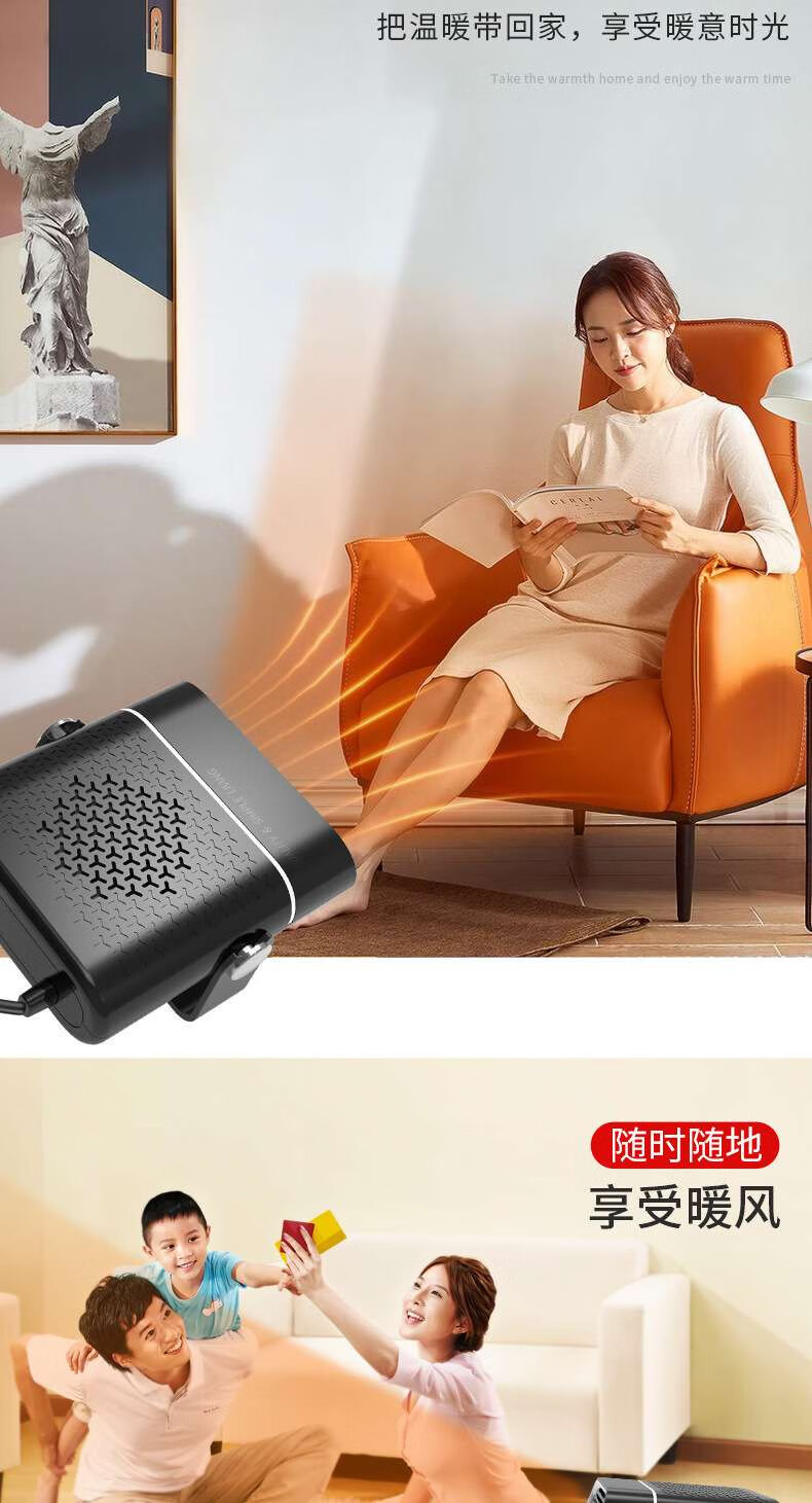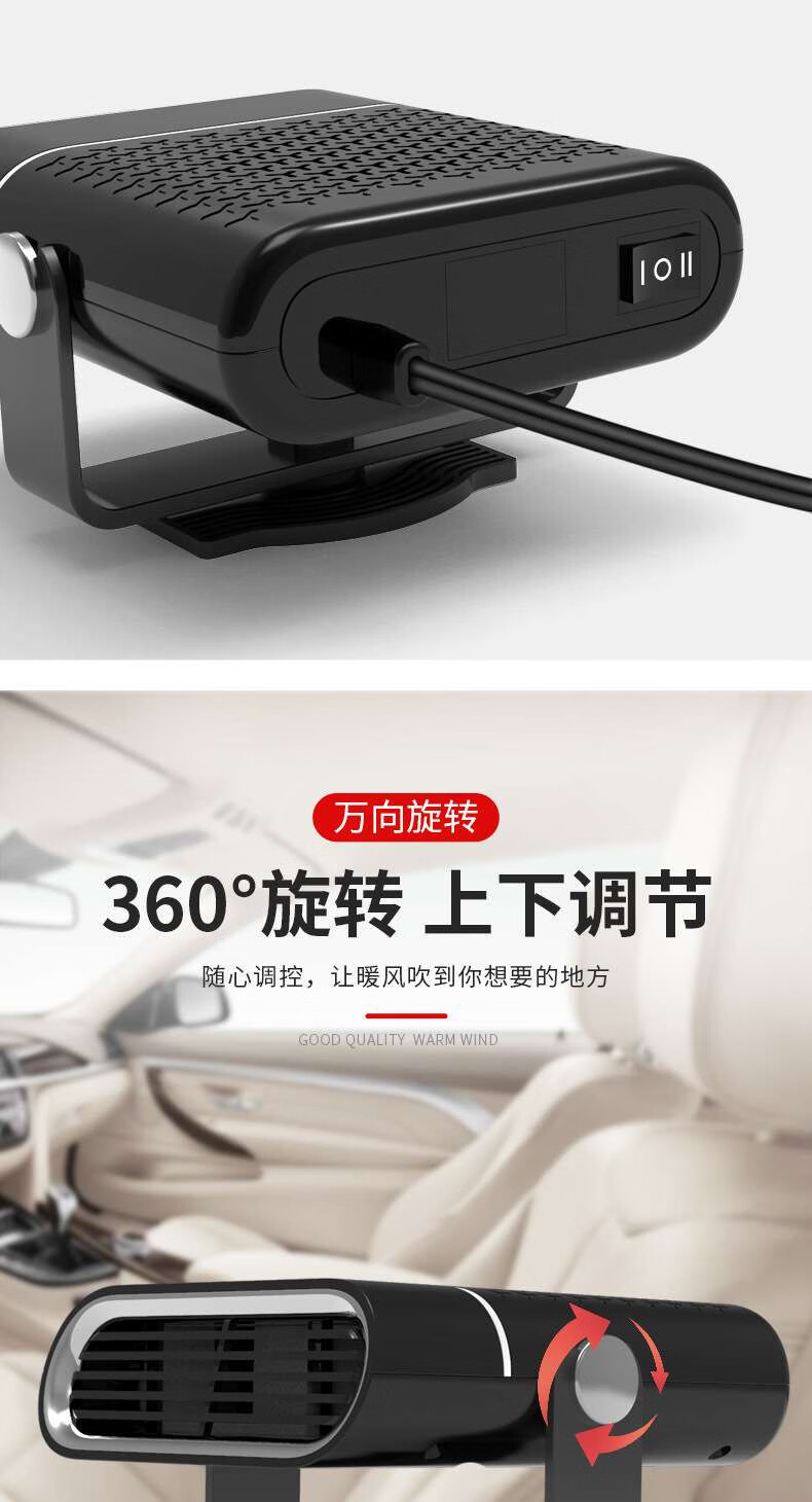 桐汝壁车载空调冷暖两用车载暖风机usb充电式车内12v24三轮车制热除雾冬 银边白色12V