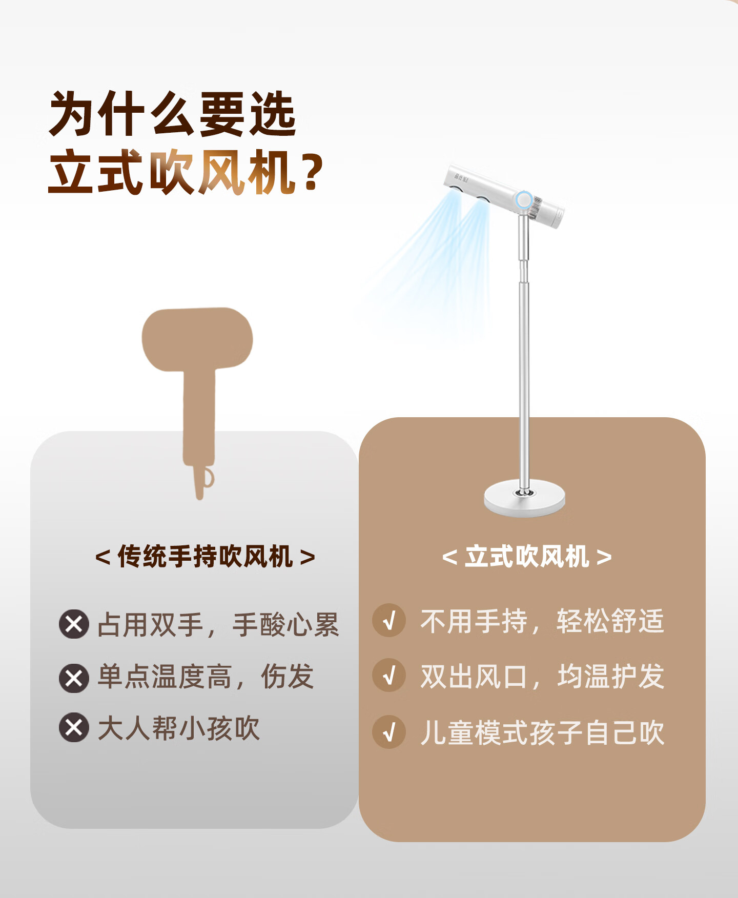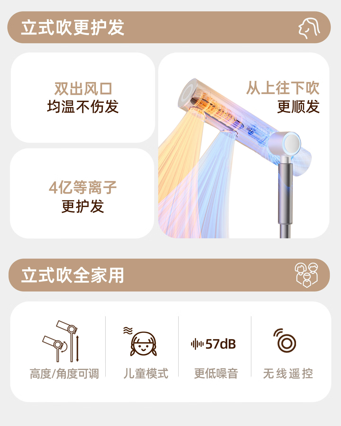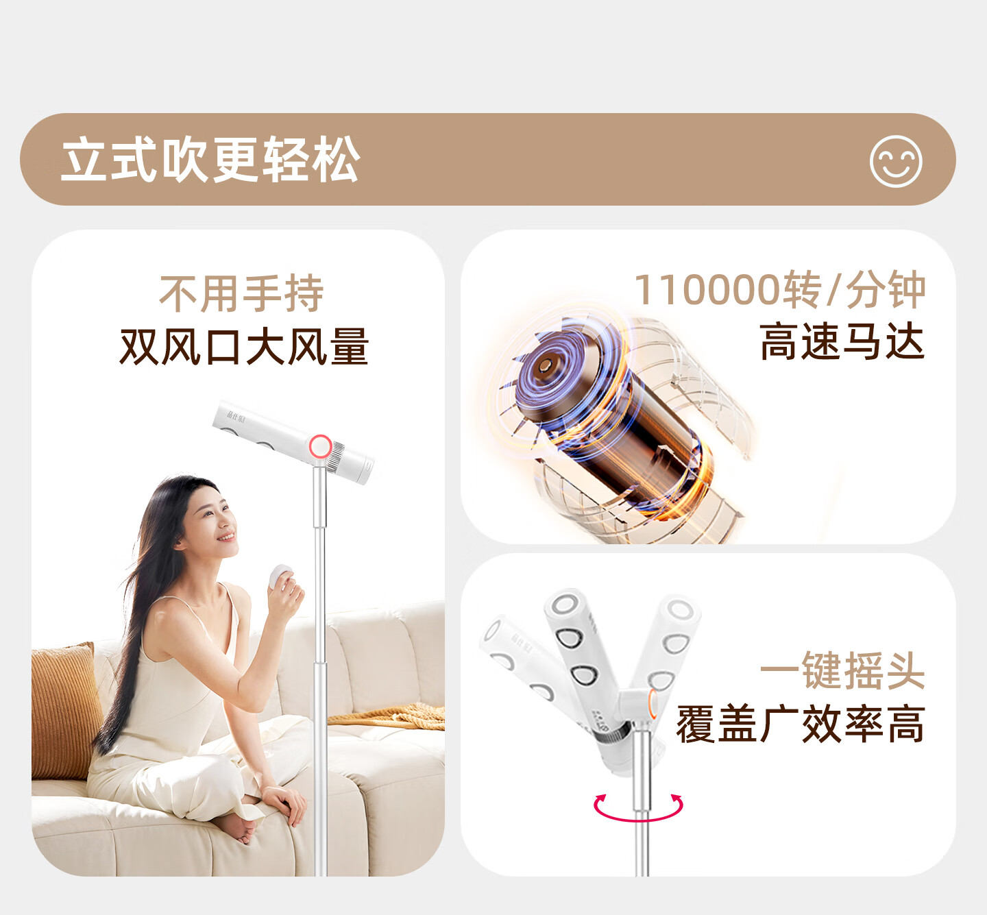 品仕乐立式吹风机新品懒人儿童护发电吹风落地免手持家用风筒 新品-皓月白(高速低噪摇头版)