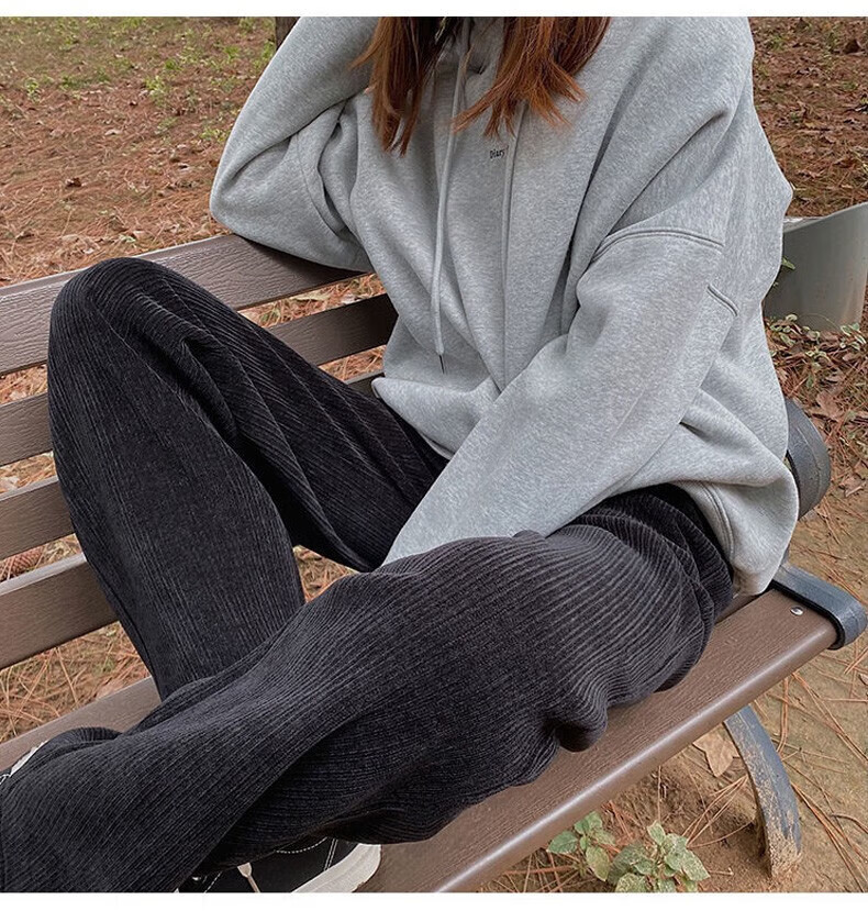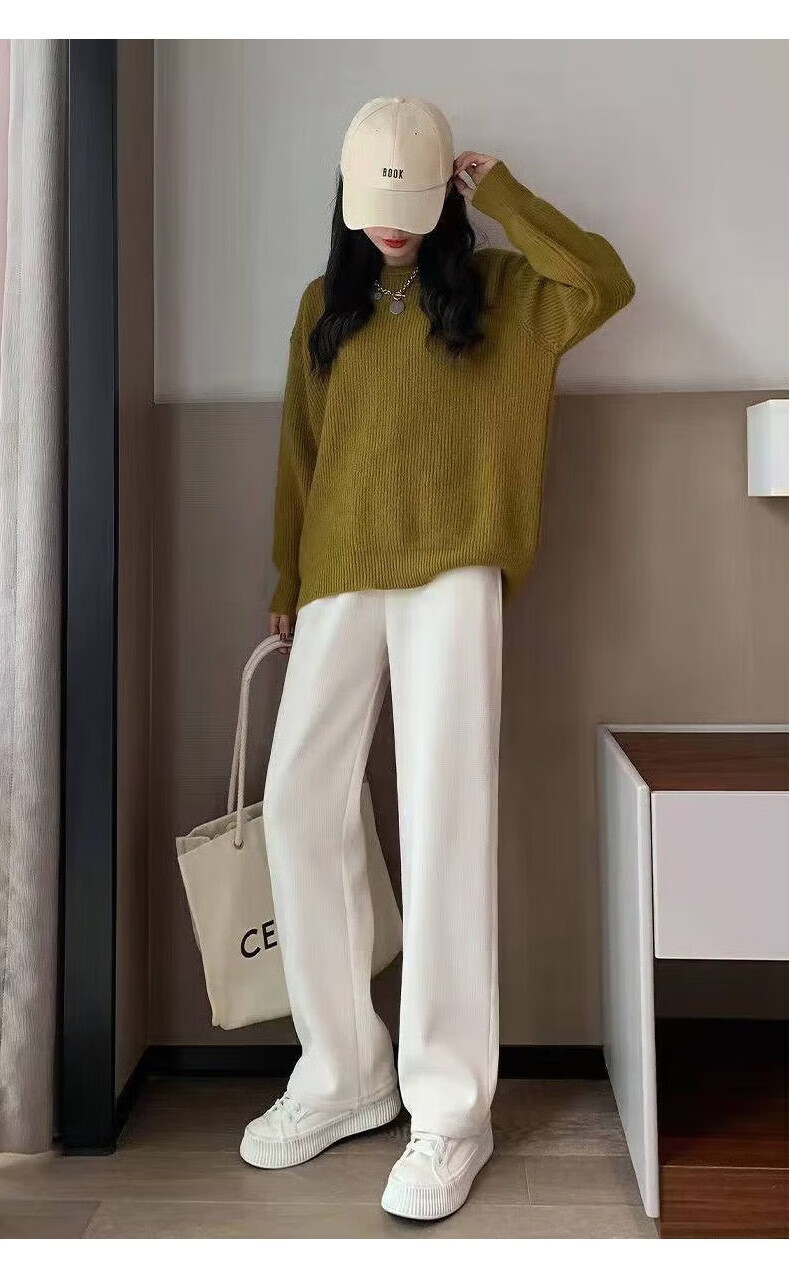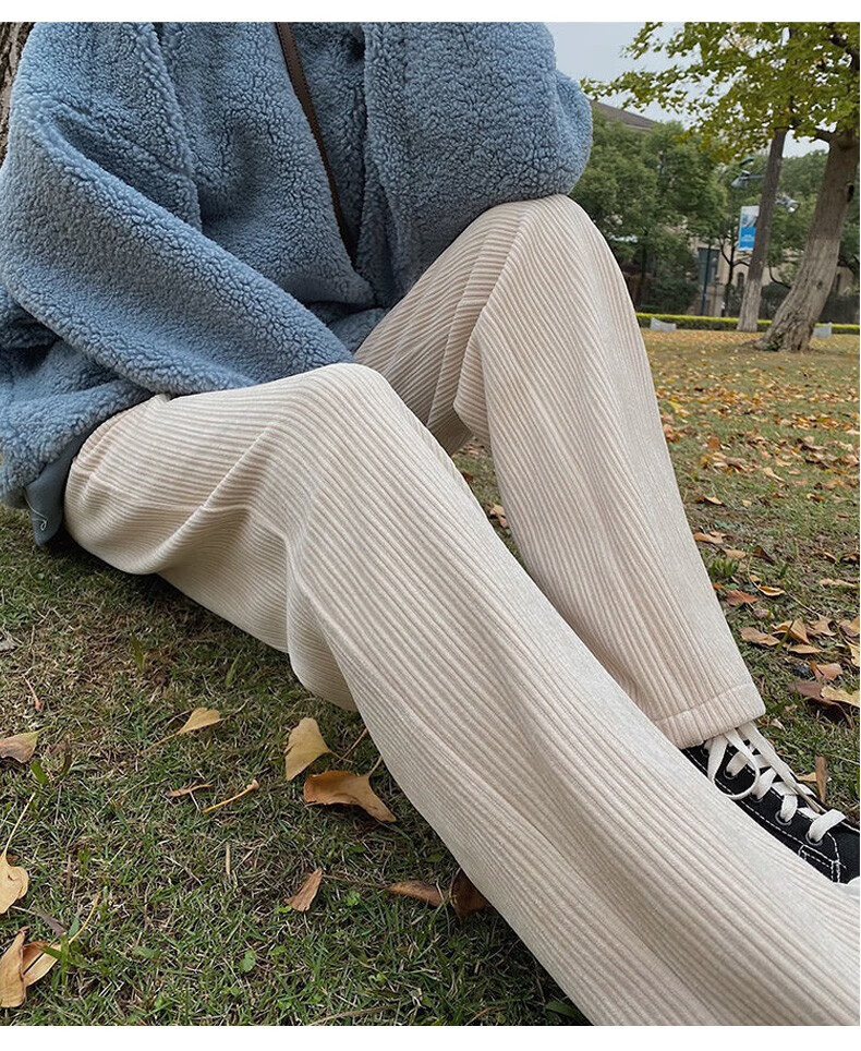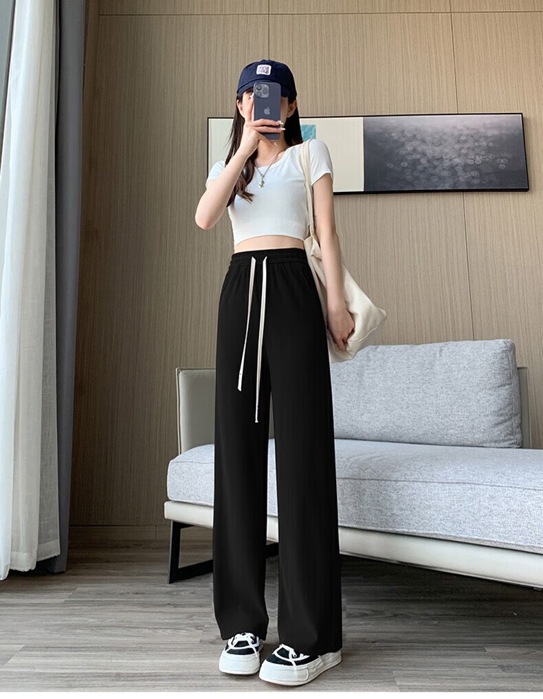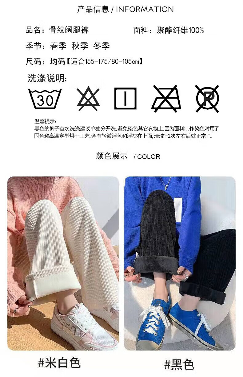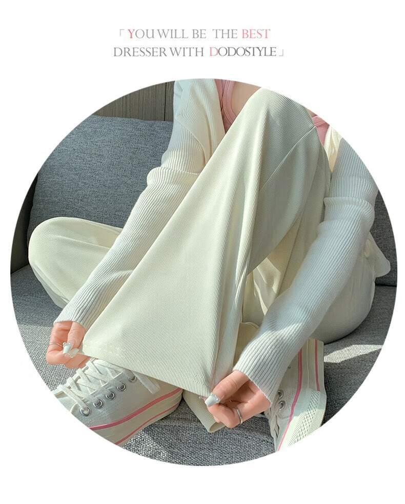 诗莉奥(SHILIAO)长裤骨纹阔腿家居裤气质高腰抽绳百搭显瘦百褶皱条纹垂感 春秋基础款-米白色 均码 【适合高155-175/臀75-100】
