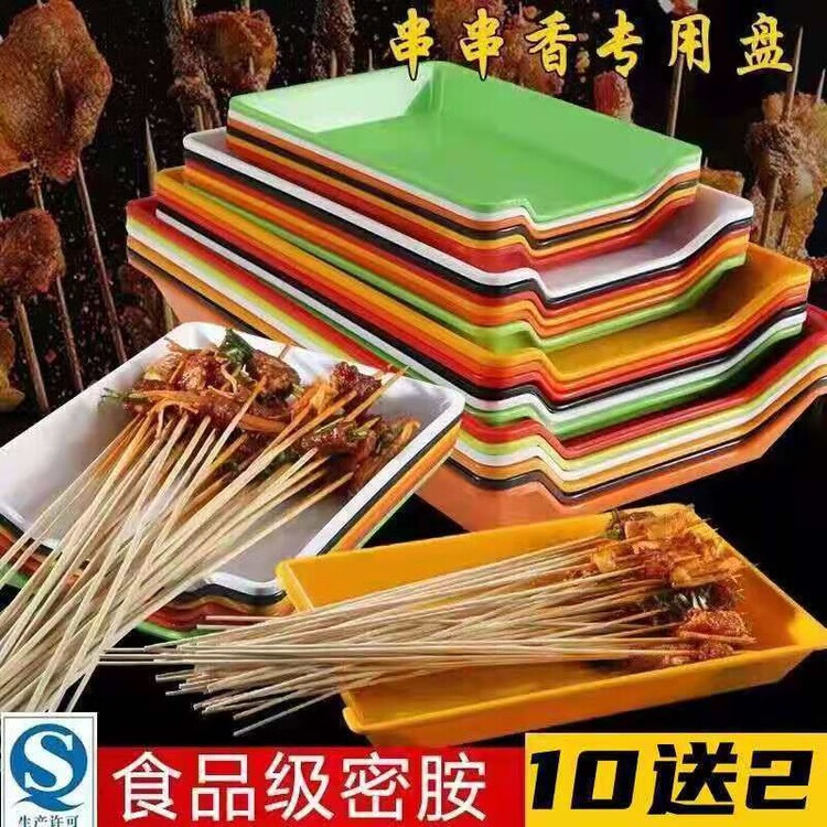 DEATKN串串盘子烧烤网红塑料盘耐摔餐具串串香火锅店用自助选菜托盘商用 长24x17.6x3.3白色买十送二