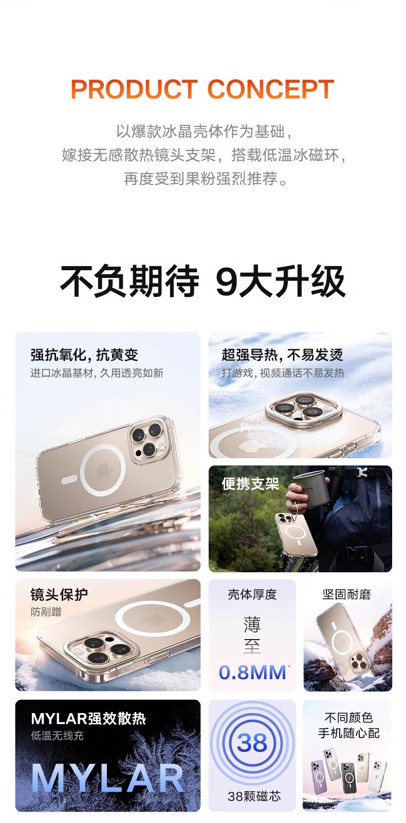 图拉斯支点壳【新款散热磁吸丨久用不发黄】 适用苹果16promax手机壳iphone16promax透明超薄支架防摔
