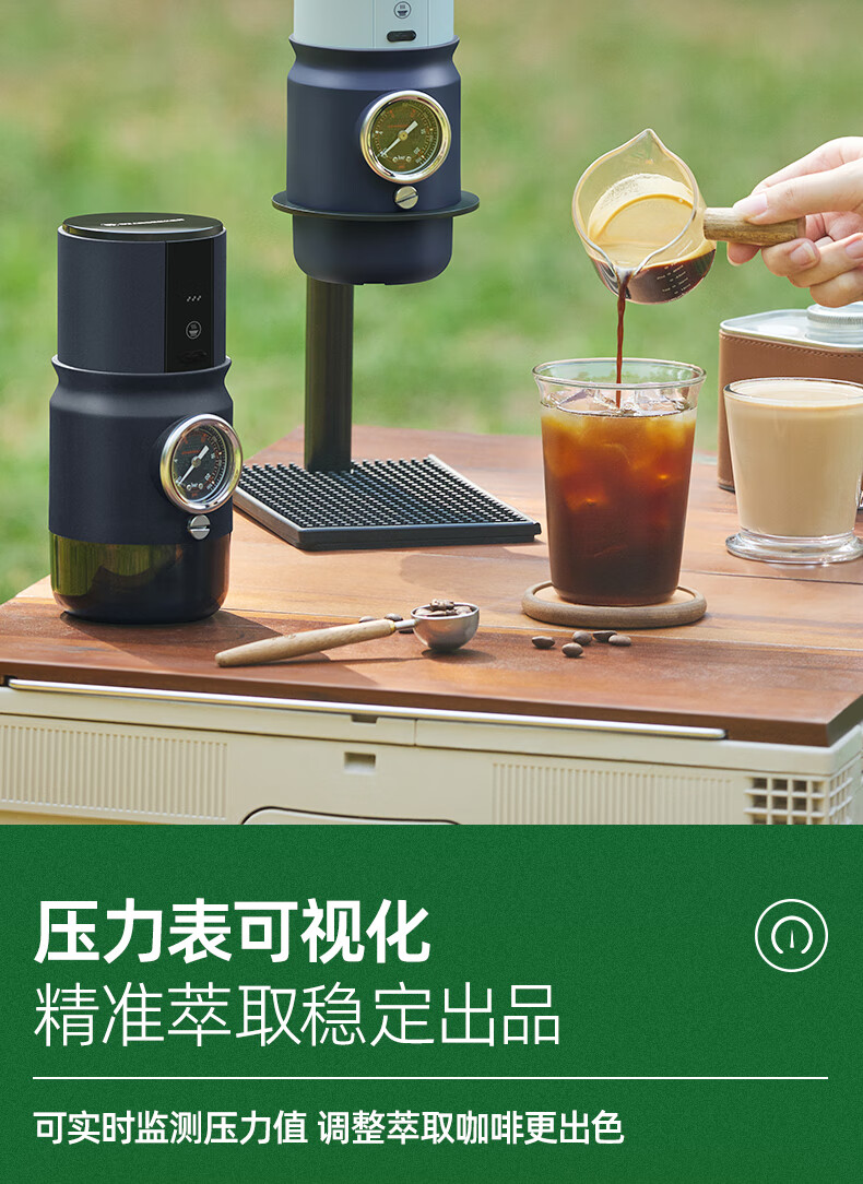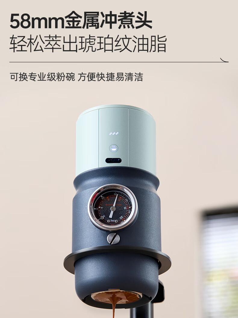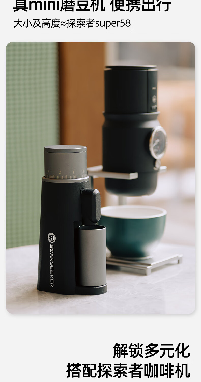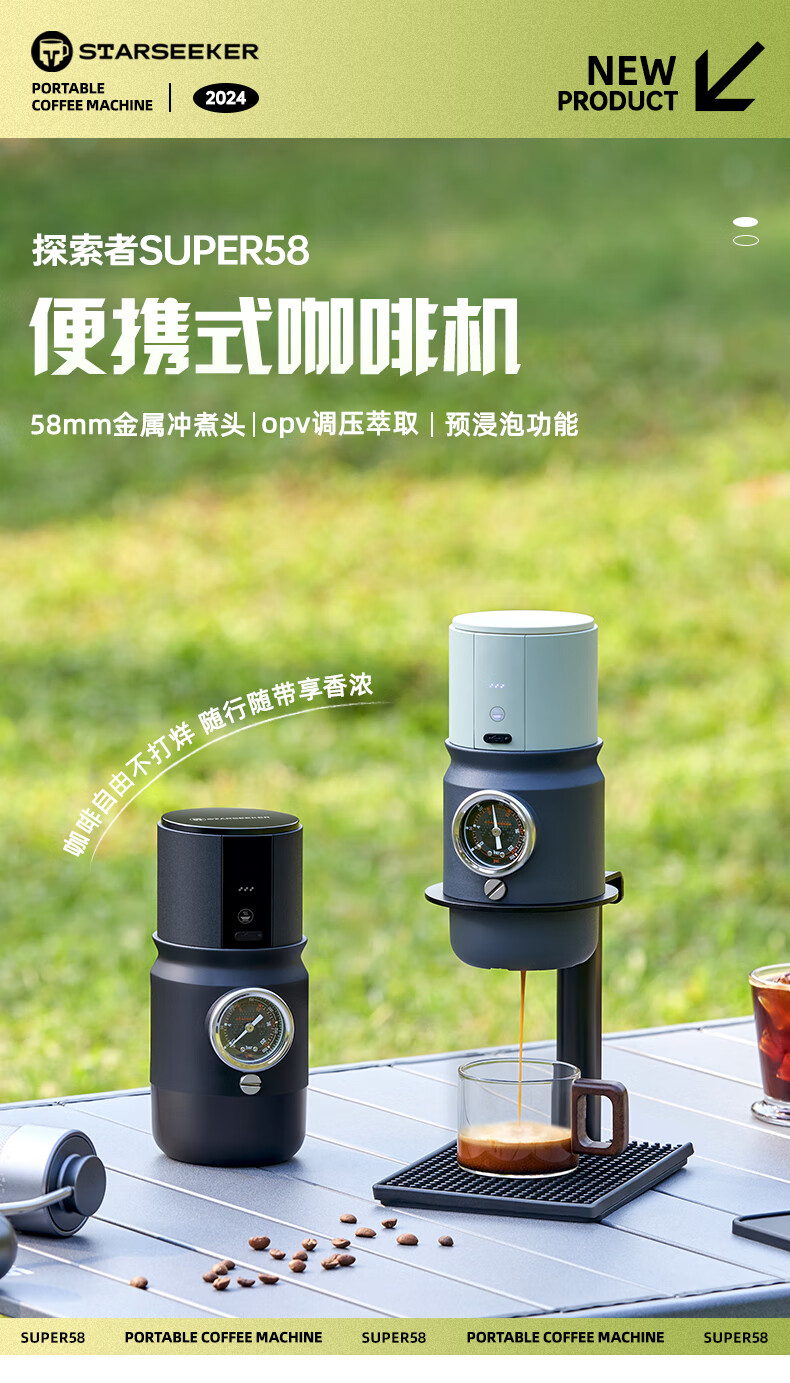 STARSEEKER探索者Super58便携式咖啡机家用小型意式浓缩半自动咖啡机可调压力58MM萃取办公室户外露营 【便携式专业咖啡机】黑色