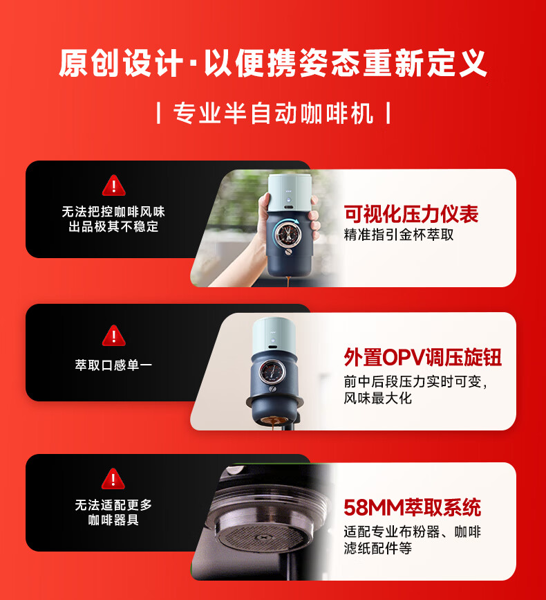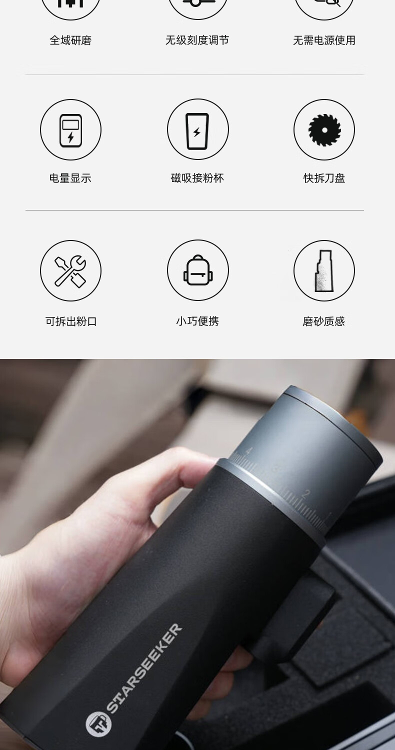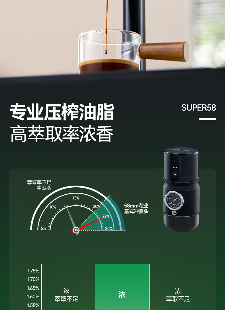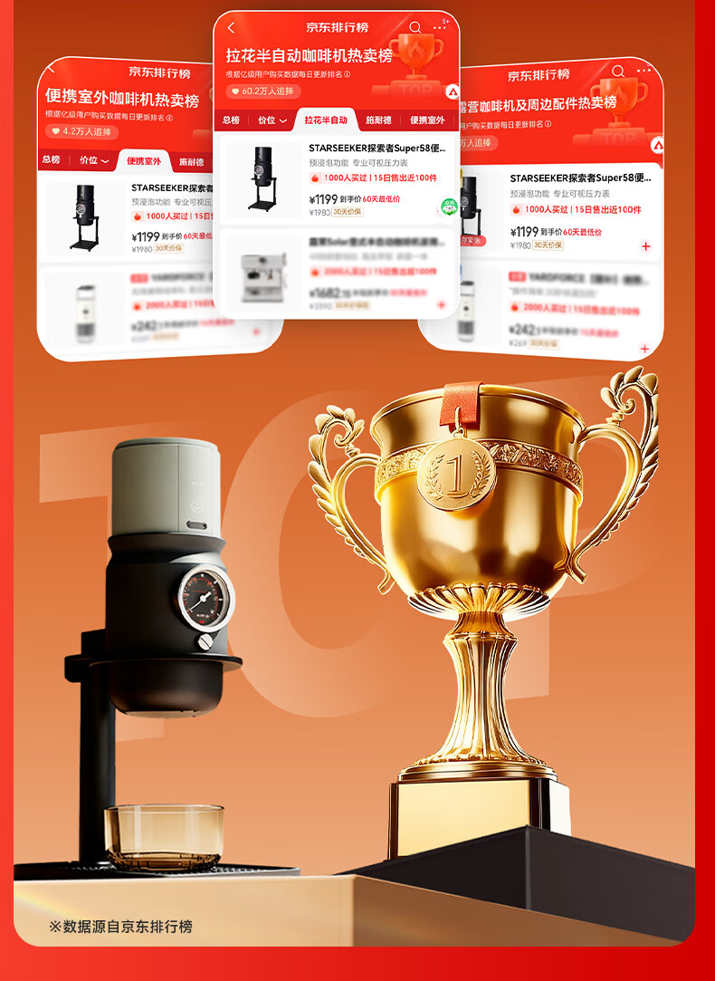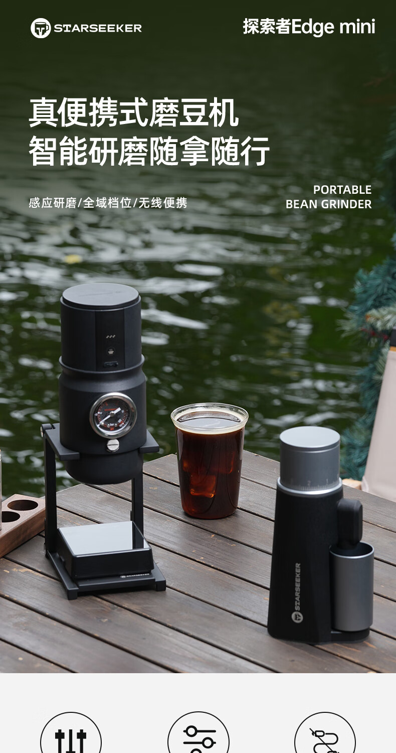 STARSEEKER探索者Super58便携式咖啡机家用小型意式浓缩半自动咖啡机可调压力58MM萃取办公室户外露营 【便携式专业咖啡机】黑色