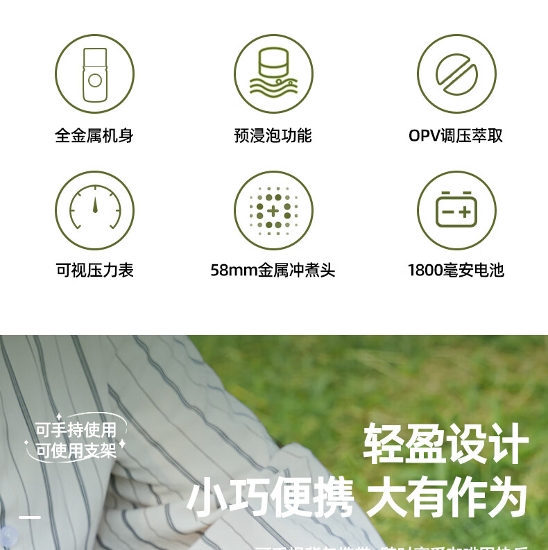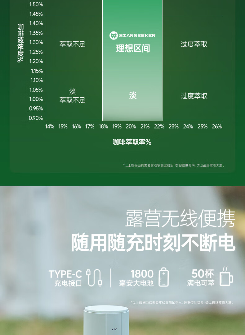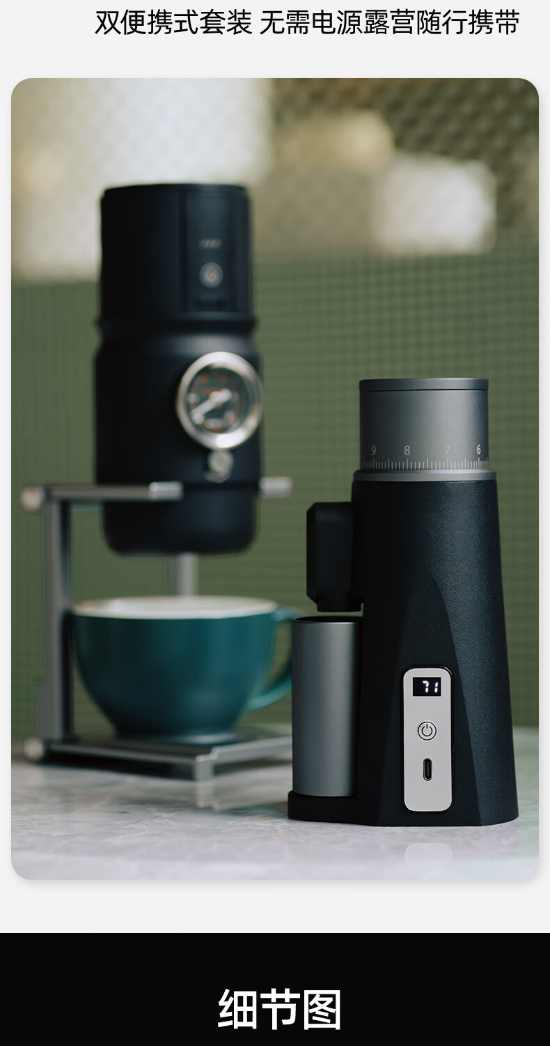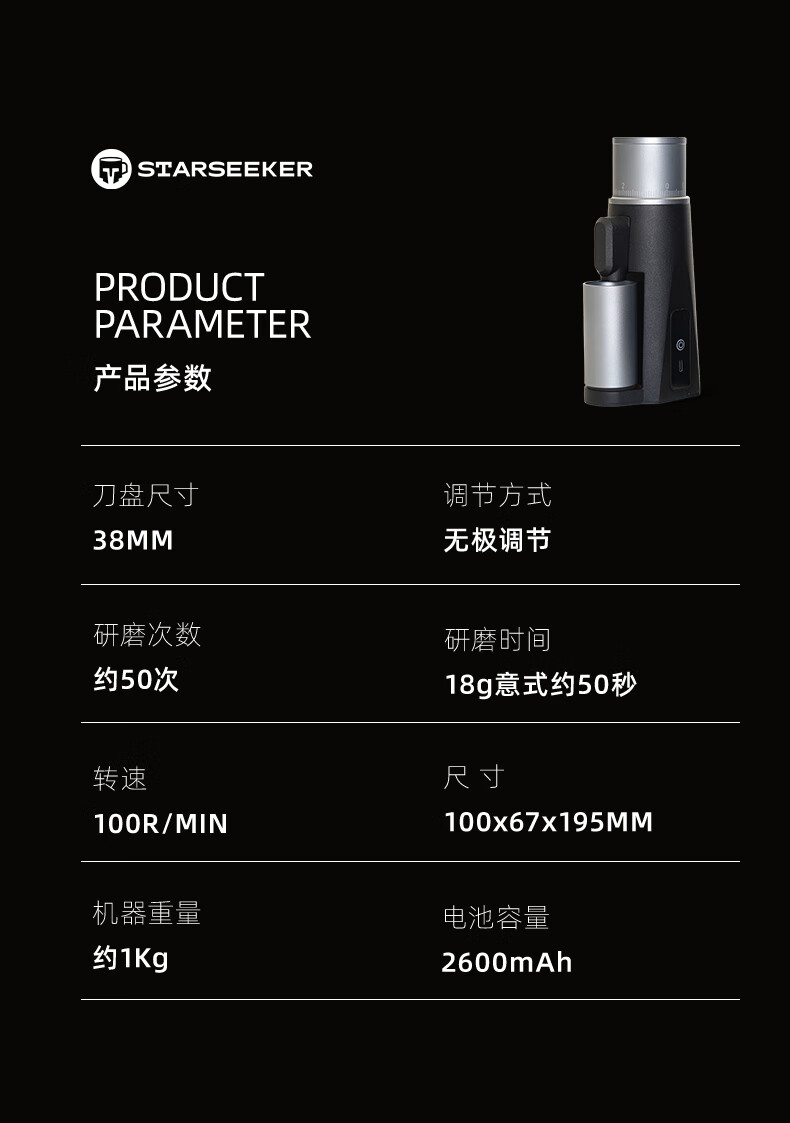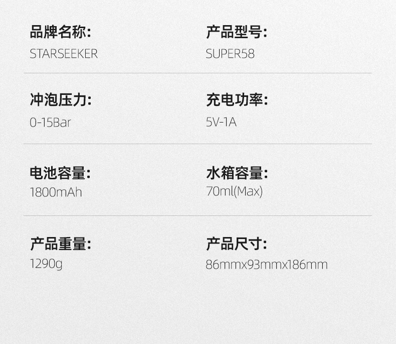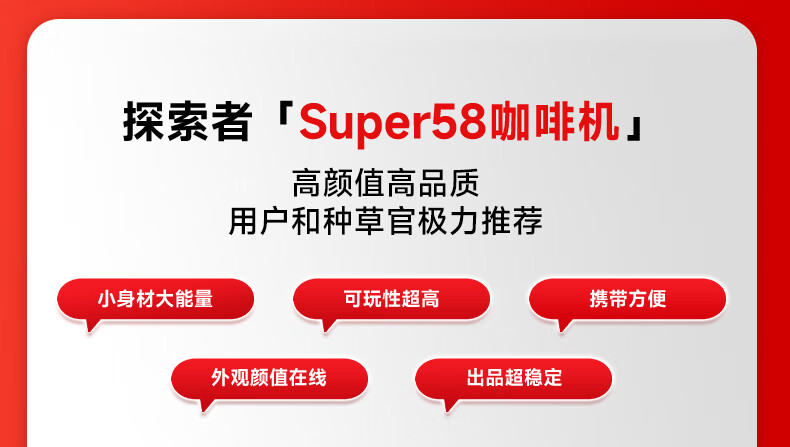 STARSEEKER探索者Super58便携式咖啡机家用小型意式浓缩半自动咖啡机可调压力58MM萃取办公室户外露营 【便携式专业咖啡机】黑色