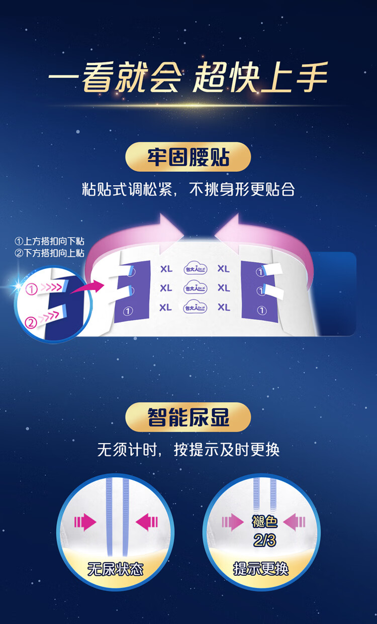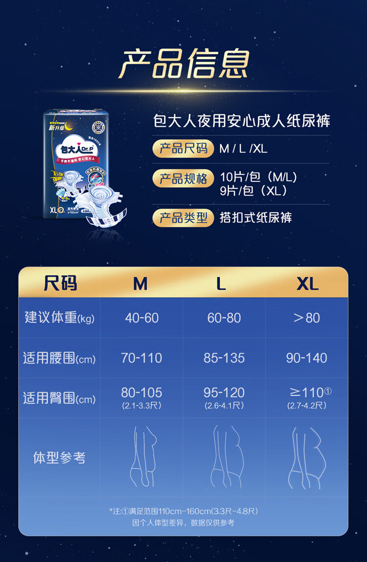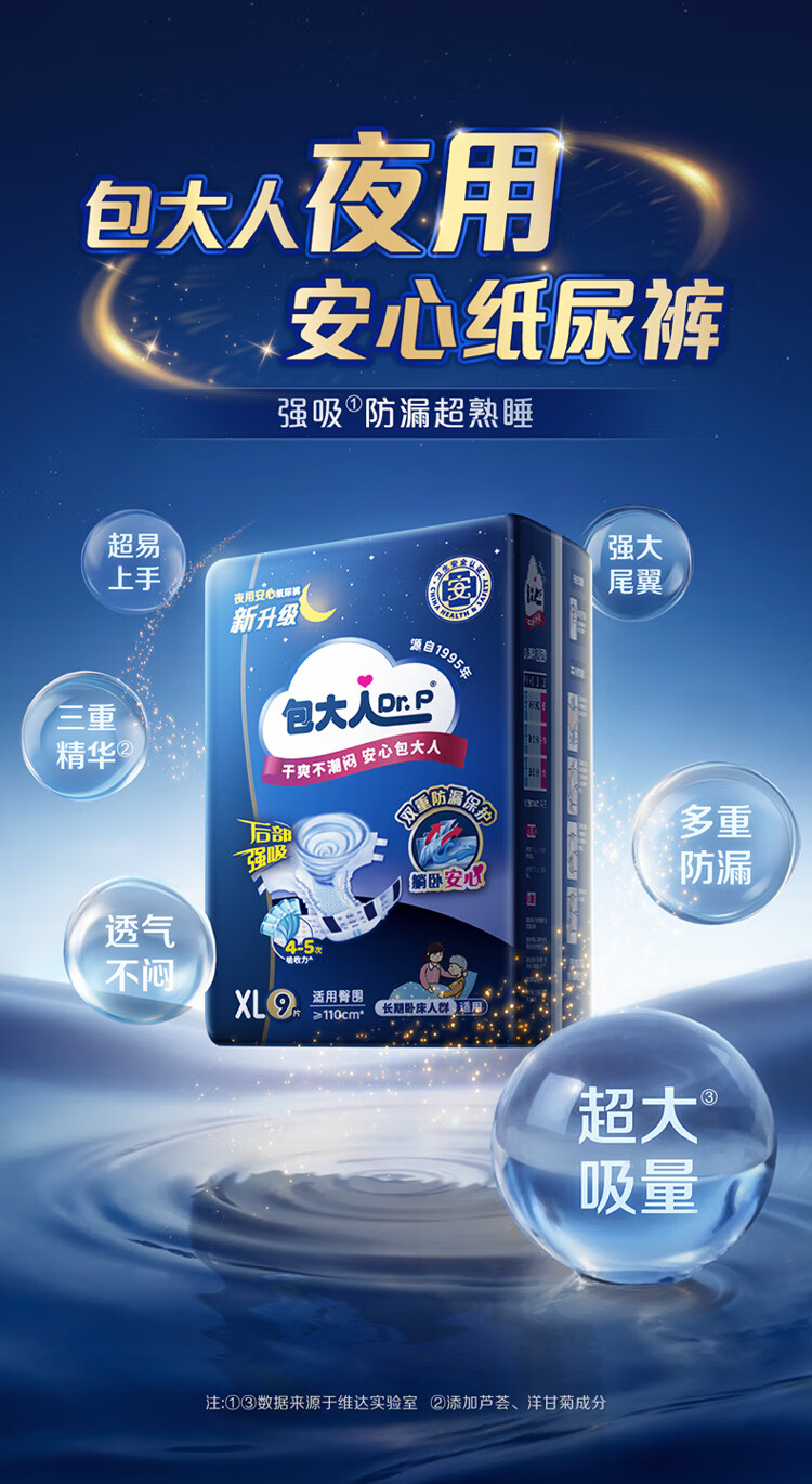 包大人(Dr.P)夜用型成人纸尿裤XL54片(腰围90-140cm)搭扣式老年人产妇尿不湿