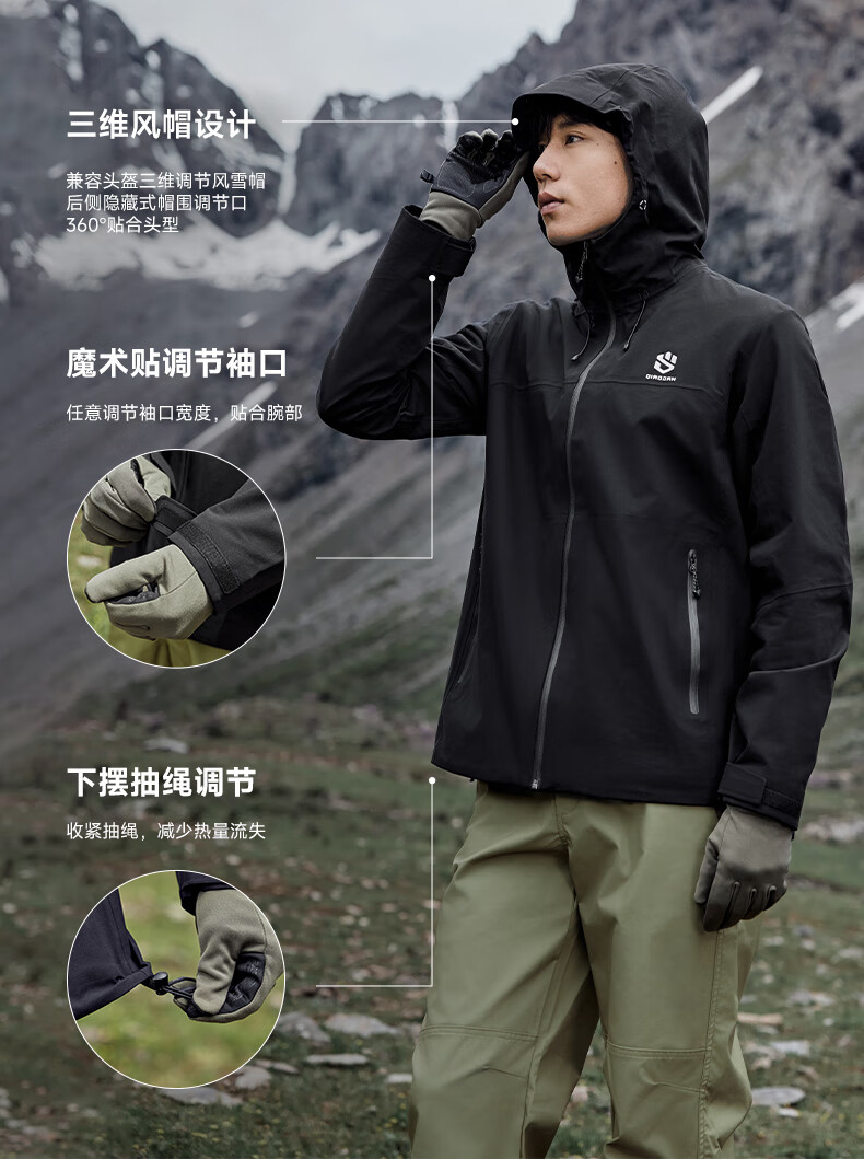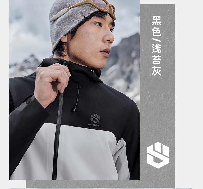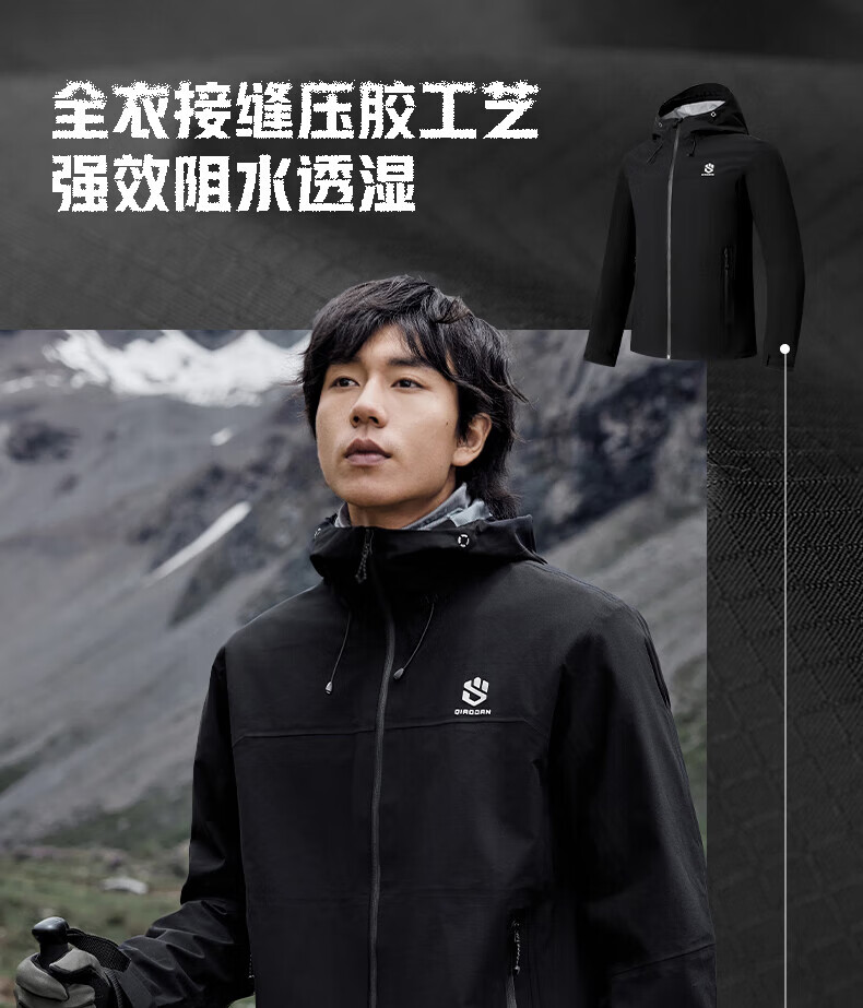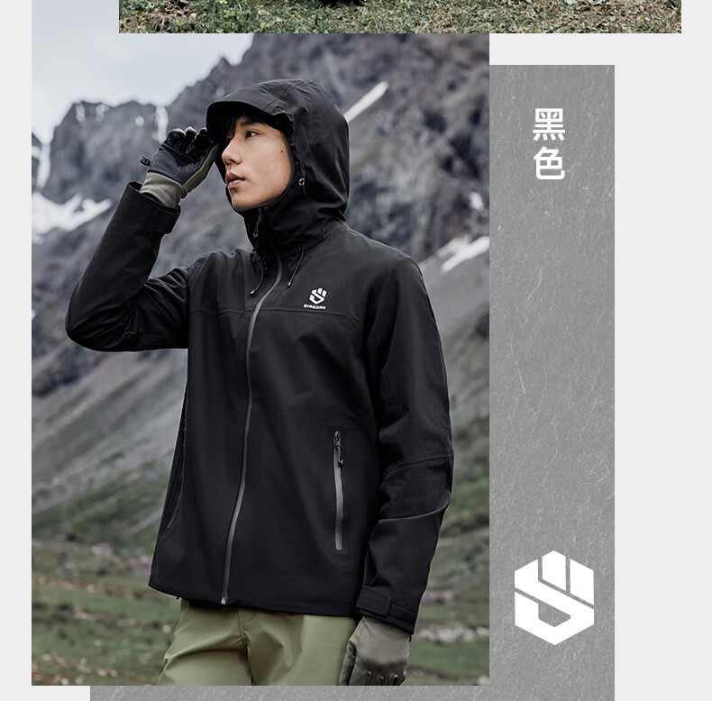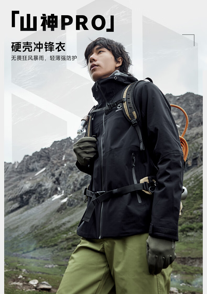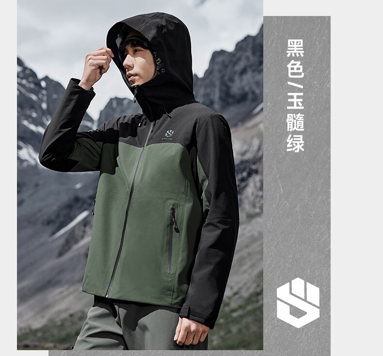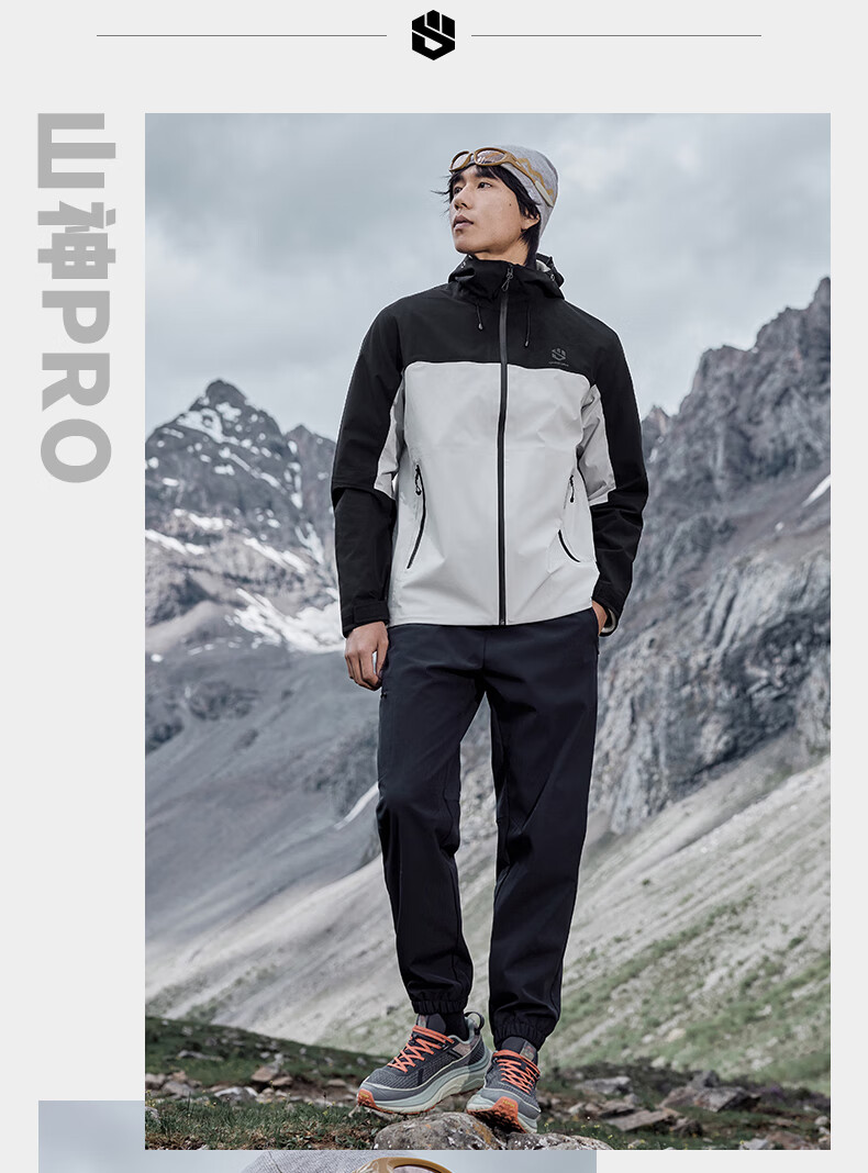 乔丹山神pro冲锋衣外套男运动风衣户外登山防风防雨水连帽夹克 黑色/浅苔灰 【单冲硬壳】 4XL