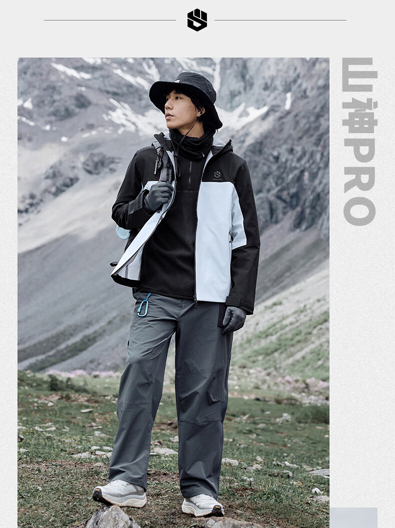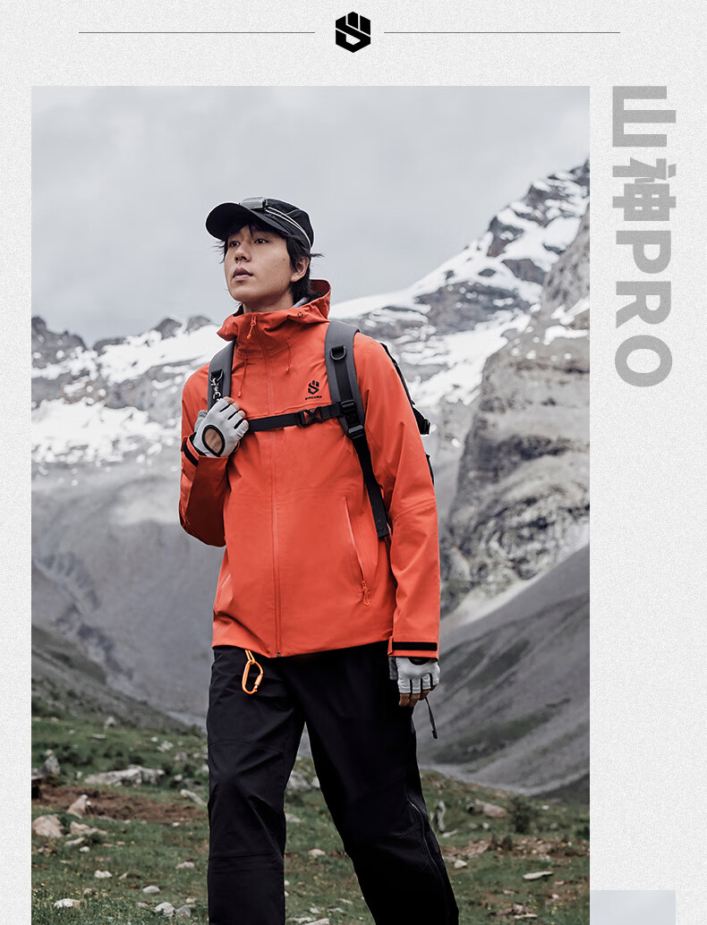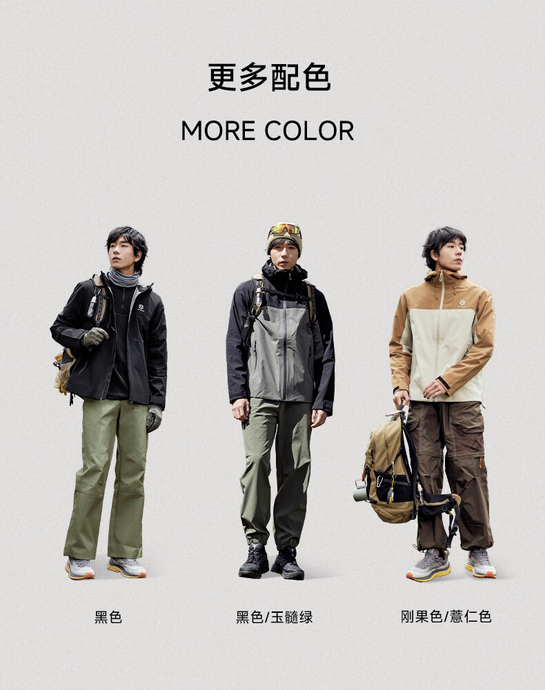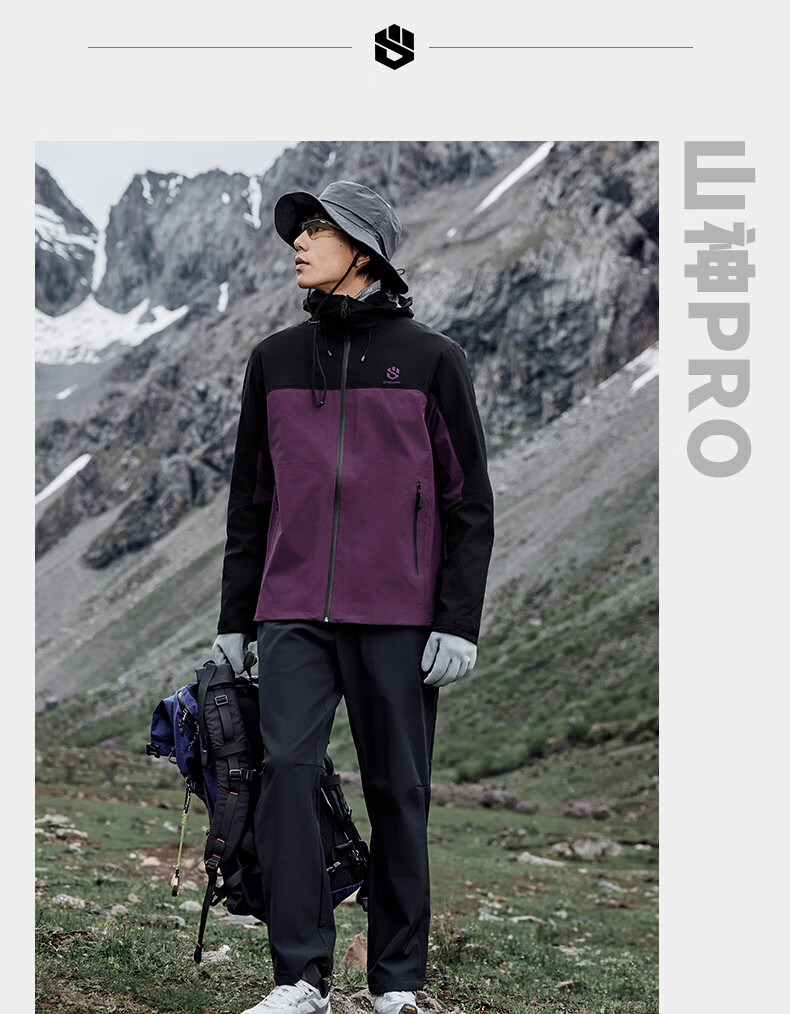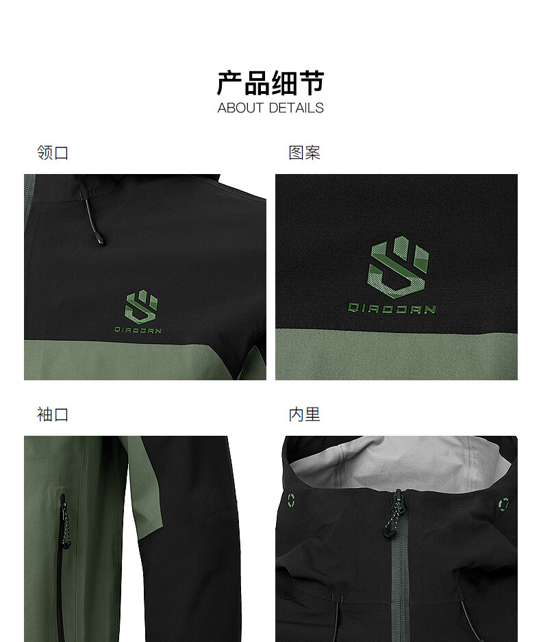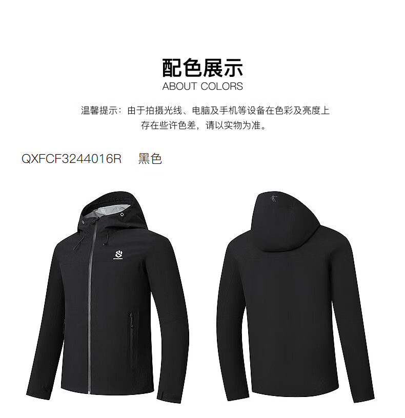 乔丹山神pro冲锋衣外套男运动风衣户外登山防风防雨水连帽夹克 黑色/浅苔灰 【单冲硬壳】 4XL