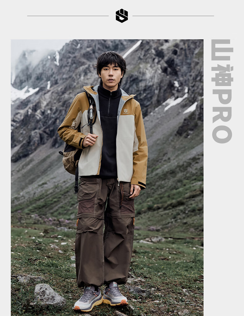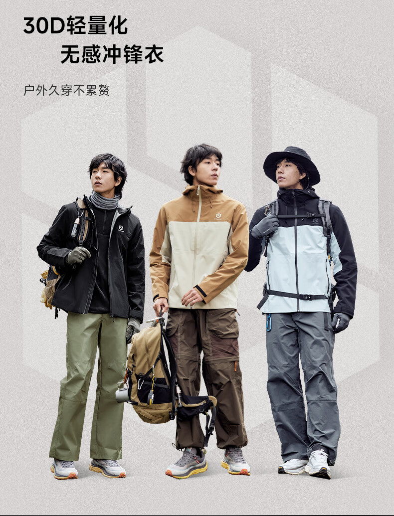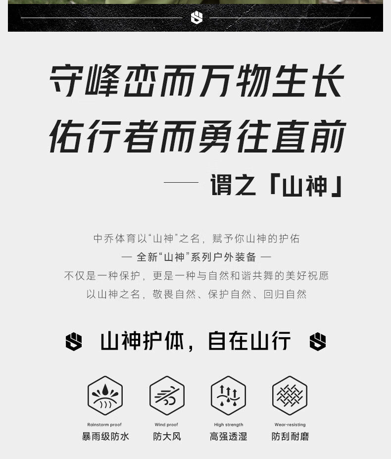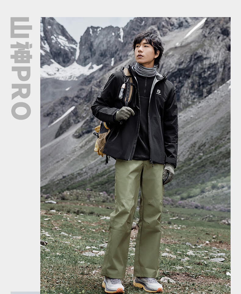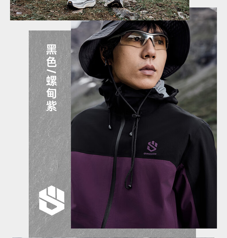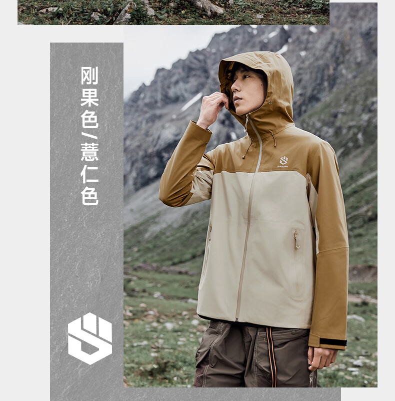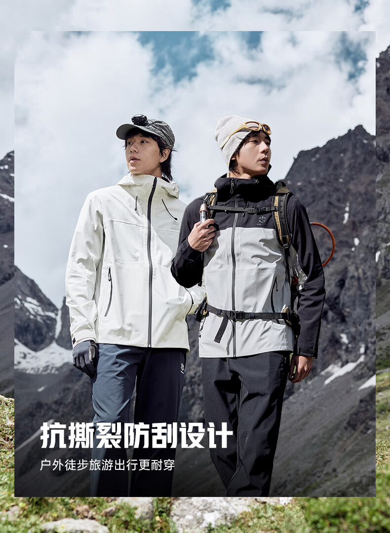 乔丹山神pro冲锋衣外套男运动风衣户外登山防风防雨水连帽夹克 黑色/浅苔灰 【单冲硬壳】 4XL