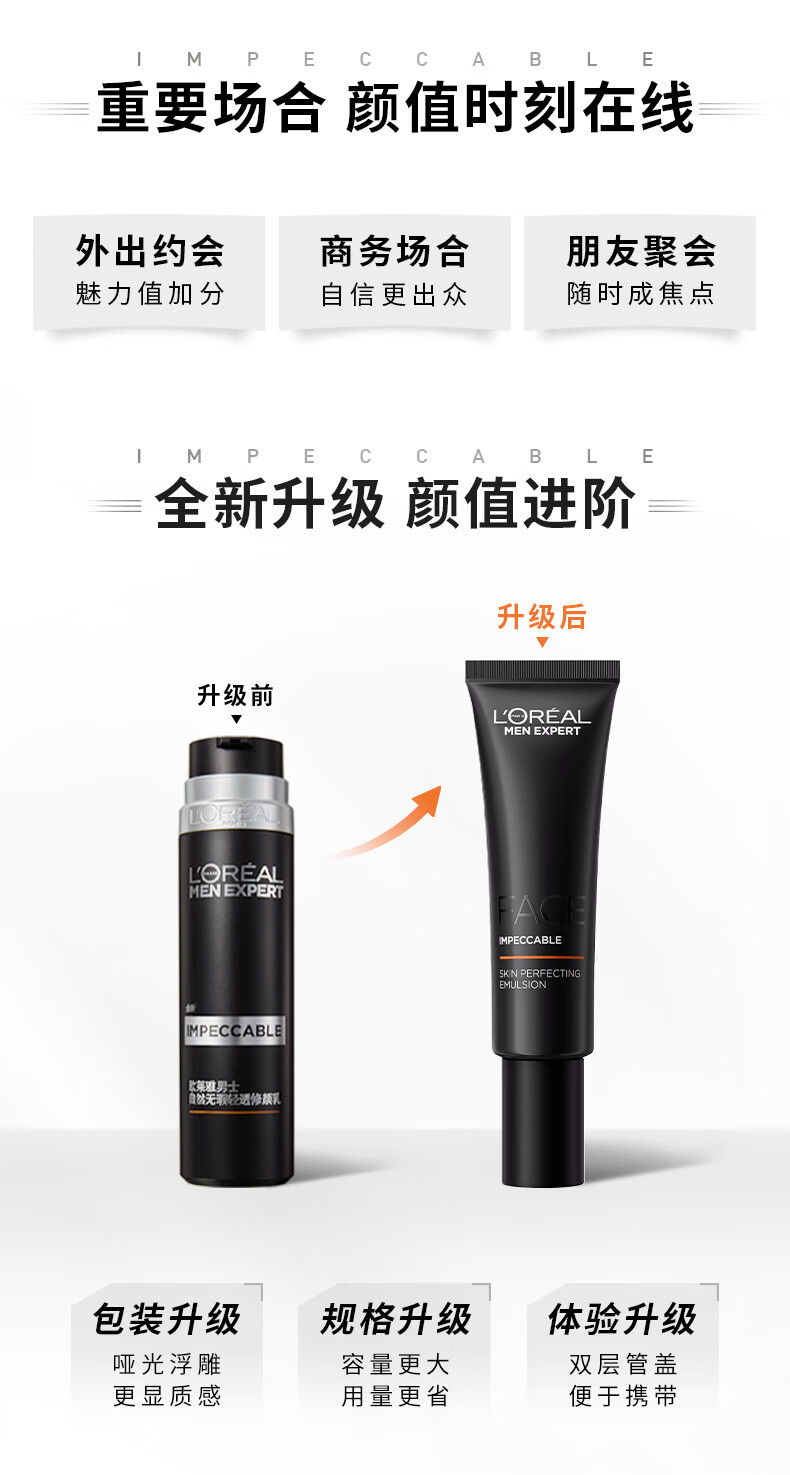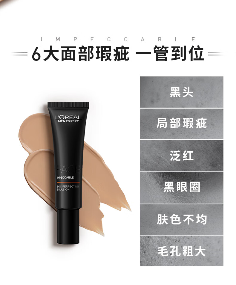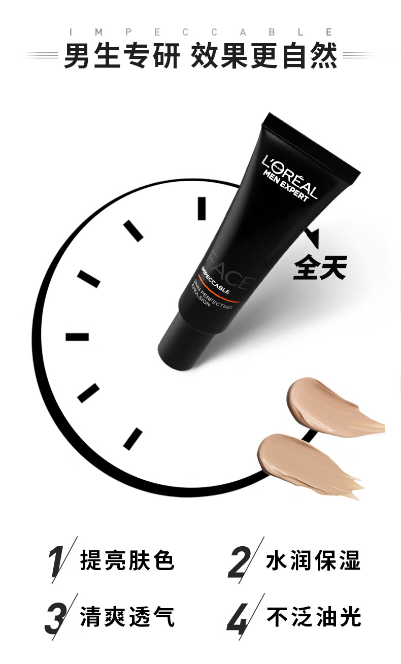 欧莱雅男士素颜霜自然肤色001 遮瑕保湿控油乳液提亮遮痘印护肤品礼物