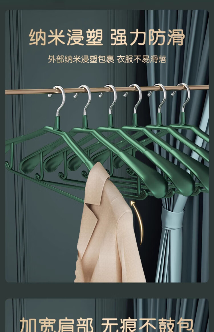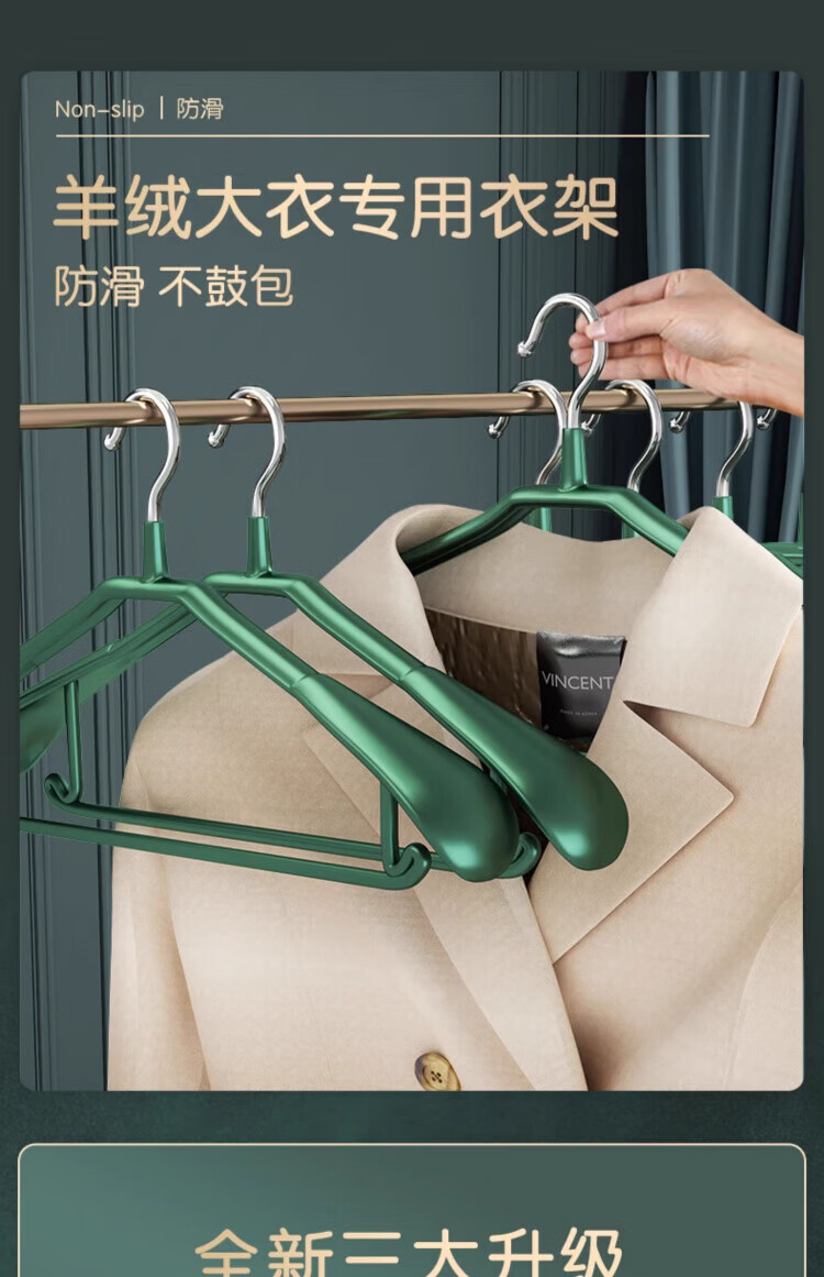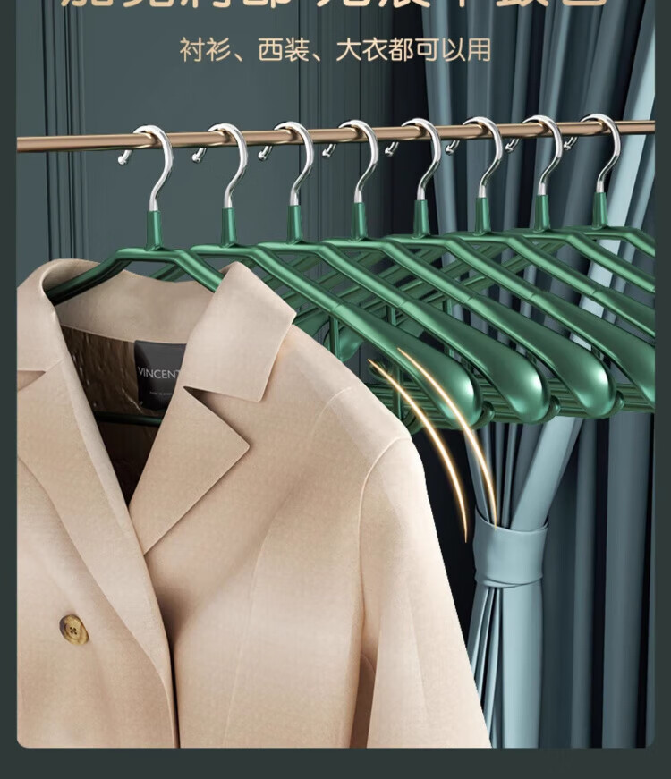 TYZAYR日本衣架护衣防滑家用防肩角加厚加粗羊绒大衣专用挂架宽肩不起包 升级加宽大衣专用实心【轻奢绿 140g】10支