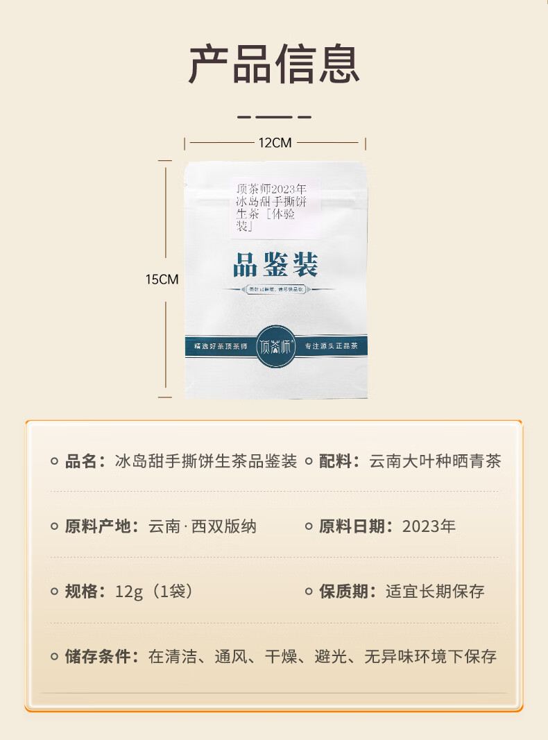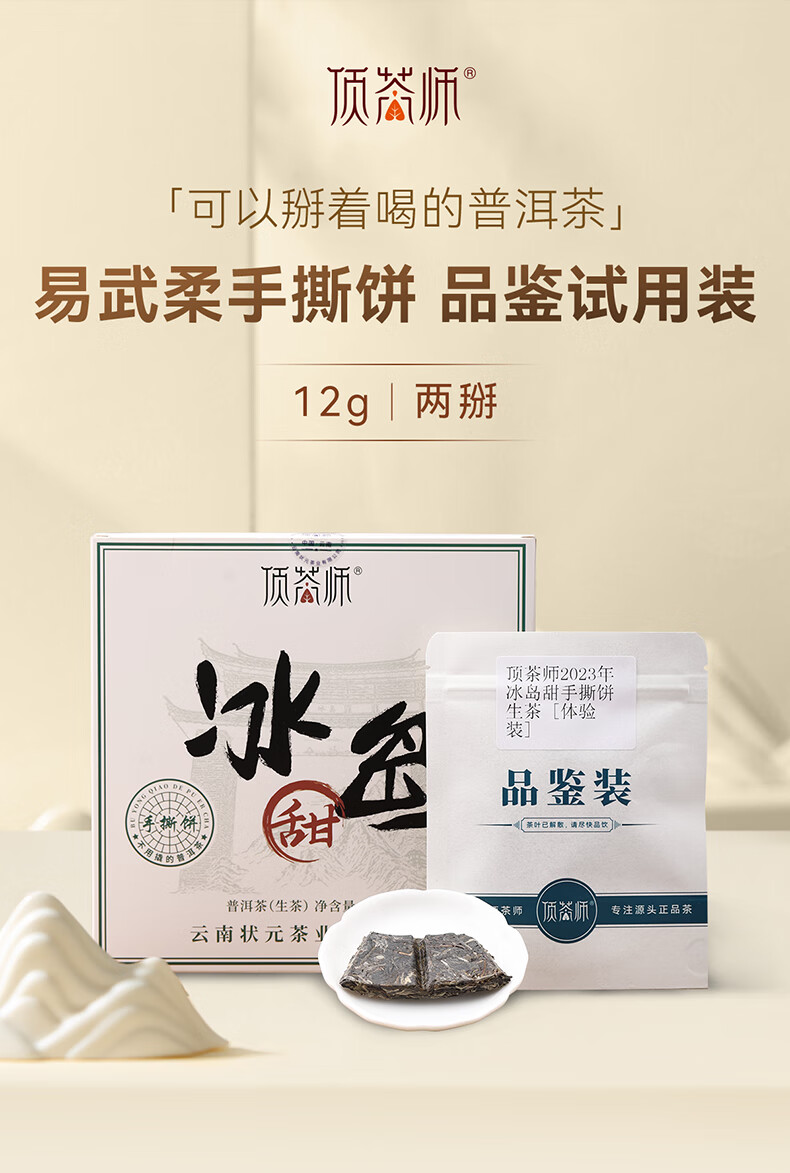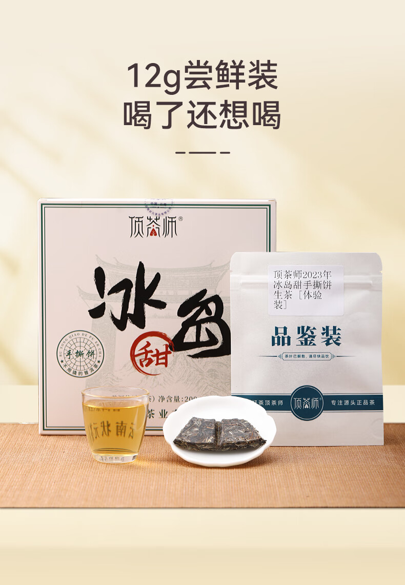 顶茶师2023年冰岛甜普洱生茶12g生茶叶云南古树纯料饼茶生普手撕饼